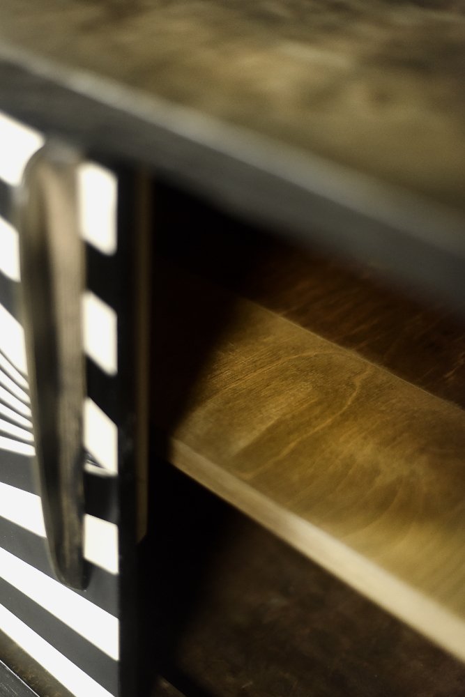 The sideboard has been partially restored keeping its natural patina. This is a piece of furniture finished according to the rules of the Upcycled Vintage course. Its form is original and dates from the 20th century, but the final finish has been changed by artistic invention or composition of parts from different original object. All treatments are performed by traditional methods, are consisted with the aesthetic of the age from which the furniture comes from and support the Zero Waste idea.