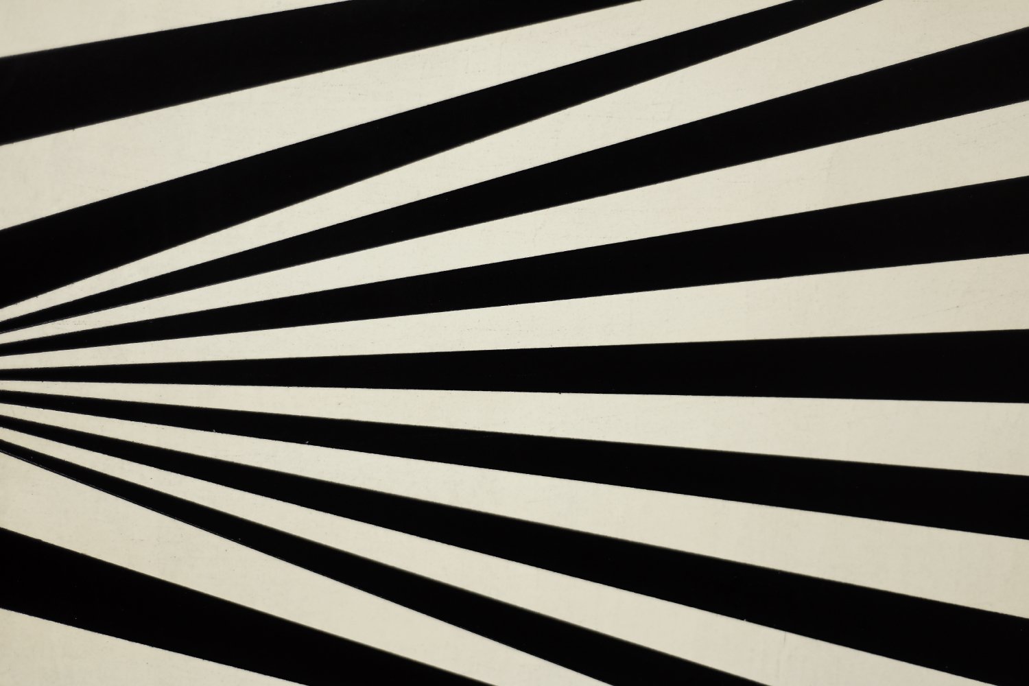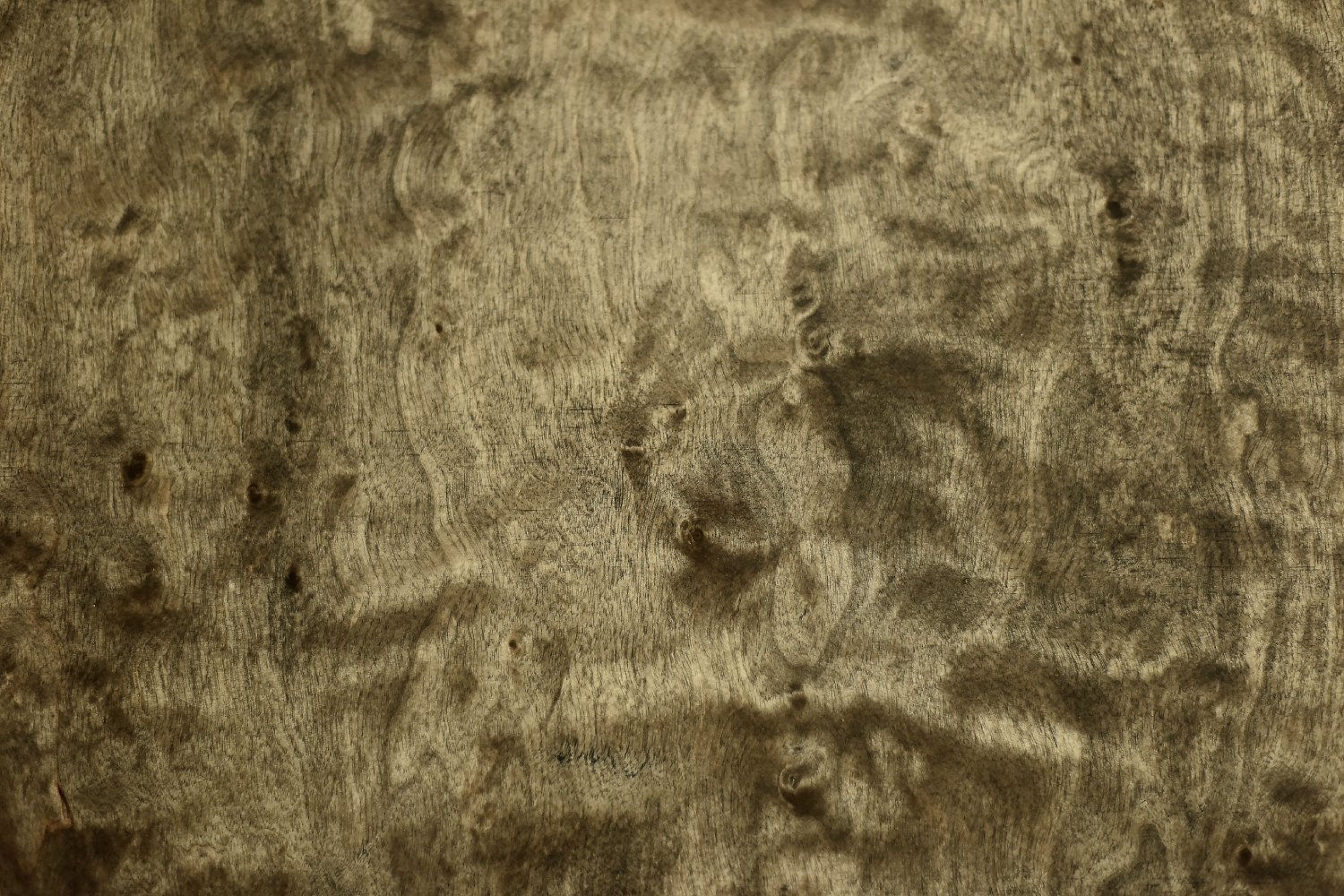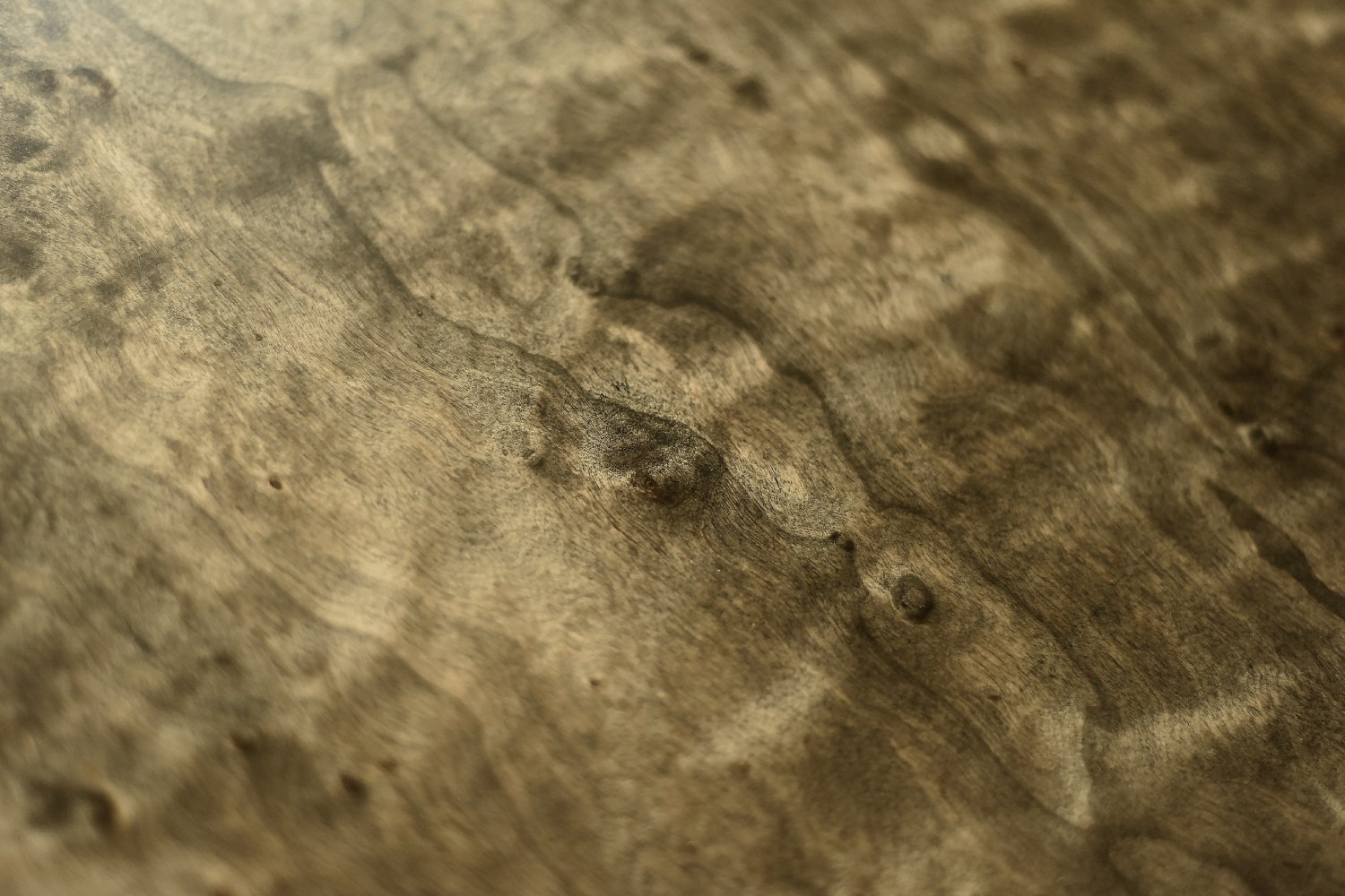 Ce buffet moderniste a été fabriqué en Scandinavie dans les années 1960. Il est en bois de bouleau avec un grain irrégulier et prononcé, présentant des irrégularités et des variations de grain visibles. Le bois est fini dans une couleur terreuse caractéristique, où les bruns et les gris s'entremêlent dans des contrastes d'intensité variable. Le buffet est doté d'une paire de portes coulissantes avec de longues poignées en bois. La façade est décorée de peintures hypnotiques en noir et blanc réalisées à la main dans le style Op-Art. À l'intérieur, il comporte une étagère et un espace vide spacieux. La base est constituée de pieds hauts en bois.