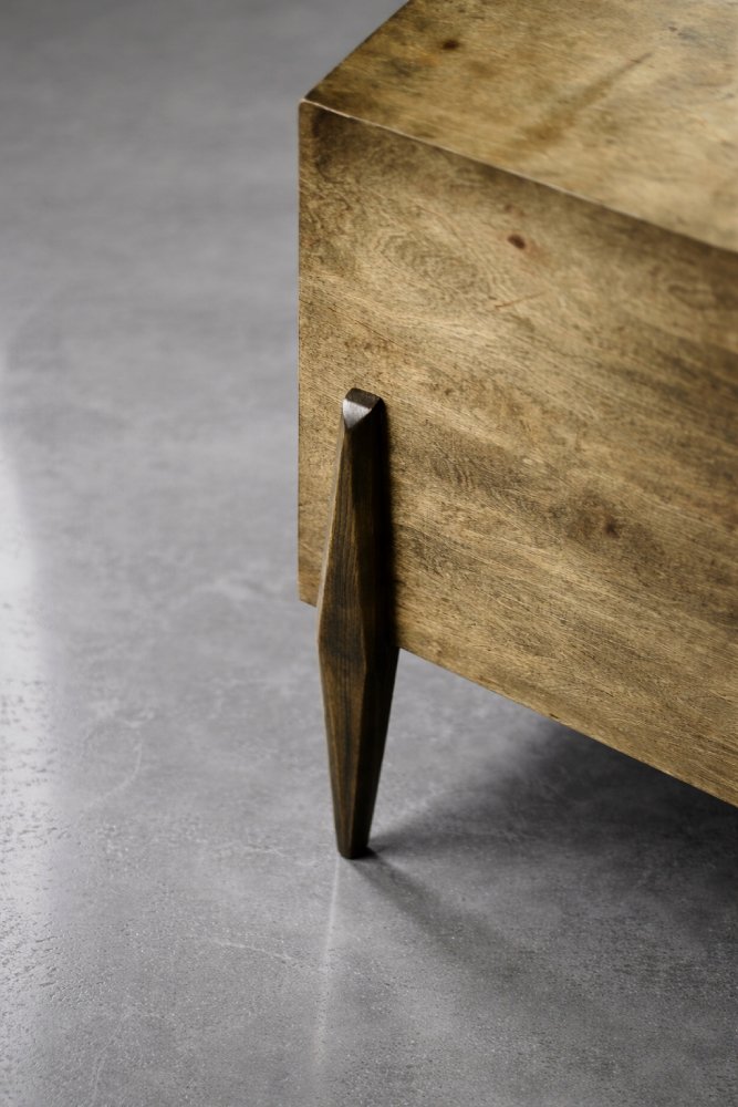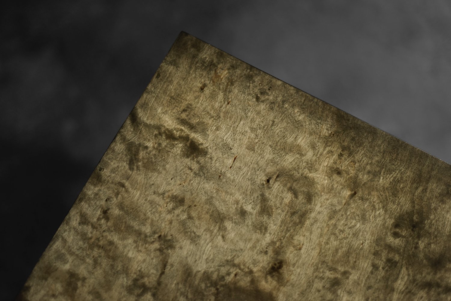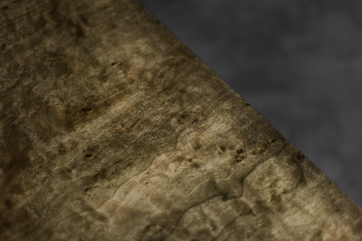 Ce buffet moderniste a été fabriqué en Scandinavie dans les années 1960. Il est en bois de bouleau avec un grain irrégulier et prononcé, présentant des irrégularités et des variations de grain visibles. Le bois est fini dans une couleur terreuse caractéristique, où les bruns et les gris s'entremêlent dans des contrastes d'intensité variable. Le buffet est doté d'une paire de portes coulissantes avec de longues poignées en bois. La façade est décorée de peintures hypnotiques en noir et blanc réalisées à la main dans le style Op-Art. À l'intérieur, il comporte une étagère et un espace vide spacieux. La base est constituée de pieds hauts en bois.