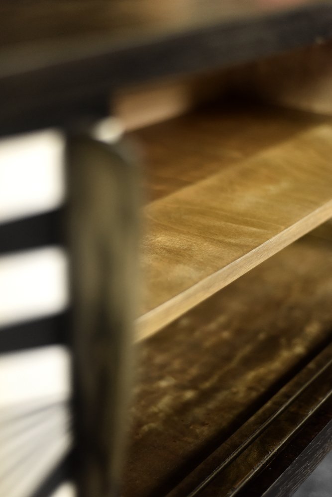 Le buffet a été partiellement restauré en conservant sa patine naturelle. Il s'agit d'un meuble fini selon les règles du cours Upcycled Vintage. Sa forme est originale et date du XXe siècle, mais la finition finale a été modifiée par une invention artistique ou la composition de pièces provenant de différents objets originaux. Tous les traitements sont effectués selon des méthodes traditionnelles, sont conformes à l'esthétique de l'époque dont provient le meuble et soutiennent l'idée du zéro déchet.