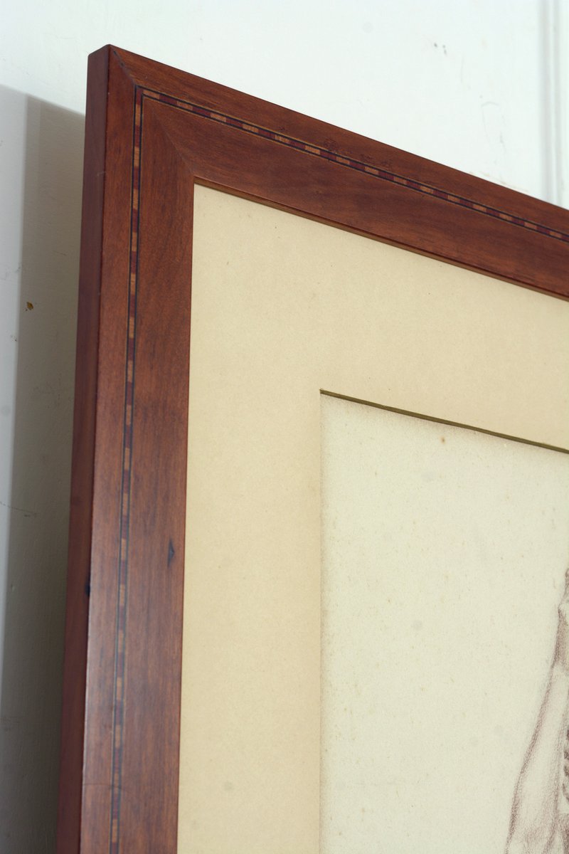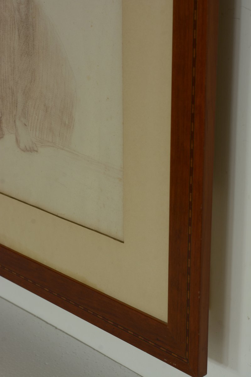 Étude Académique d'un Homme Nu avec un Bâton, 1800s, Crayon sur Papier, Encadré