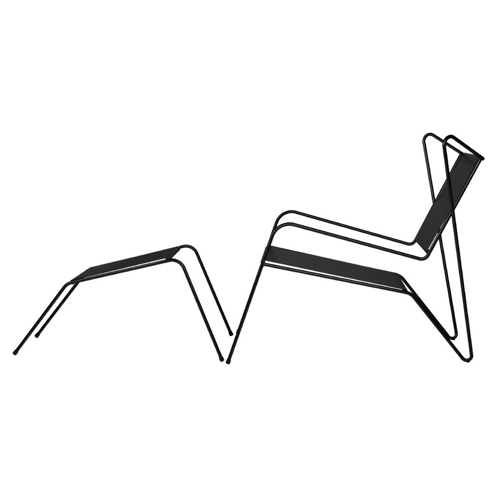 Black Capri easy lounge chair with ottoman by Cools Collection Materials: Powder coated stainless steel. Dimensions: Lounge chair: W 70 x D 84 x H 78 cm (seat height 35cm). Ottoman: W 50 x D 74 x H 35 cm. Available in white or black finishes. Also available with cushions. COOLS Collection was launched in 2020 by mother-and-daughter duo Stefania Andorlini and Maria Francesca Staehle, who together decided to start a new adventure and build a brand capturing their joint aesthetic expression and spirit. A joint vision of casual elegance and timeless simplicity characterizes their brand and collection. COOLS are Contemporary Object Of Love, making you want to have them around for a lifetime. We work together with local and specialised artisans across Europe. Our products are made in small batches, from high quality and sustainable materials. Either in form of recycled or long-lasting and recyclable materials, such as steel and aluminum, both endlessly reclaimable and reshapable. We believe in lasting, meaningful design. Design that is self-evident and essential, transcending context and time. We love design that is simultaneously casual, intuitive, humorous and chic. We believe in treasuring what we love. Our designs are: Intentionally casual. Likeable and resonating, with a touch humour. Distinctive, smart and surprising. Consciously balancing function and aesthetics. Timeless, contemporary, to treasure and love for years to come.