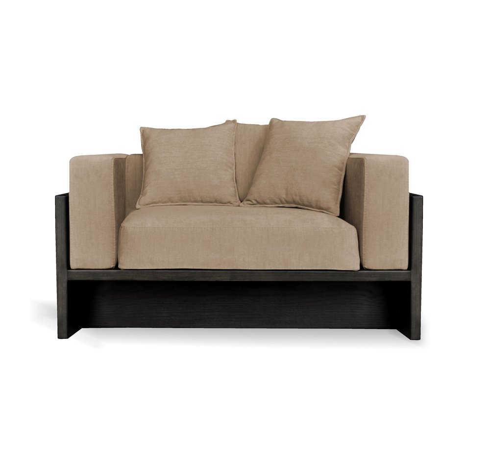 Fauteuil Chaplin en Chêne Noir et Tissu Beige par Collector