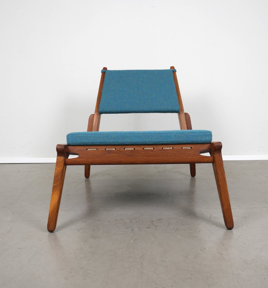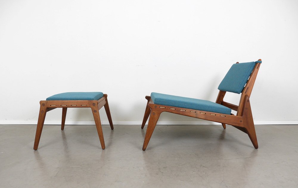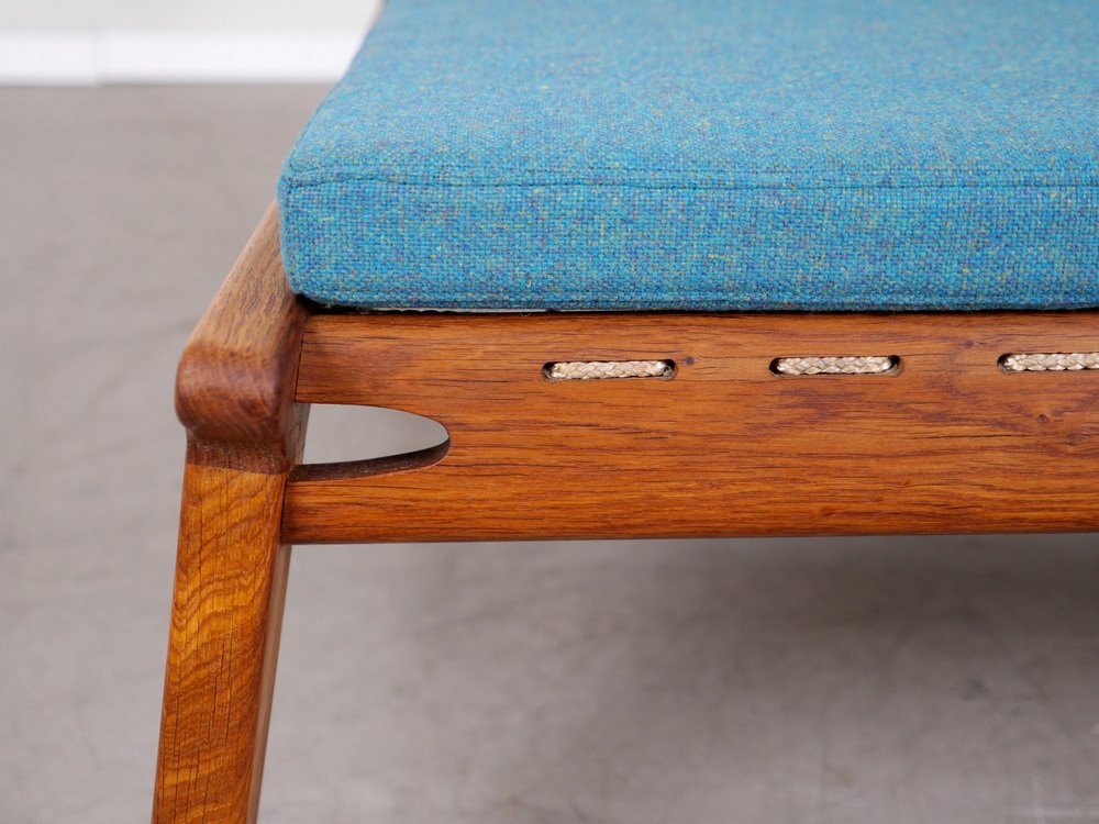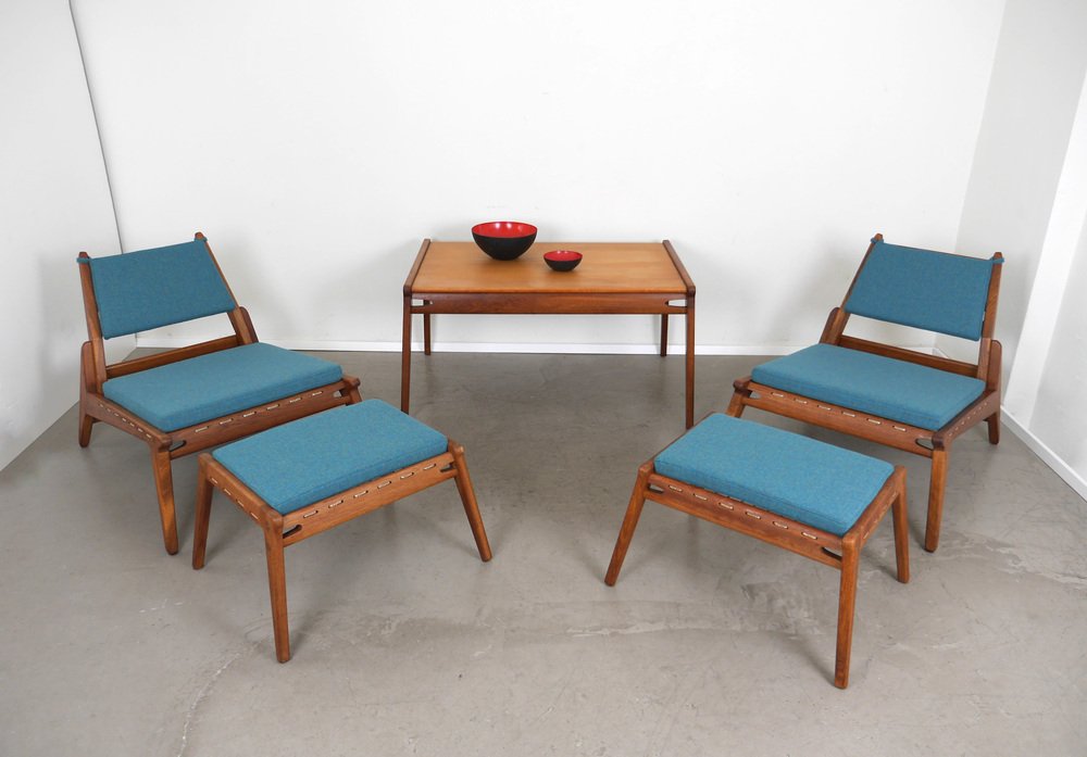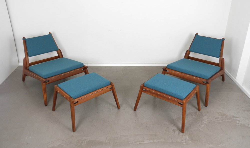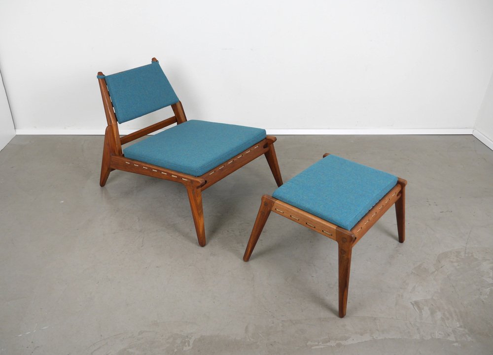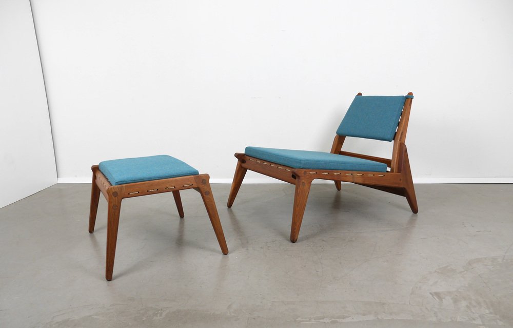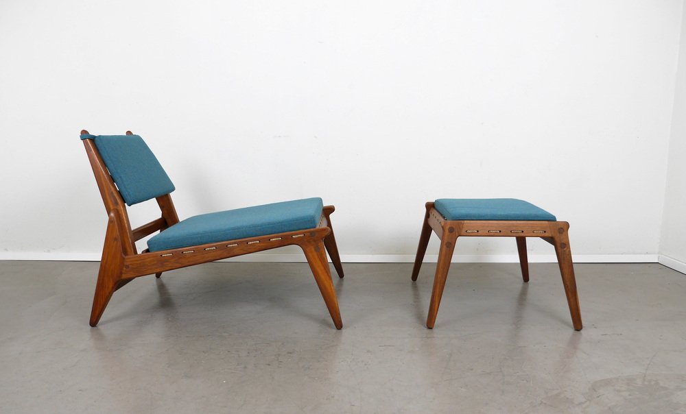 Fauteuil en Chêne avec Ottomane de PGH Erzgebirgisches Kunsthandwerk, Allemagne, 1960s, Set de 2