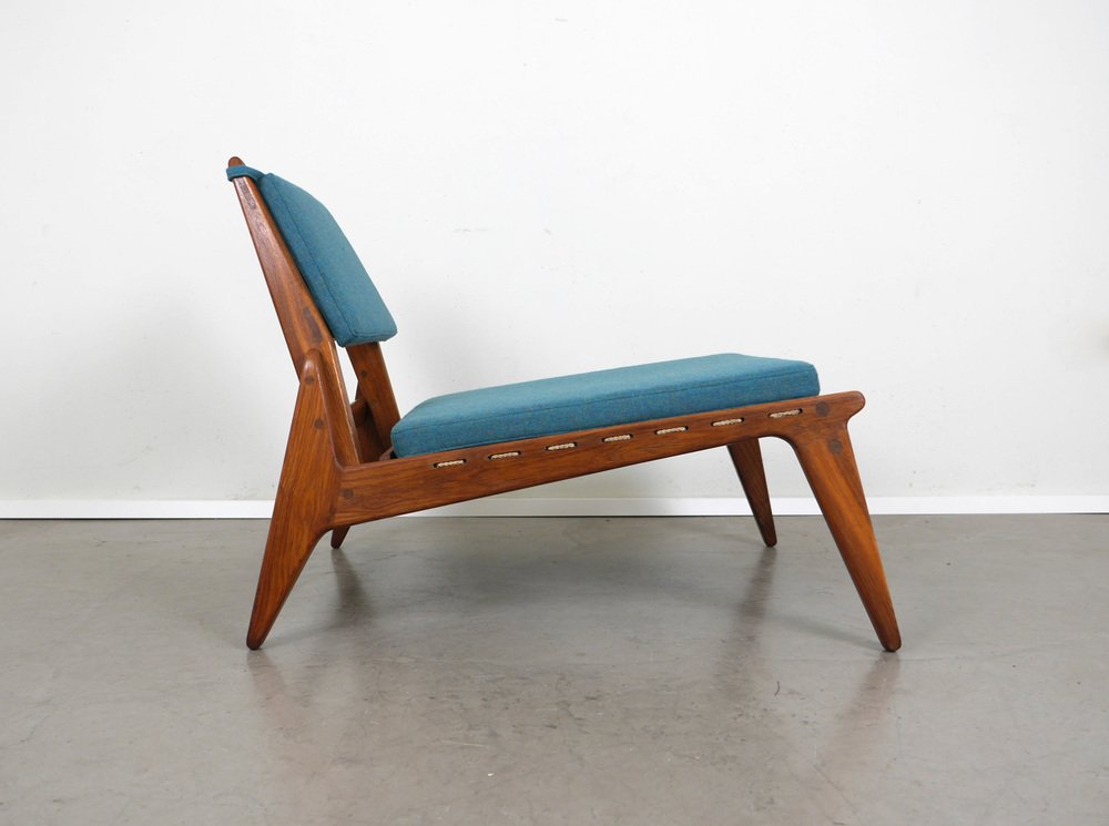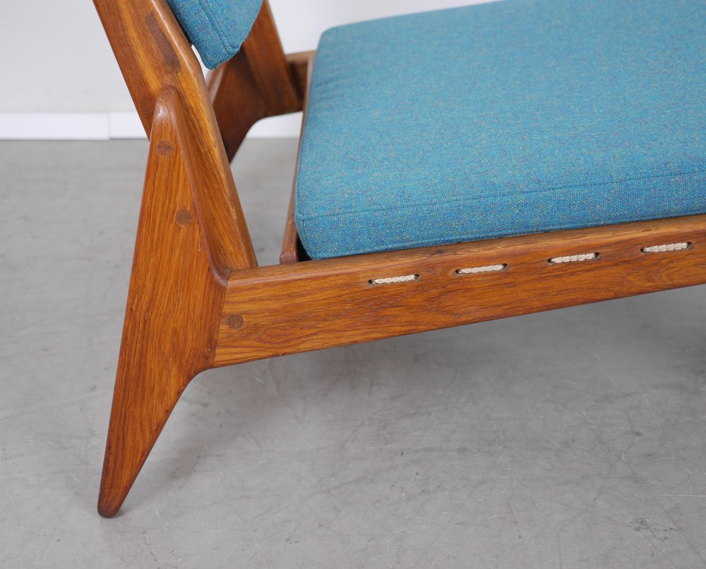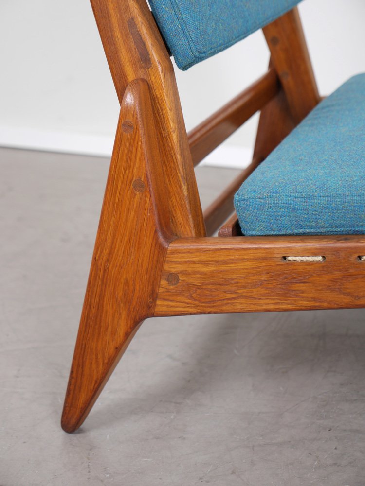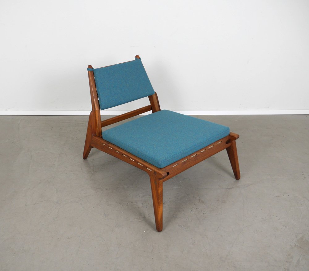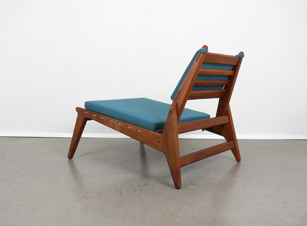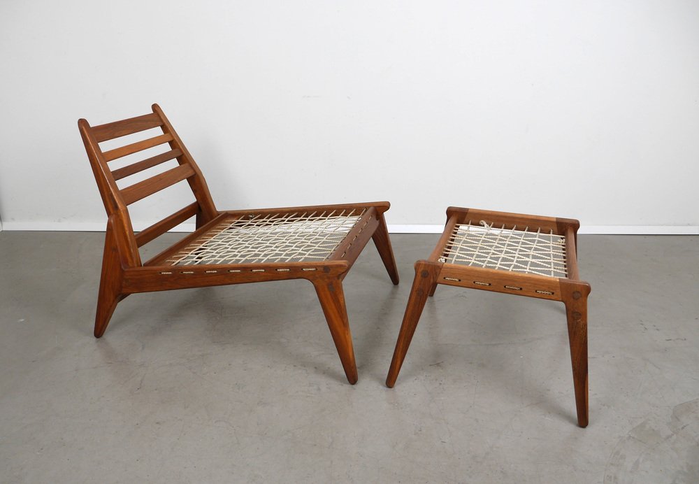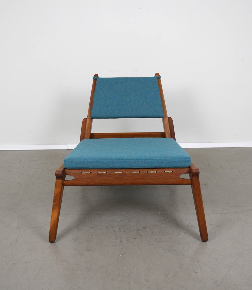 Fauteuil en Chêne avec Ottomane de PGH Erzgebirgisches Kunsthandwerk, Allemagne, 1960s, Set de 2