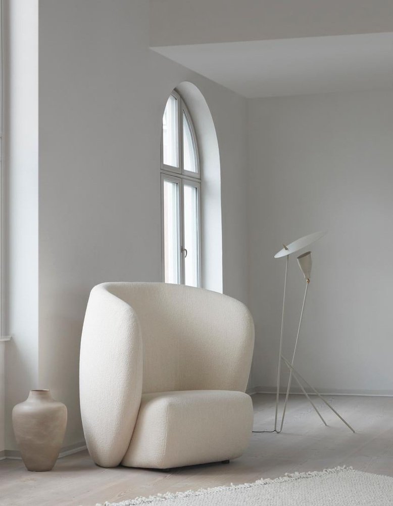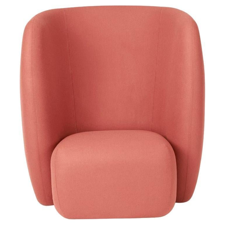 Haven lounge chair coral by Warm Nordic Dimensions: D107 x W84 x H 110 cm Material: Textile upholstery, Foam, Spring system, Wood. Weight: 50 kg. The Haven armchair is a contemporary chair with a simple, soft idiom. with its high, embracing back, the armchair creates a sanctuary, where you can sit, gently shielded off from your surroundings, curled up with a book or simply relaxing. The armchair looks wonderful in a living room and is equally ideal in a hotel lobby to create a private space in the midst of a busy environment, preferably complemented by a Haven Sofa and Pouf. For a perfect holistic impression the Haven range is covered with exclusive furnishing fabrics, including 'Hero', whose soft, almost felt-like surface complements the armchairs organic shape, and which is designed by Patricia Urquiola for Kvadrat.