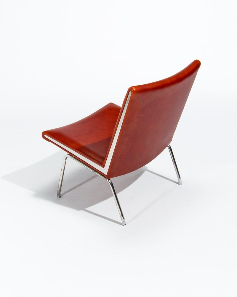 This iconic Danish lounge chair, designed by Hans Wegner in 1958 for AP Stolen is known as the Airport Chair (AP 39), originally created for the lounge areas of Copenhagen Kastrup Airport. Its sleek, minimalist design embodies the elegance and functionality of mid-century Danish craftsmanship.