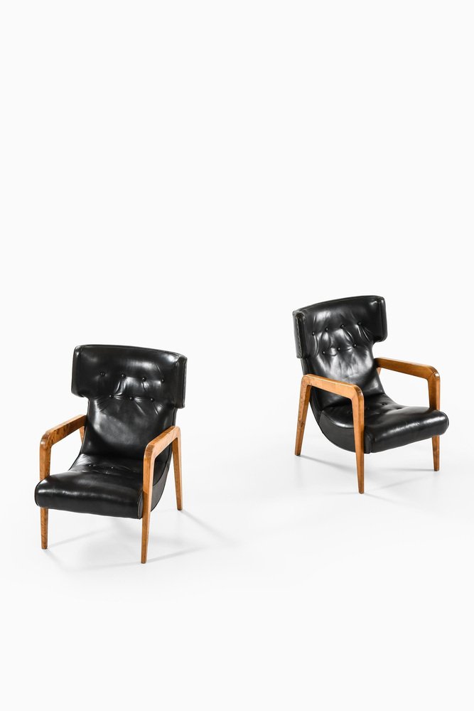 Additional information: Material: Birch, Leather Color: Black Style: Mid Century, Scandinavian Modern Period: 1950s Country: Finland Dimensions: W: 63 / D: 78 / H: 85.5 / Seat H: 38