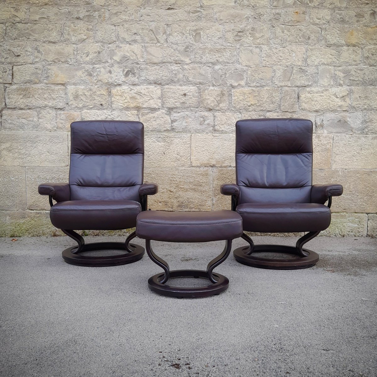 Fauteuils et Ottomane Scandinaves en Cuir par Ekornes, Norway, 1970s, Set de 3