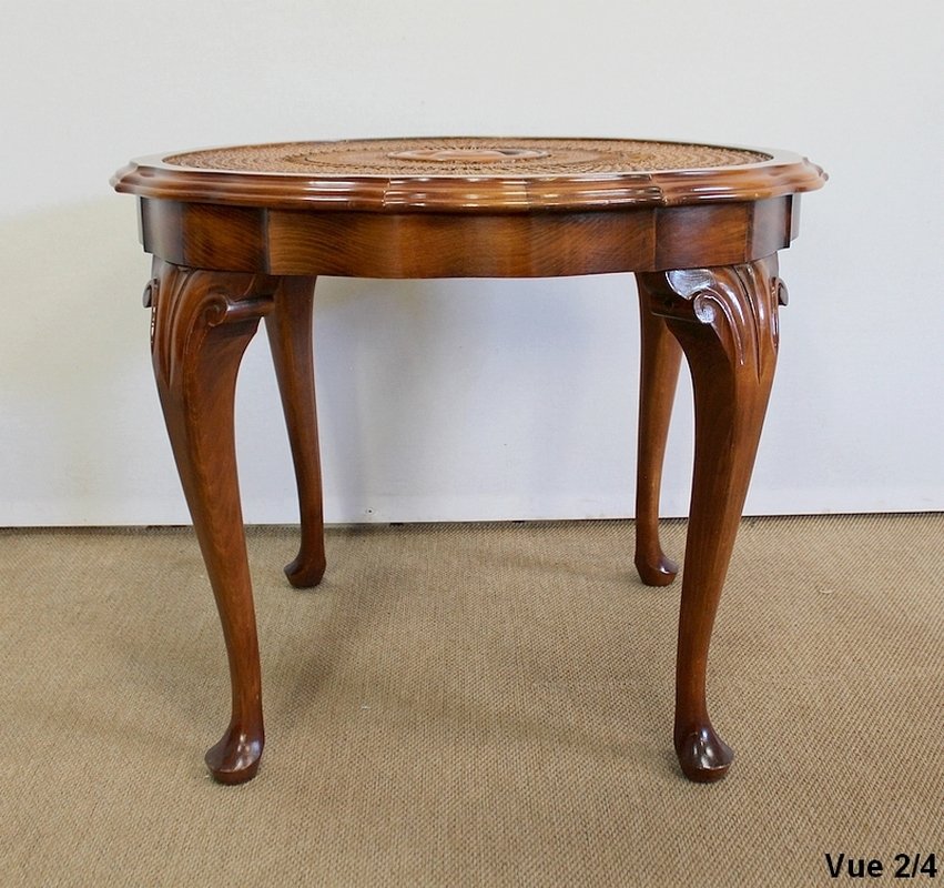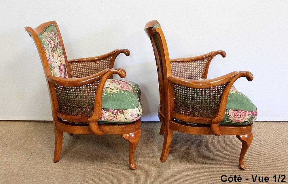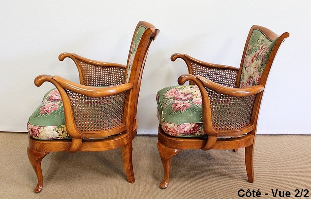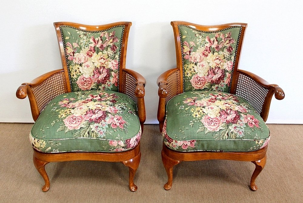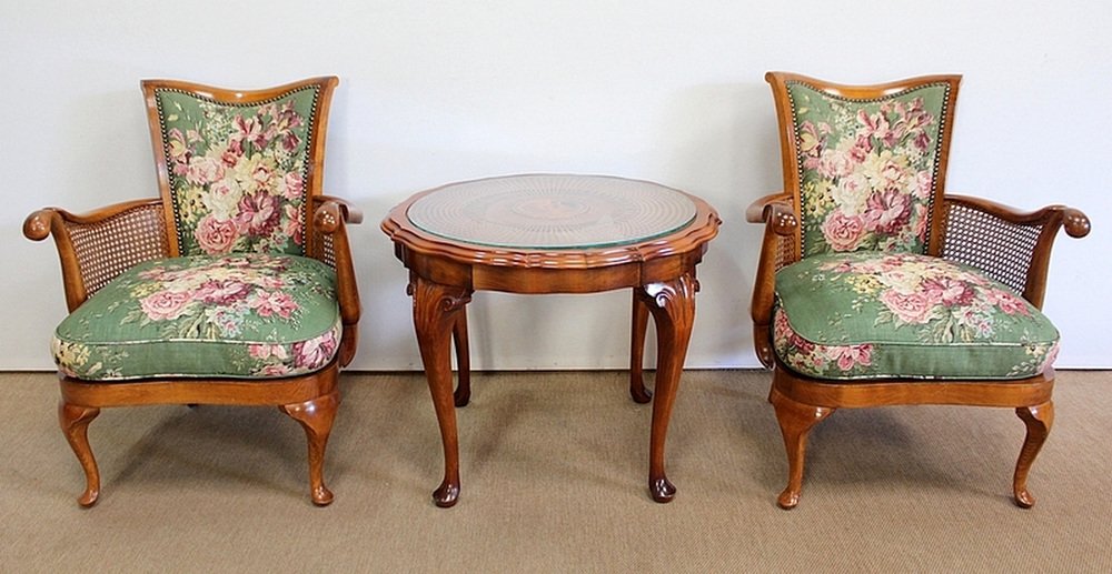 Fauteuils et Table Chippendale en Hêtre Massif, 1950s, Set de 3