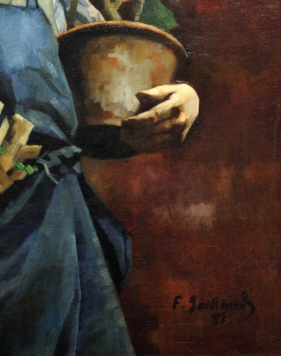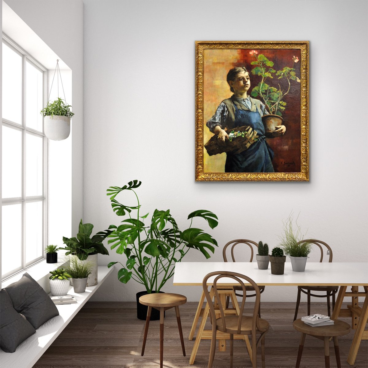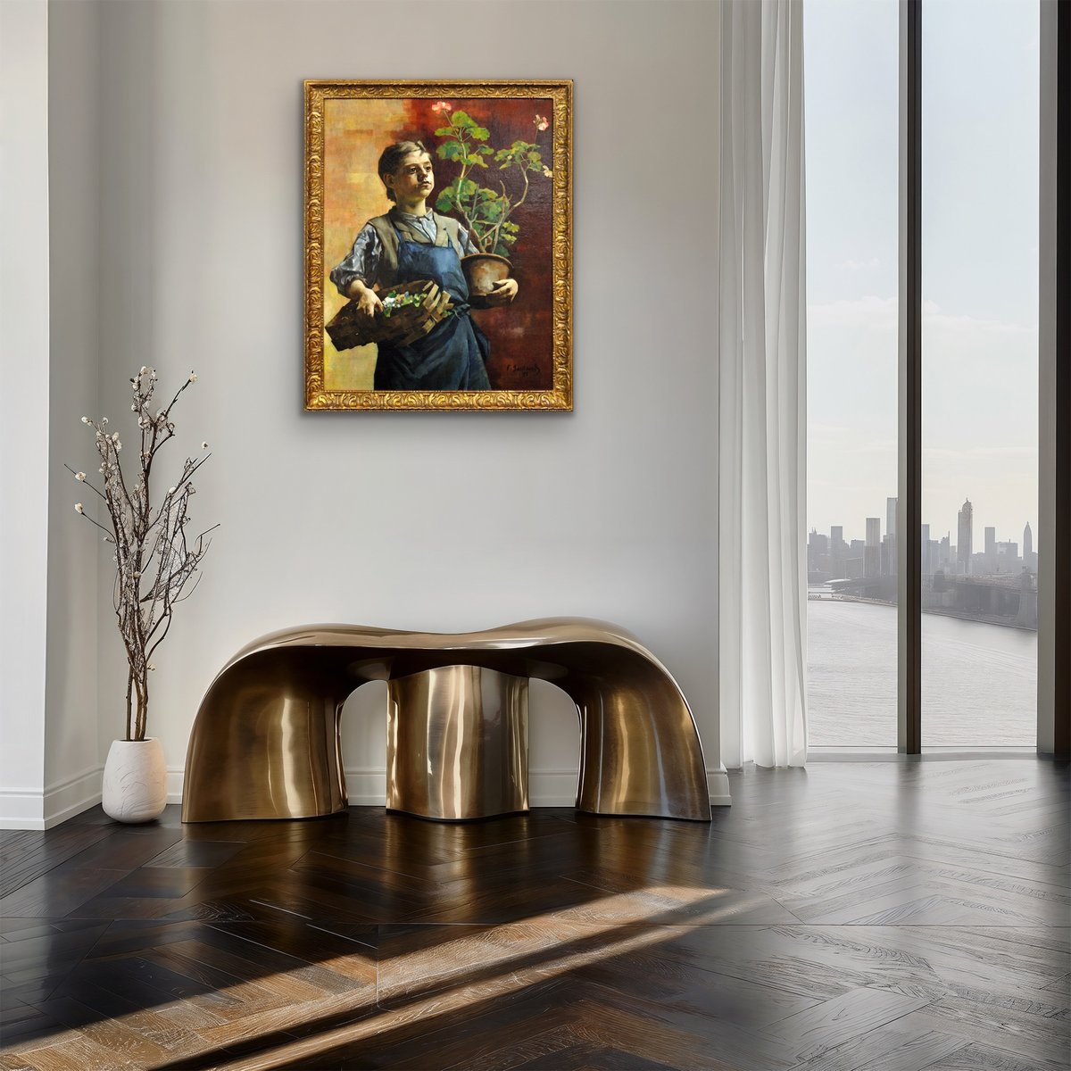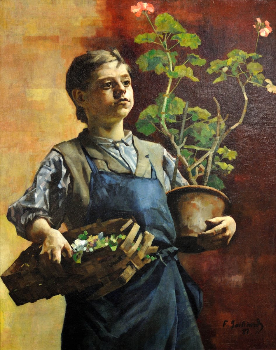 “Le Petit Jardinier” (1887) by François Gailliard (also known as Franz or Frans Gailliard) is a captivating and significant oil on canvas painting, signed and dated by the artist in the lower right corner.