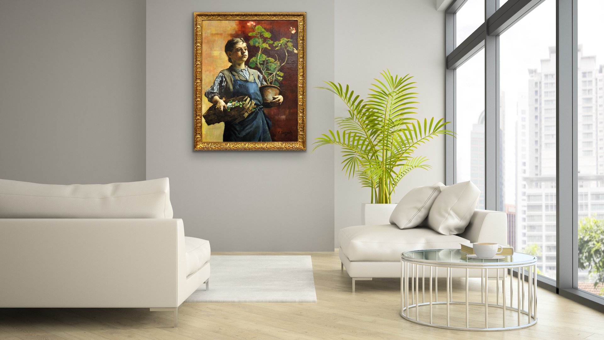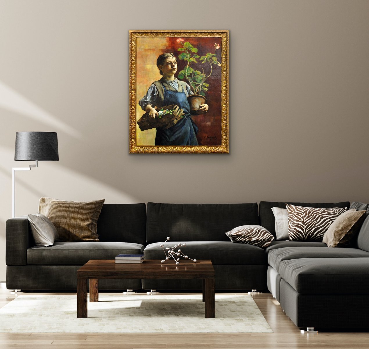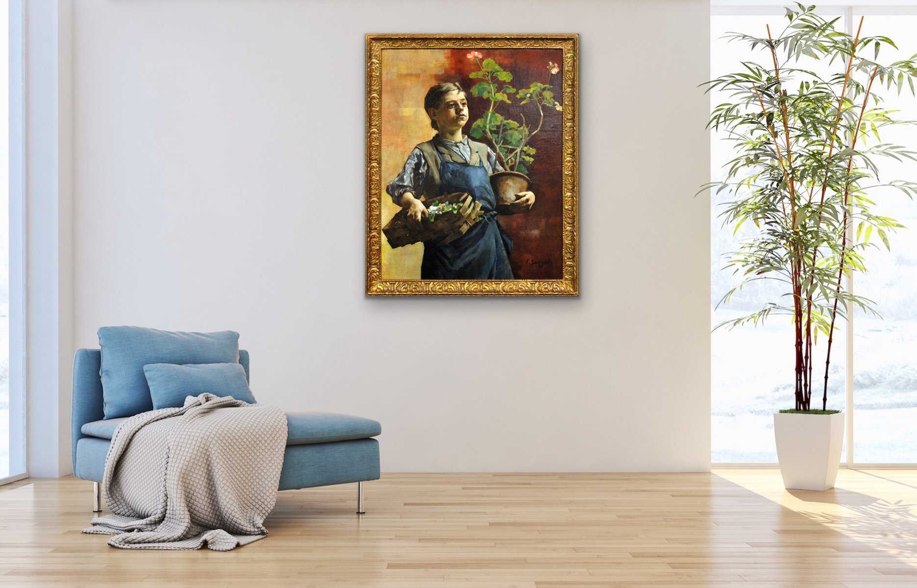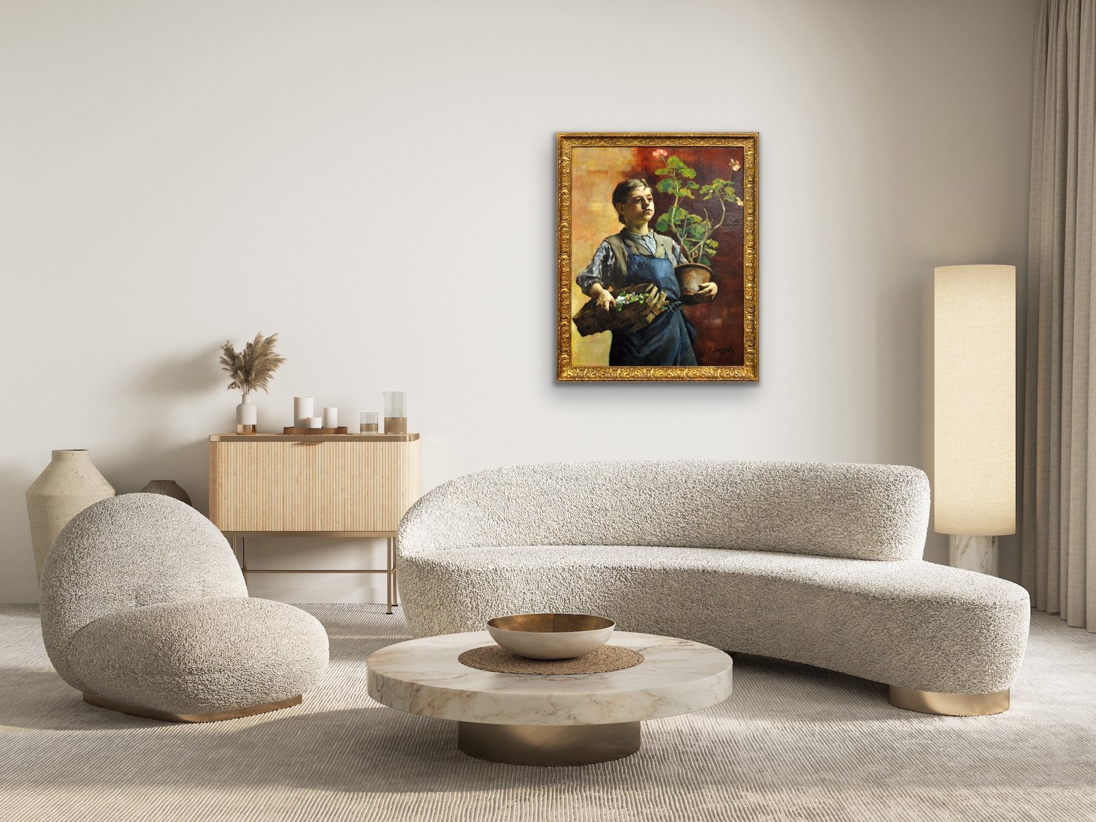 “Le Petit Jardinier” (1887) by François Gailliard (also known as Franz or Frans Gailliard) is a captivating and significant oil on canvas painting, signed and dated by the artist in the lower right corner.