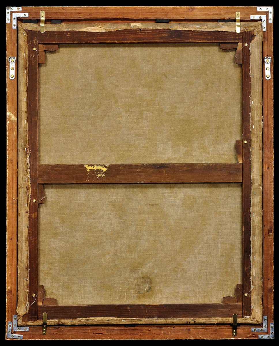 Le tableau est présenté et fourni dans son cadre d'origine. Le cadre a été restauré et renforcé par des équerres de soutien ainsi que par de nouveaux accessoires de suspension.