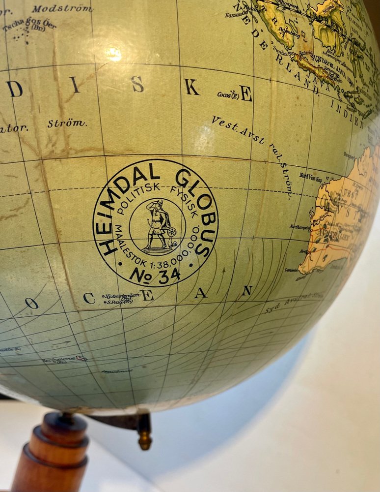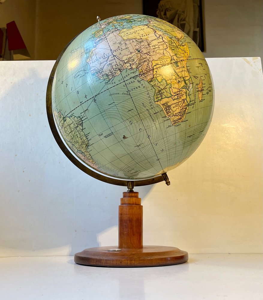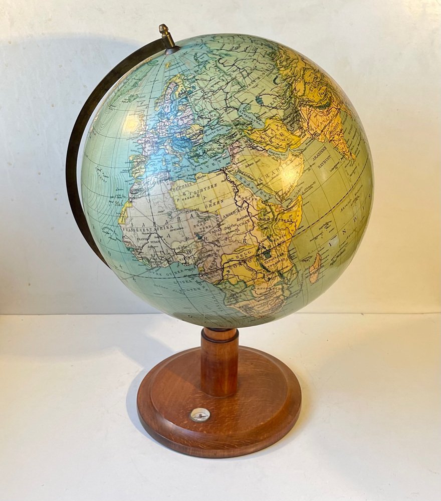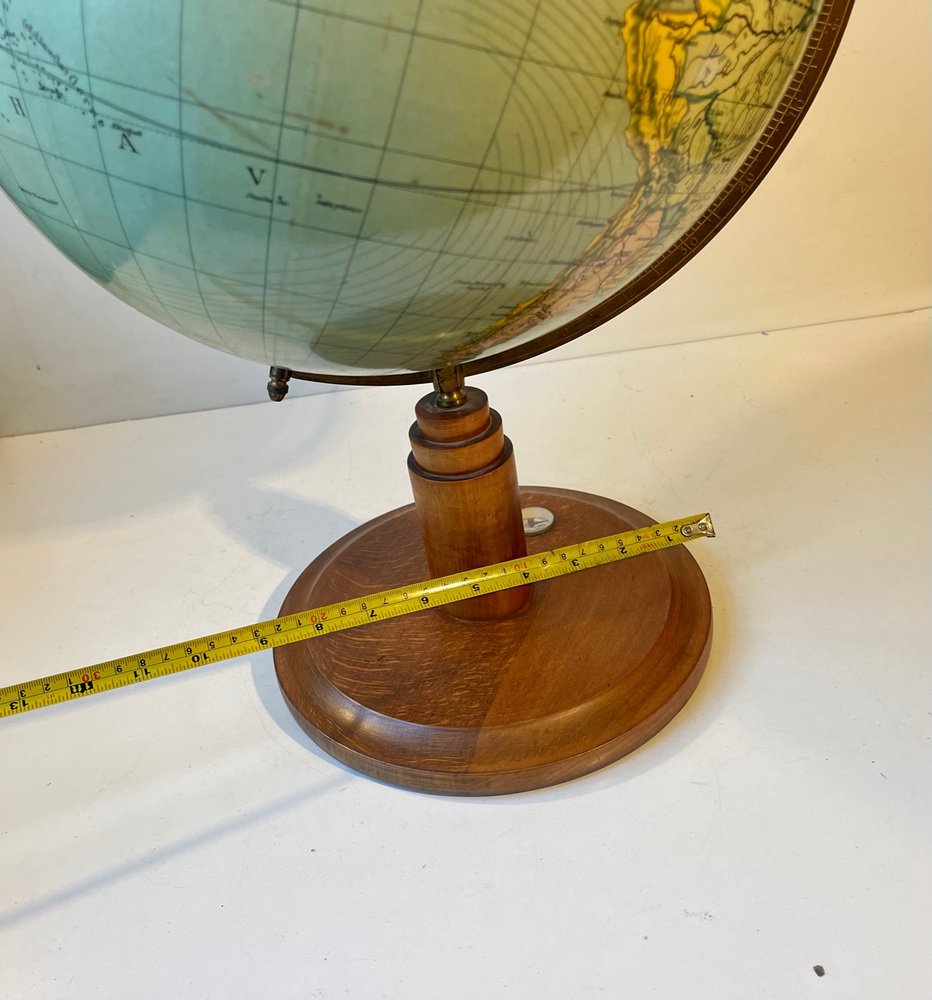 Globe Terrestre Heimdal No. 34 Art Déco avec Boussole sur Socle en Bois, Danemark, 1930s