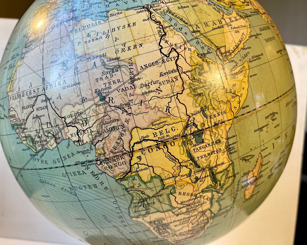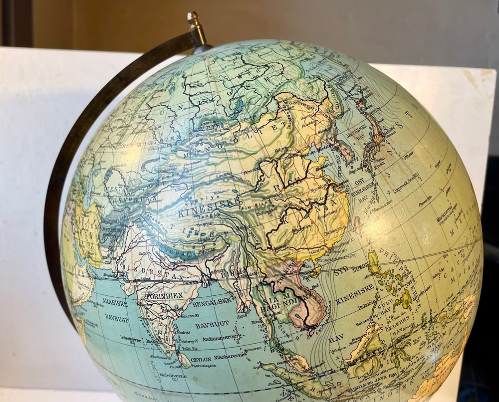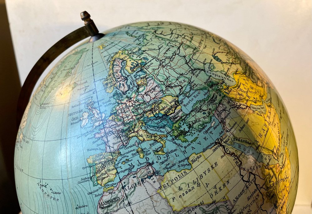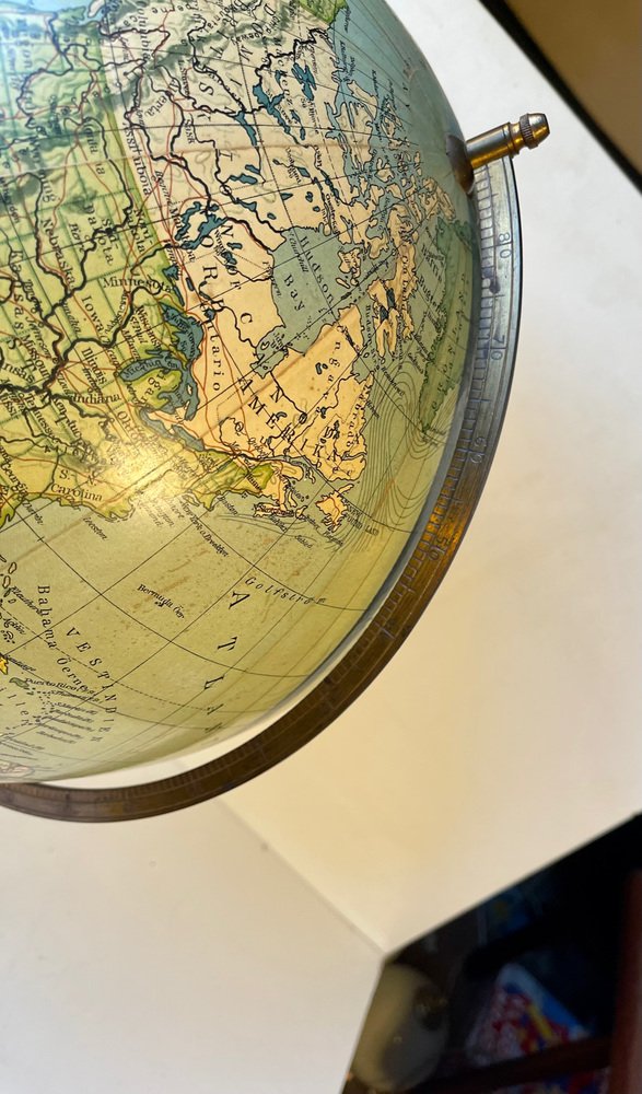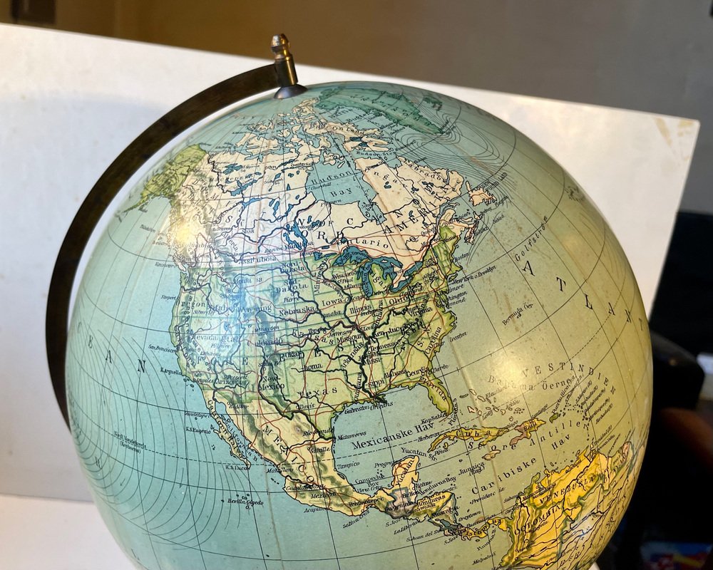 Globe Terrestre Heimdal No. 34 Art Déco avec Boussole sur Socle en Bois, Danemark, 1930s