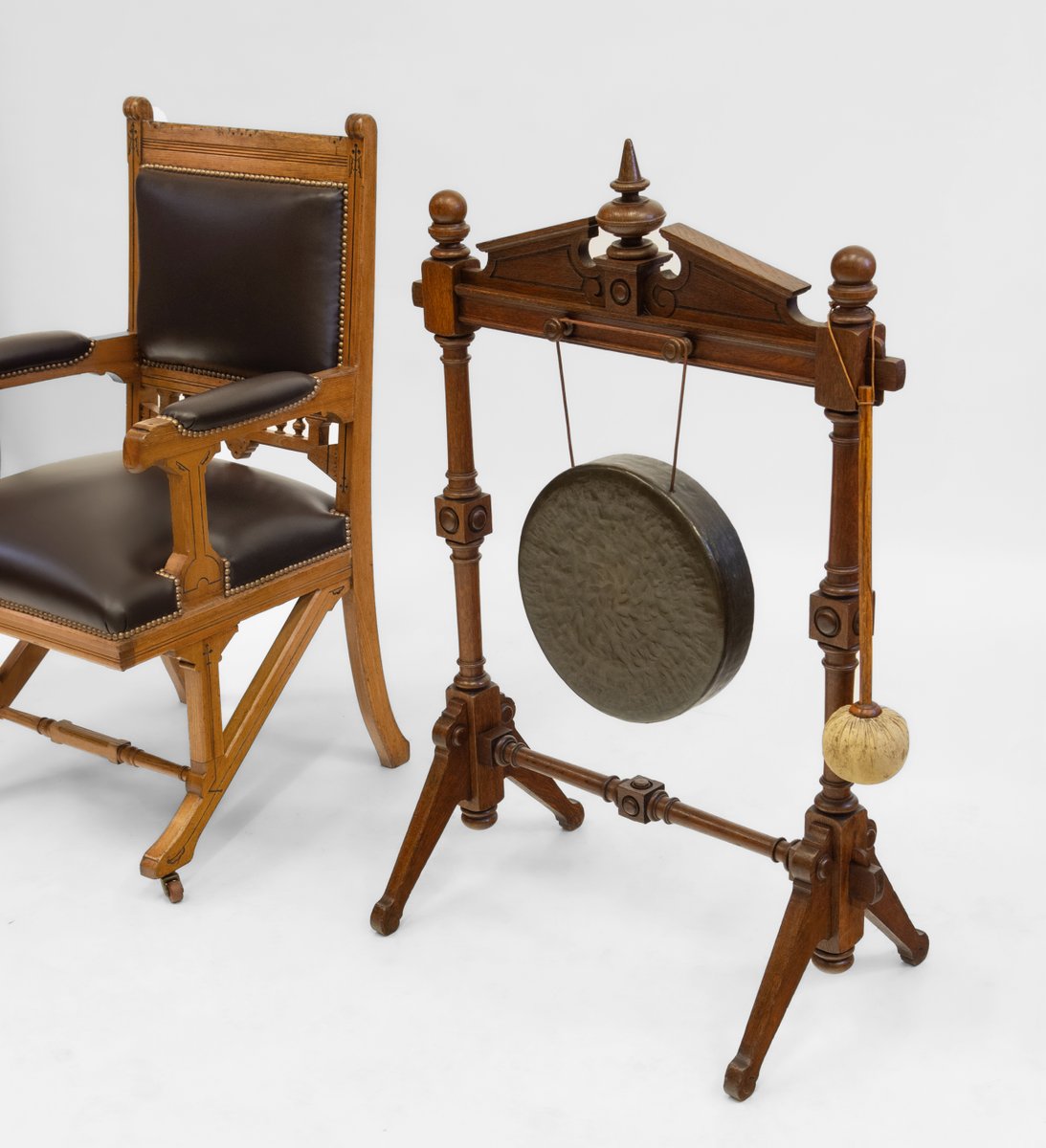 Gong et Gâche sur Pied 19ème Siècle en Chêne, 1870s