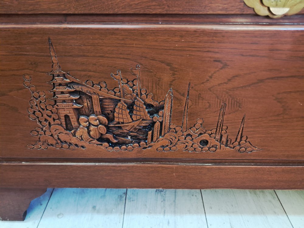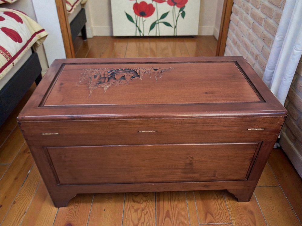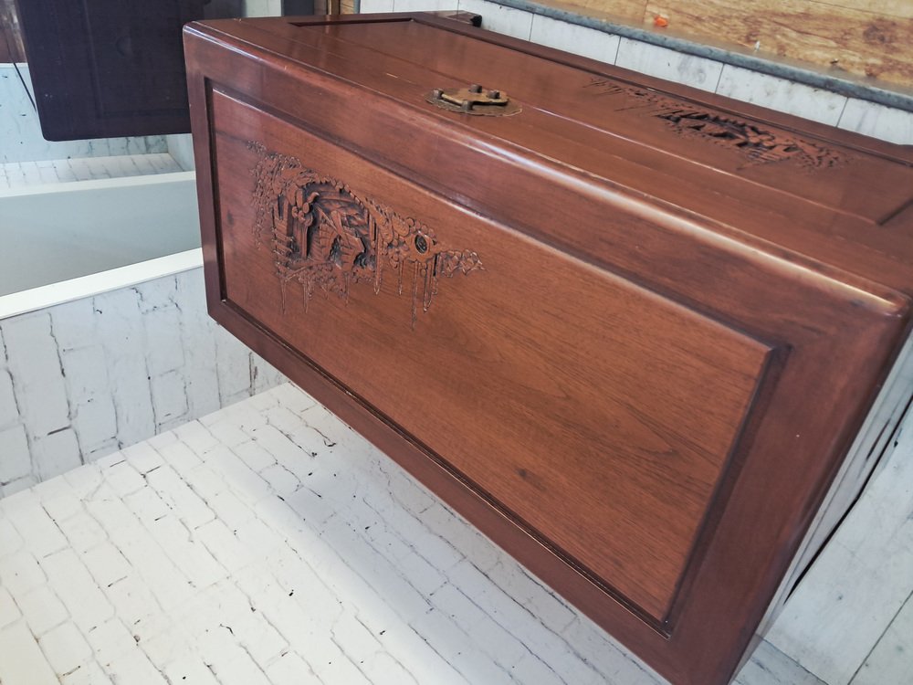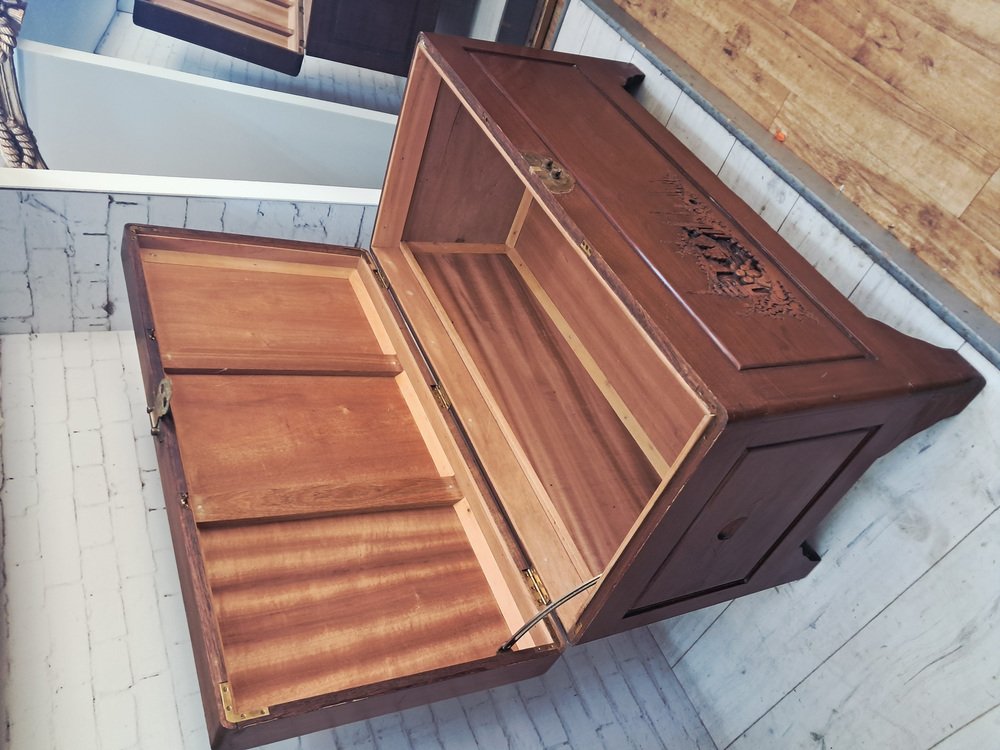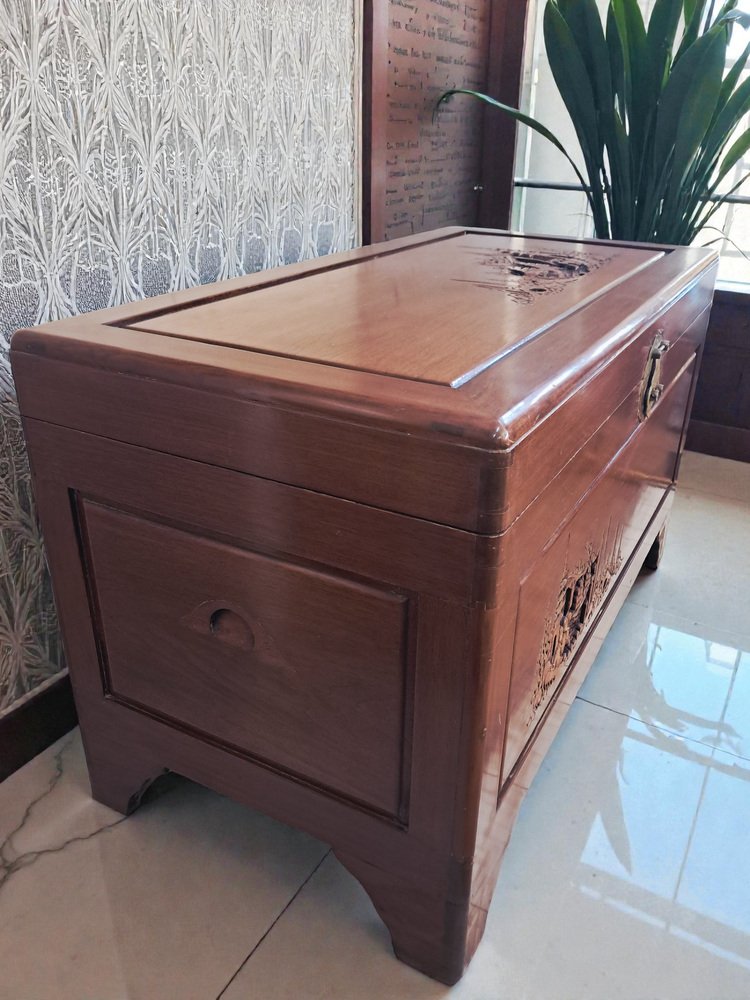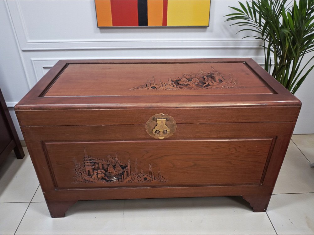 Vintage Oriental Carved Camphor Wood Trunk 1940