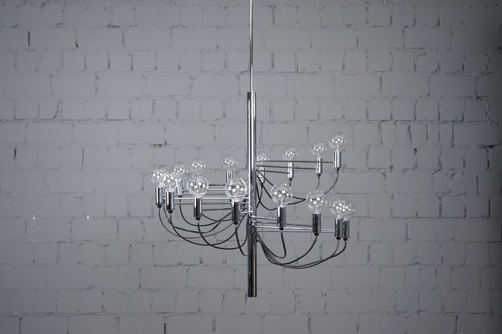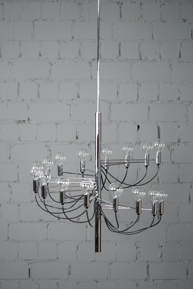 Grand Lustre Vintage à 16 Bras dans le style de Gino Sarfatti, 1970