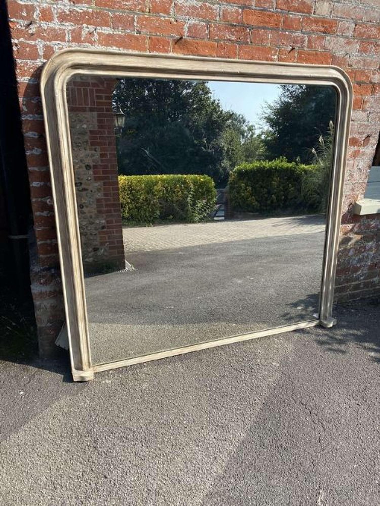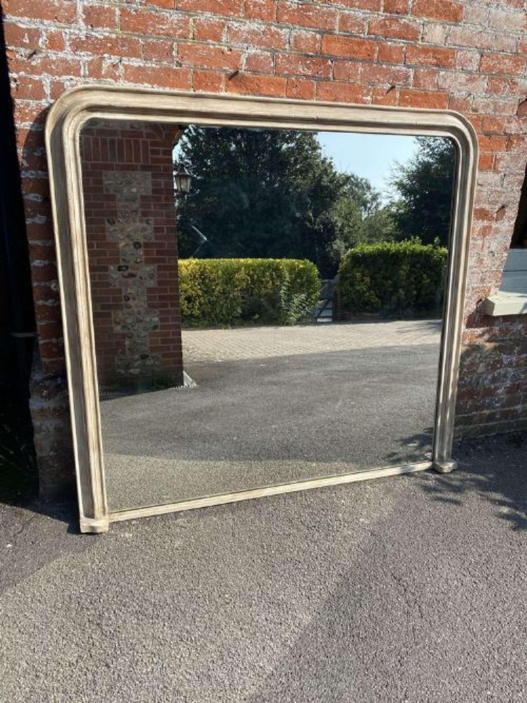 Grand Miroir Ancien 19ème Siècle en Bois Sculpté & Gesso, France