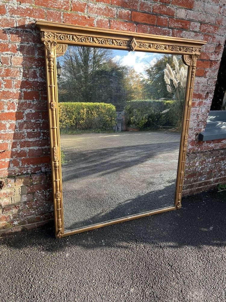 Grand Miroir Antique avec Cadre Colonne Dorée, Angleterre
