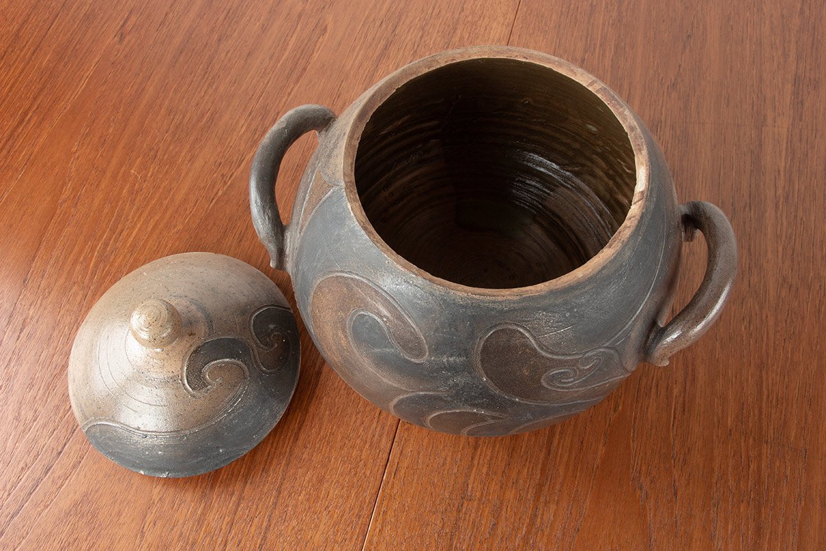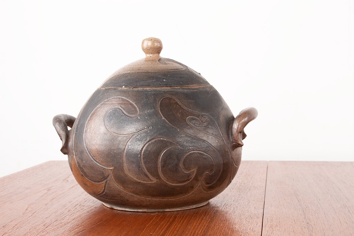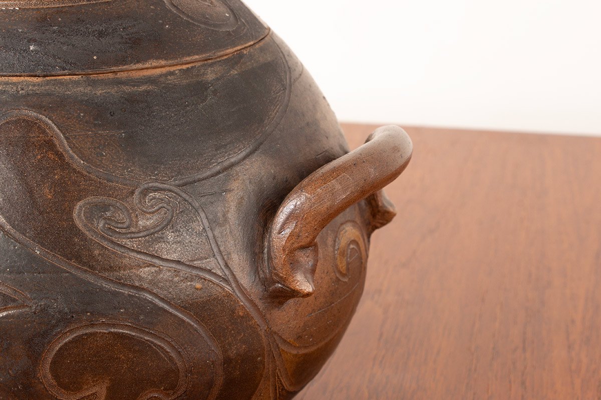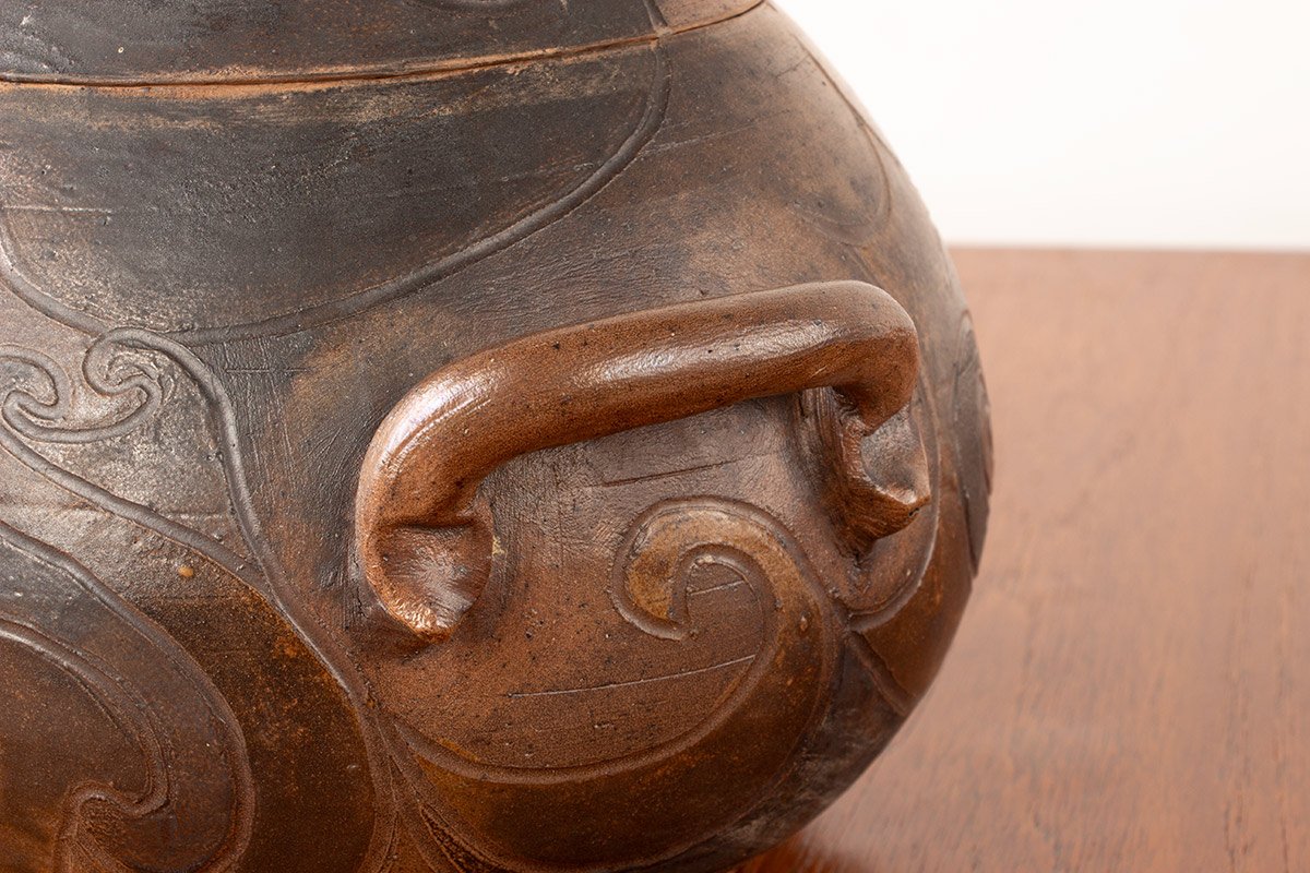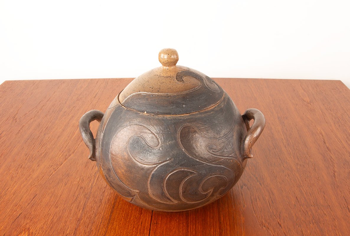 Grand Pot en Grès Vernis avec Décoration Stylisée de Georges Martin, France, 1970s