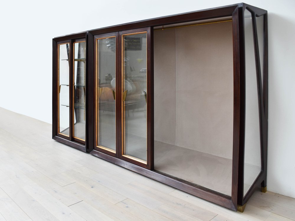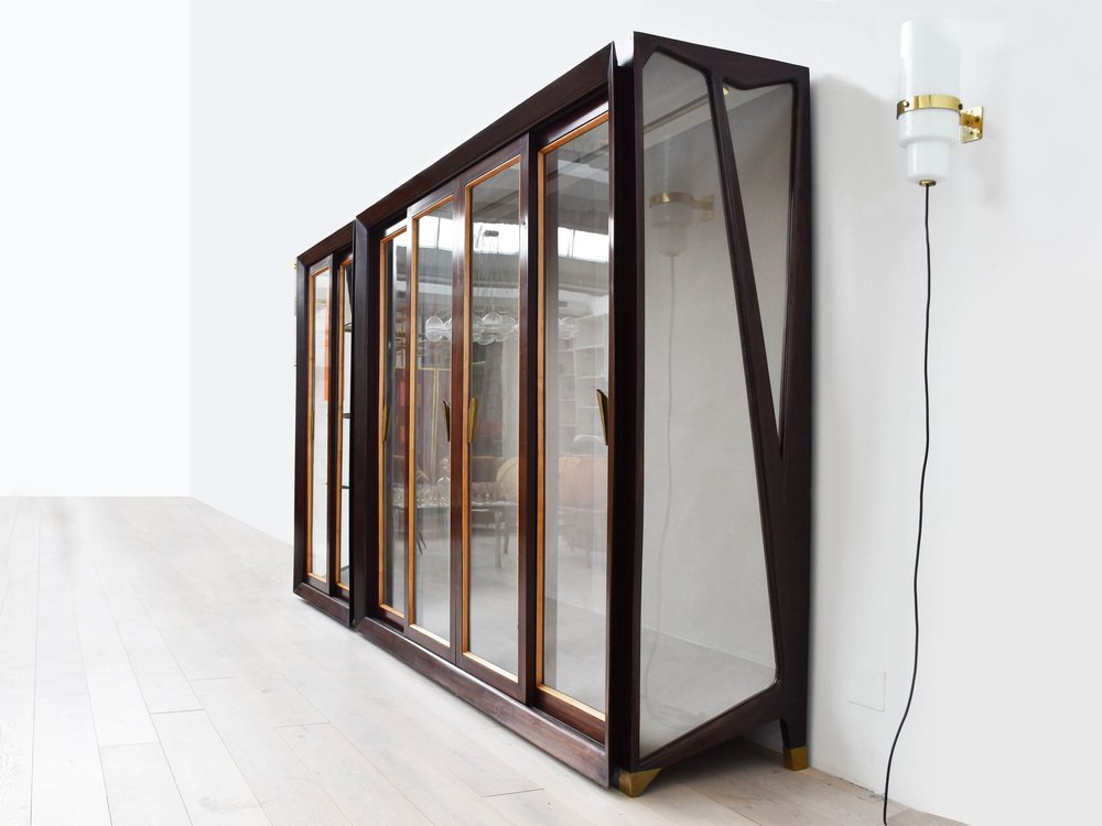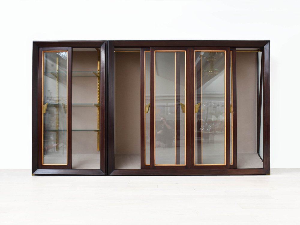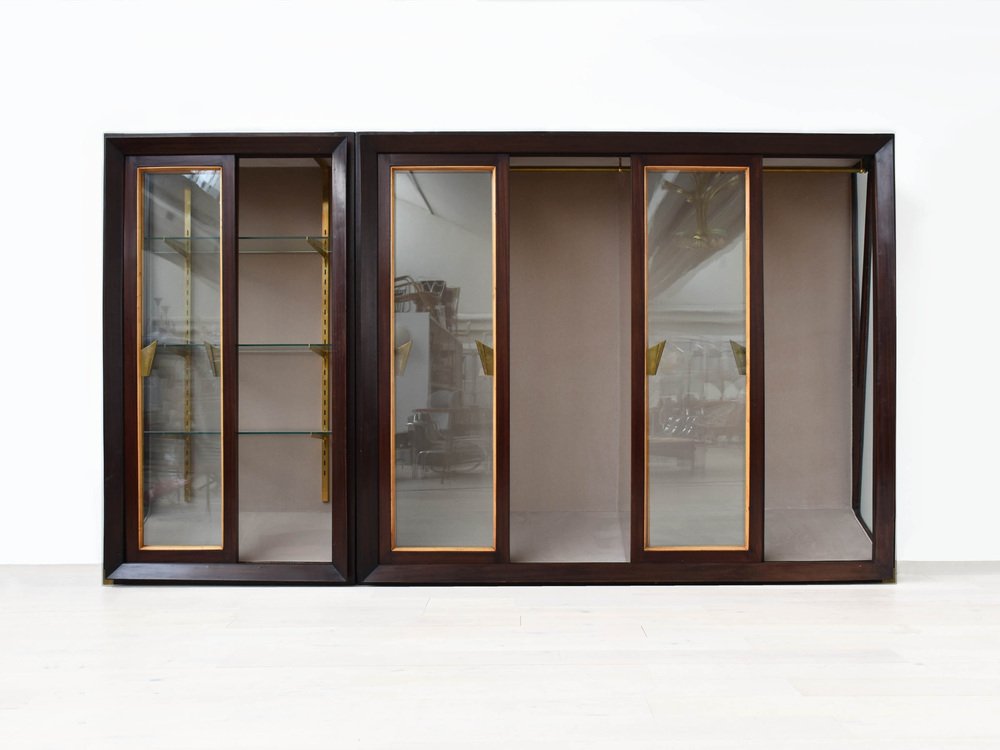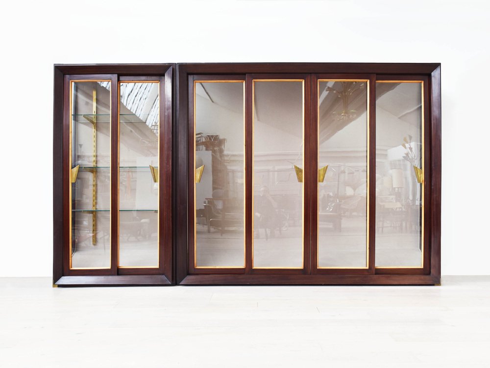 Grande Armoire à Portes Coulissantes et Détails en Laiton attribuée à Renzo Zavanelli, 1951, Set de 2