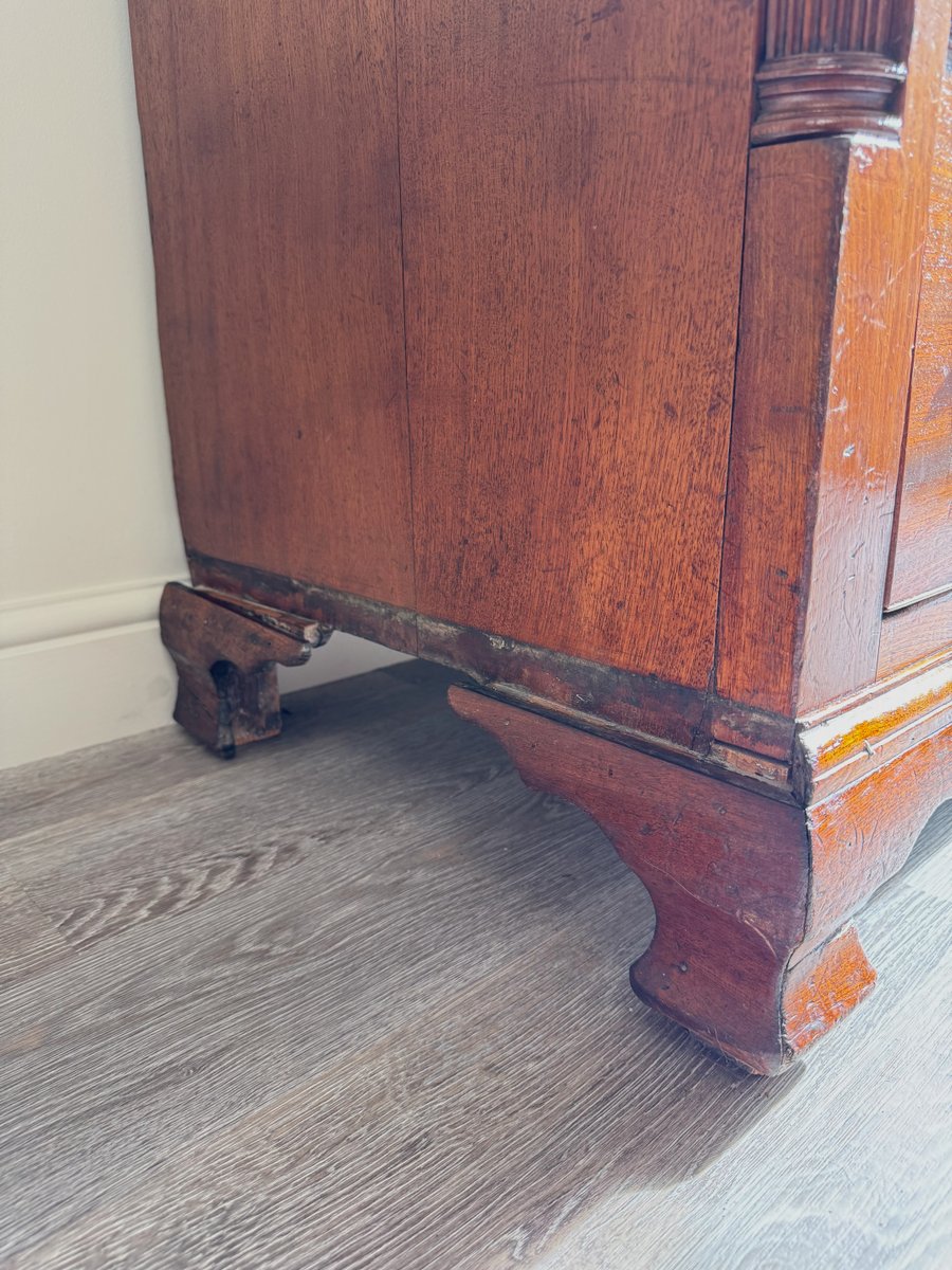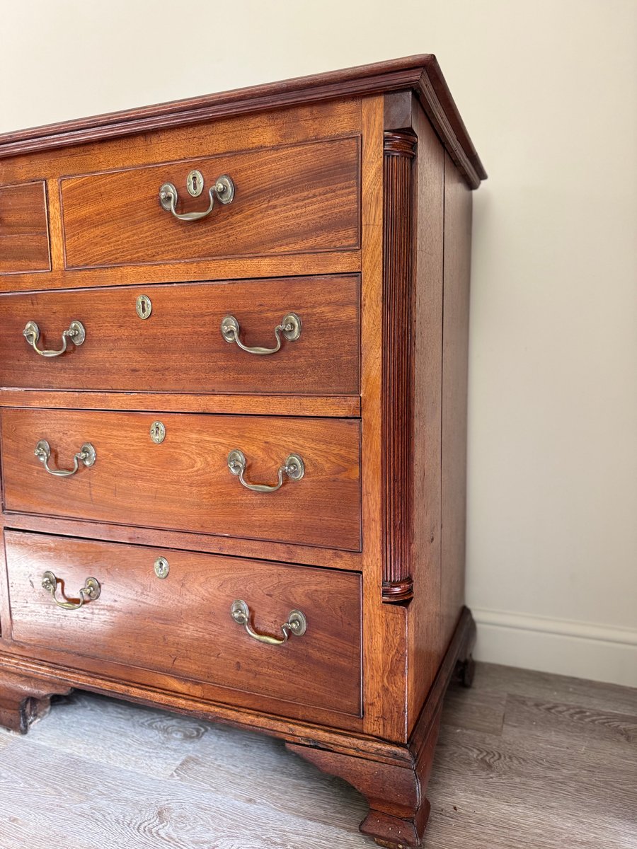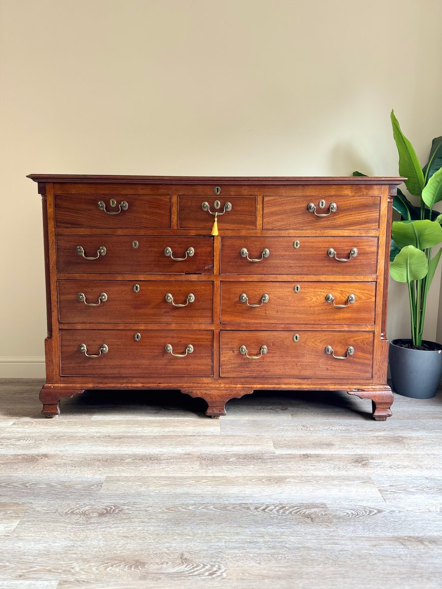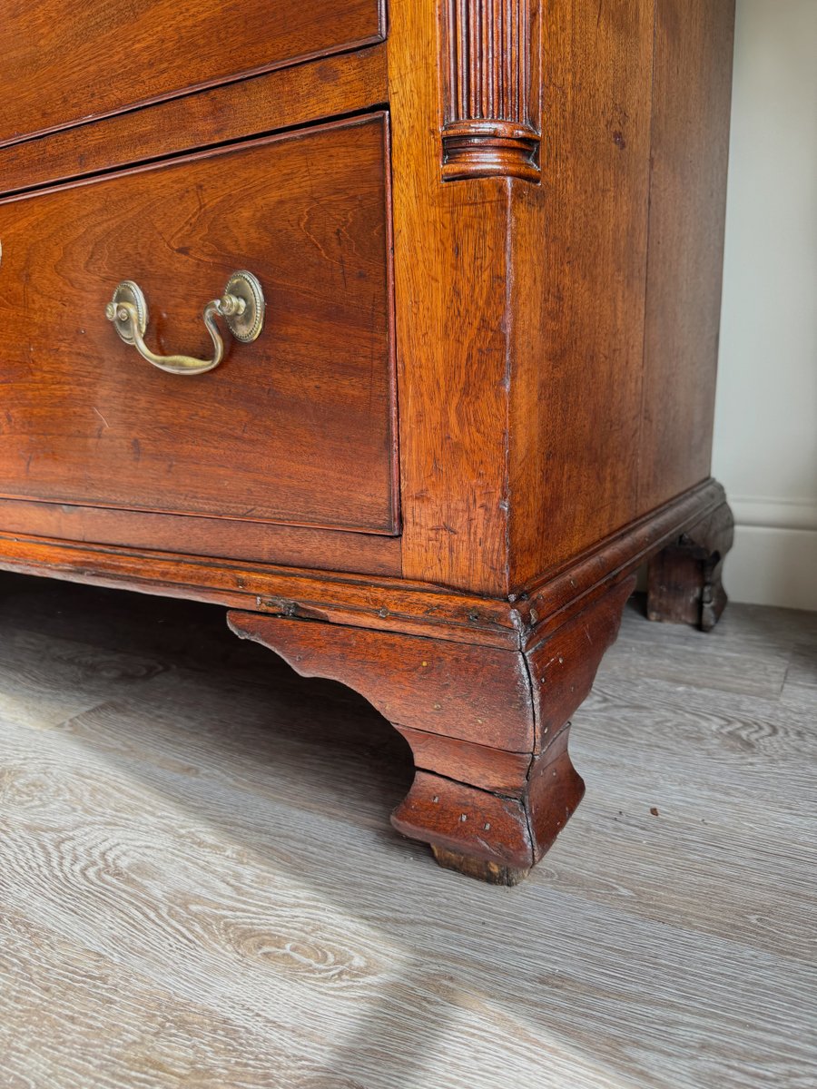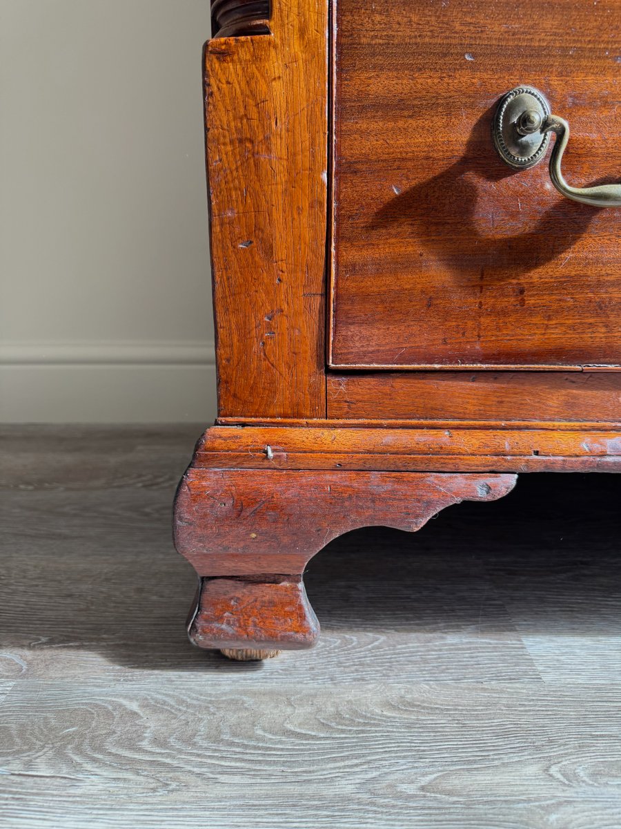 The warm patina of the mahogany showcases its rich grain, while the bracket feet and clean lines are true to the timeless Georgian style. Both practical and decorative, this chest provides ample storage and would make a striking addition to a living room, hallway, study, or bedroom.