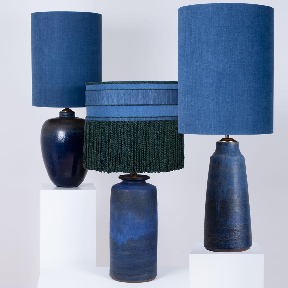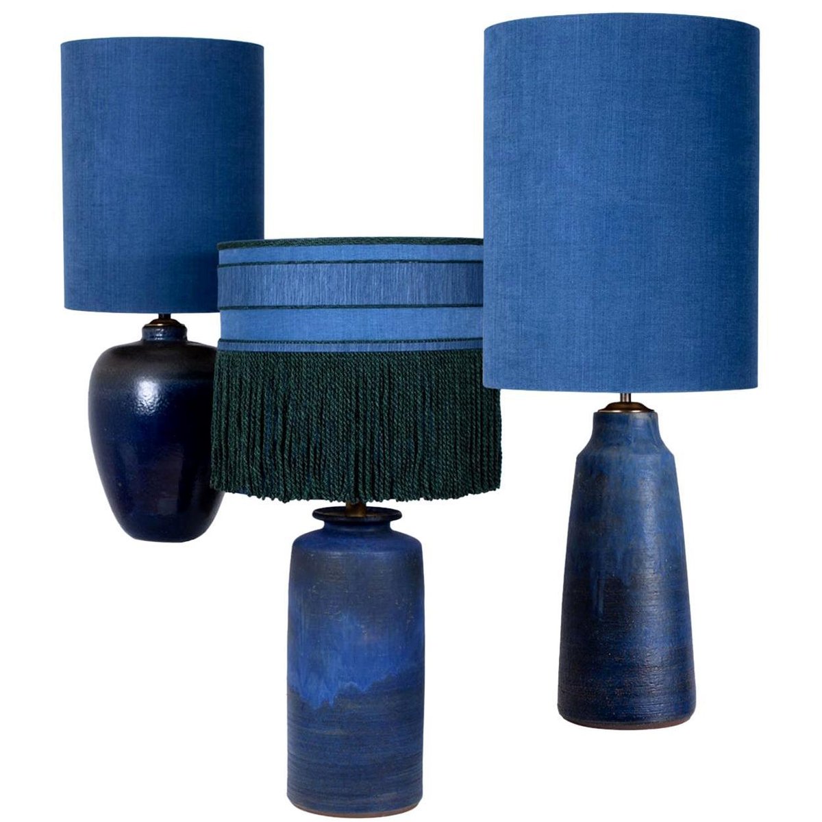 Grandes Lampes de Bureau avec Abat-Jours en Soie par René Houben, 1960s, Set de 3