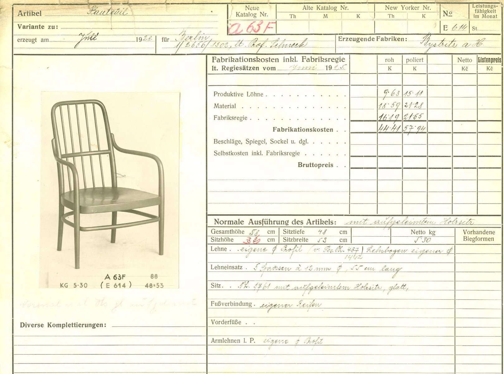 Model number: A 63F (armchair), A 63 (armchair), T 253 (table, company design by Thonet)