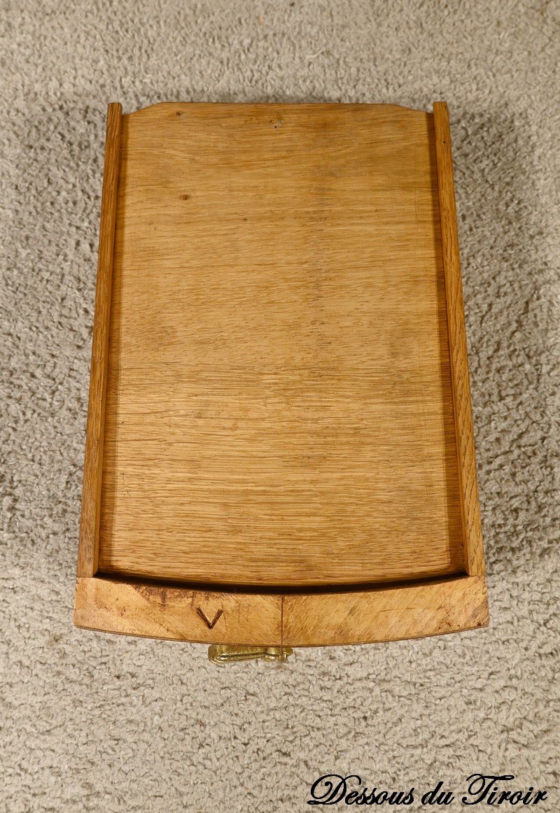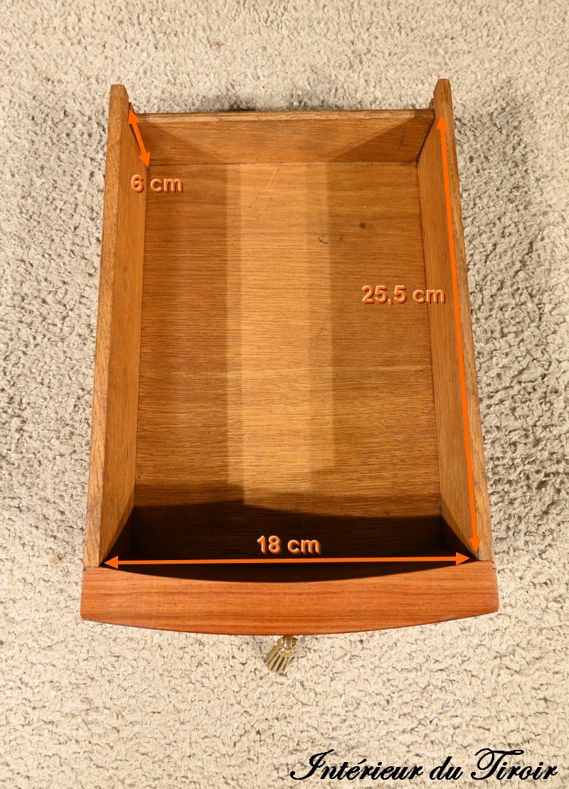 It is distinguished by its small belt drawer, decorated with a falling bronze handle decorated with cord.
