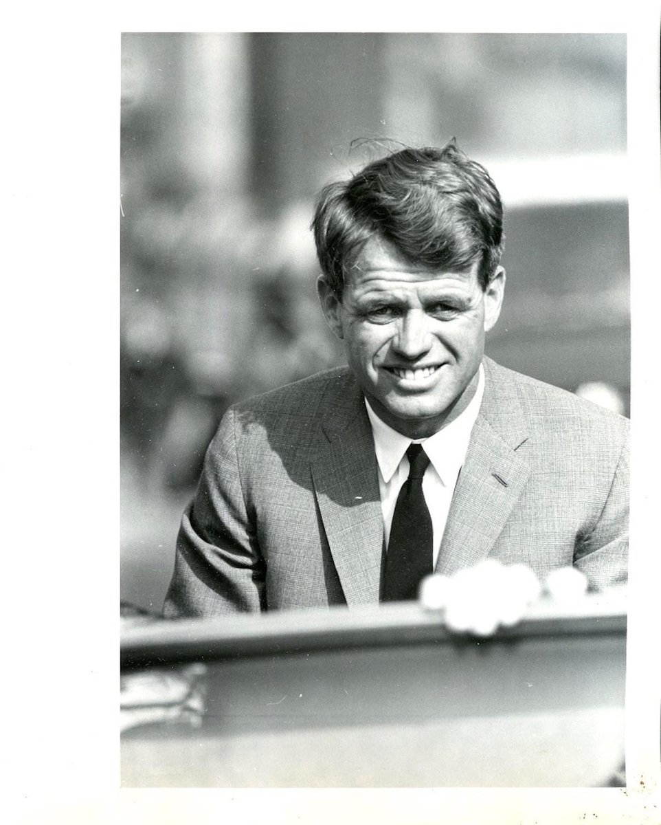 Portrait de Robert Kennedy par Grossman est un tirage photographique de Henry Grossman pris très probablement en 1968 avant l'homicide de Kennedy. Tirage sur papier baryté avec tampon du photographe et cliché appliqué au dos. Excellent état. Dim : cm 20 x 25 Sur cette photo, Robert Francis Kennedy (également appelé Bob ou Bobby, 1925-1968), fils de Joseph Patrick Kennedy et de Rose Fitzgerald, frère de John F. Kennedy. Henry Grossman (1936-) est un photographe américain, particulièrement connu pour ses portraits de personnalités politiques importantes telles que le président John F. Kennedy, ainsi que d'écrivains et d'artistes du spectacle, dont Elizabeth Tylor, Luciano Pavarotti et Barbra Streisand.