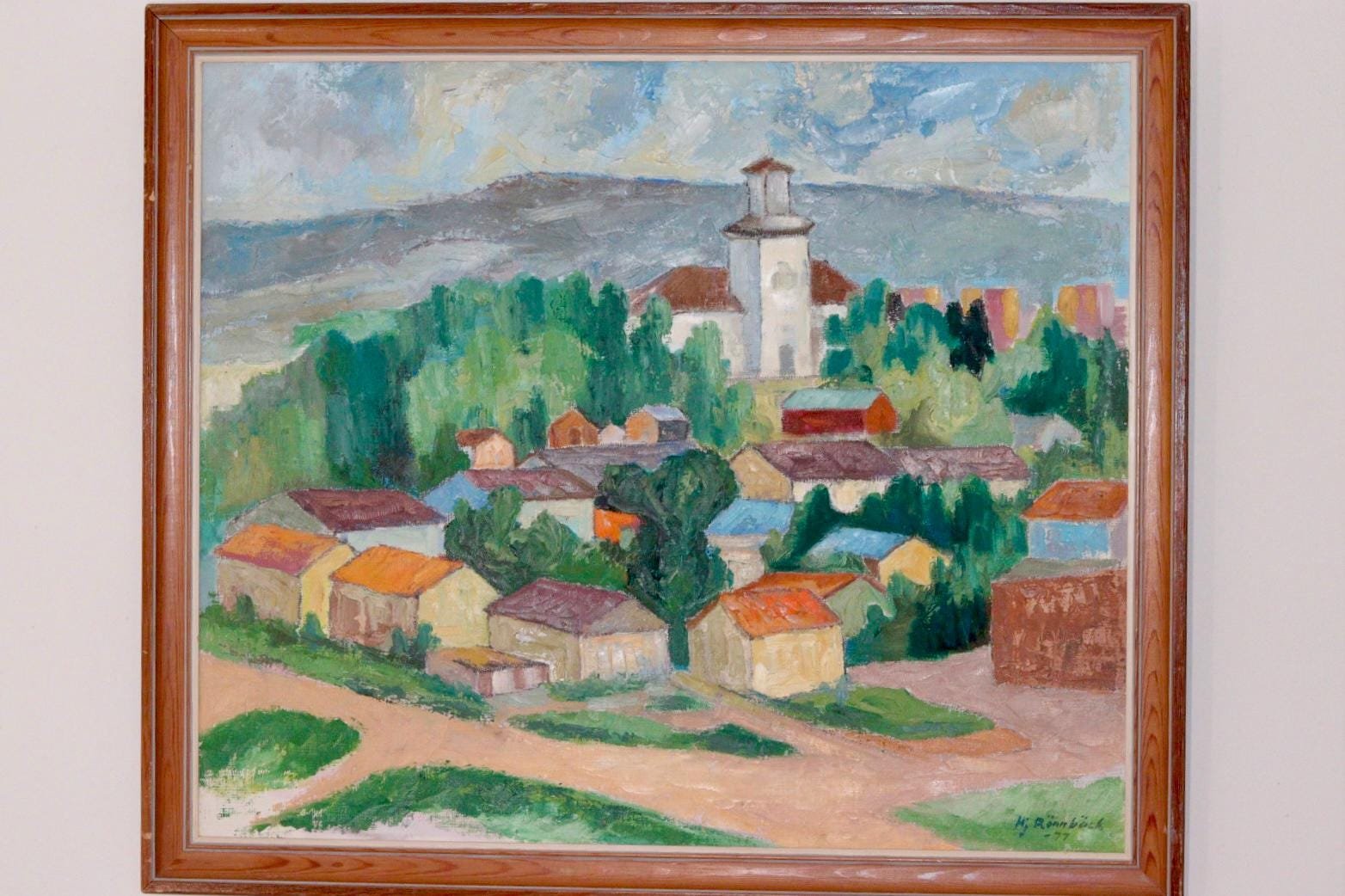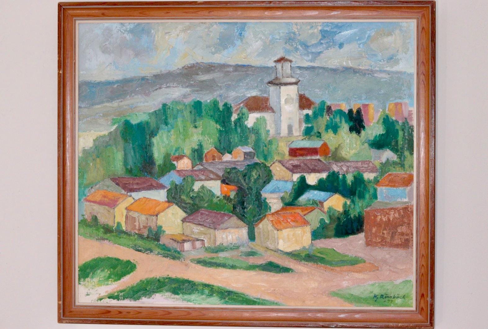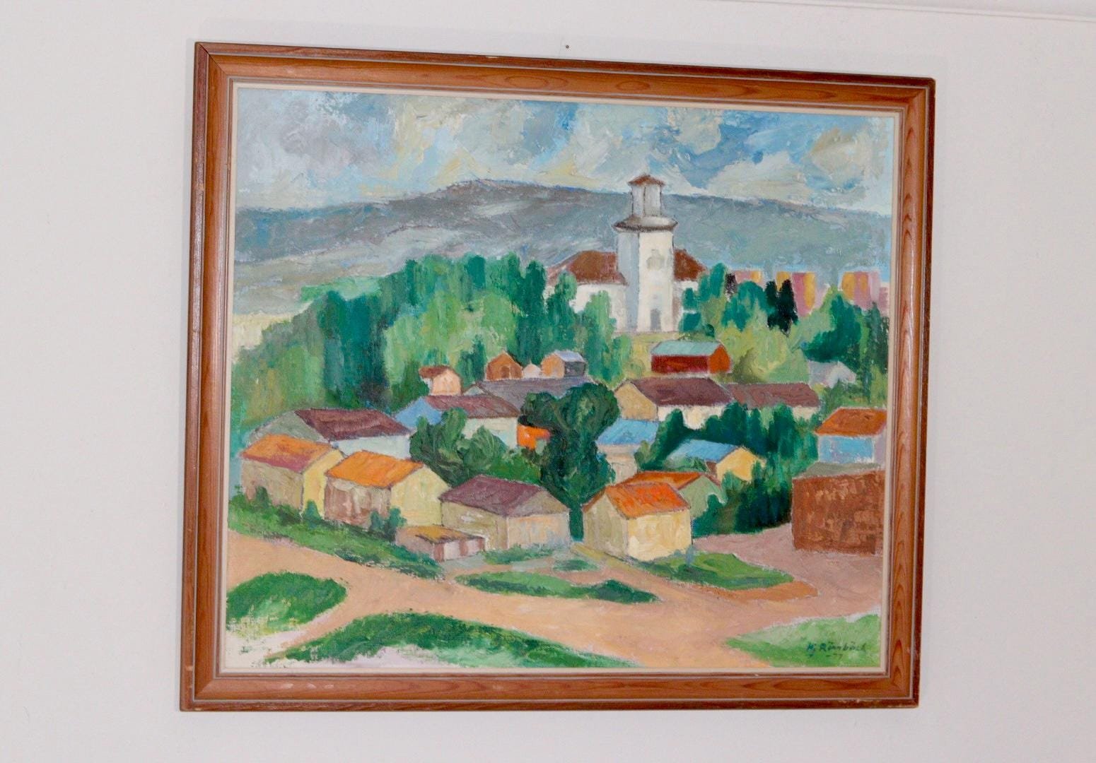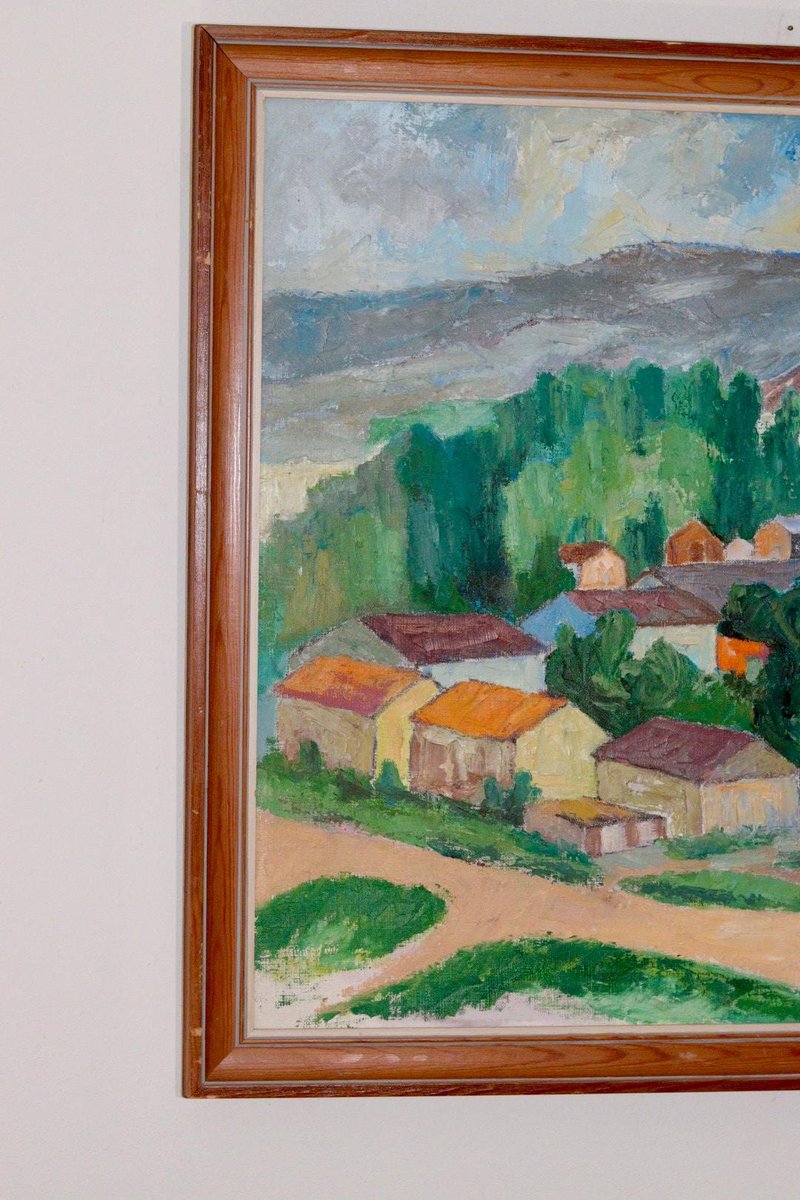 Hjalmar Rönnbäck, Village, 1970s, Huile sur Toile