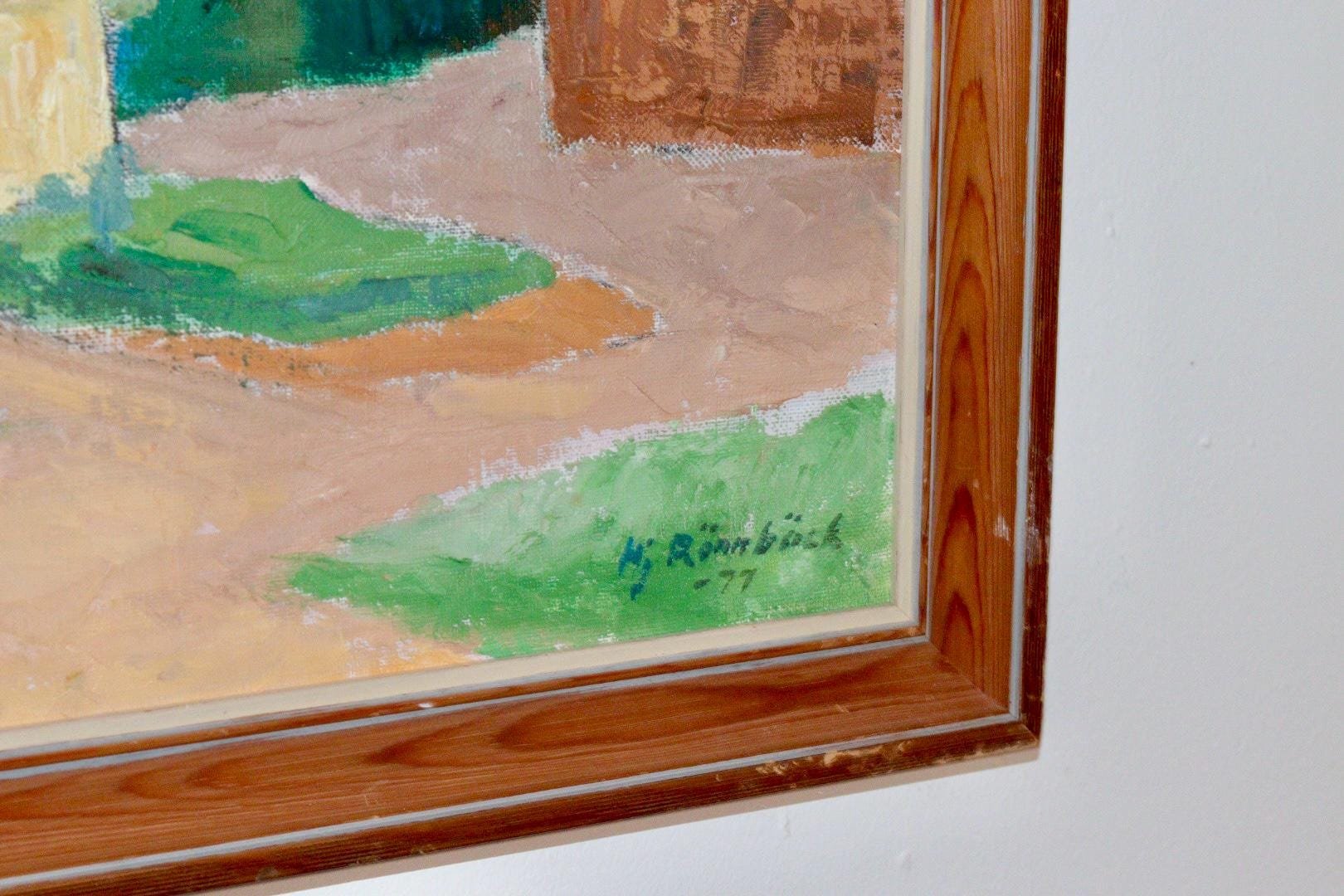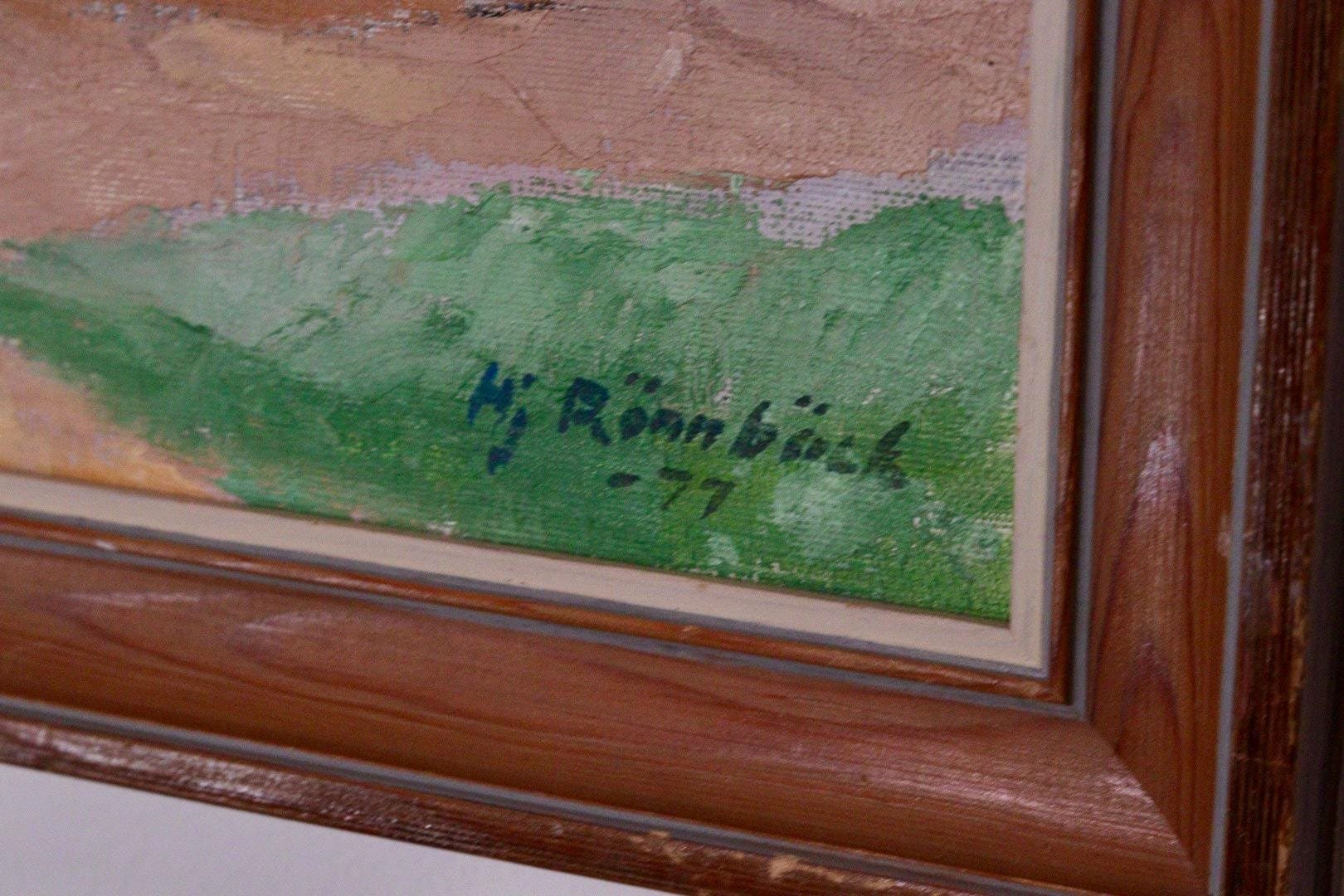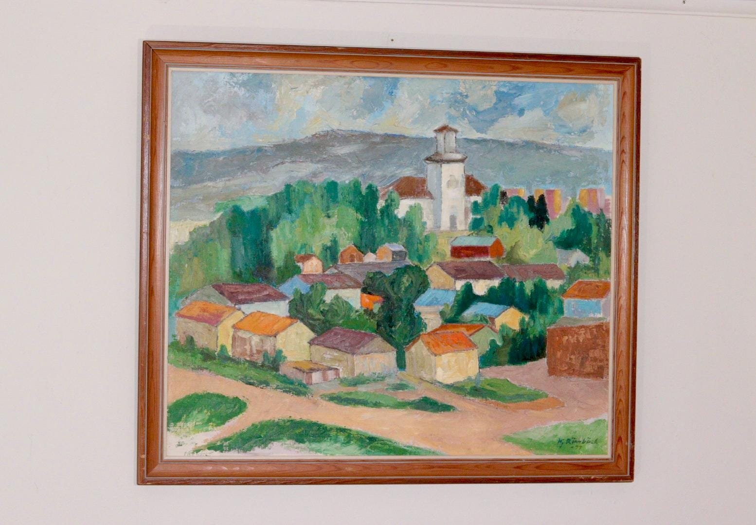 Hjalmar Rönnbäck, Village, 1970s, Huile sur Toile