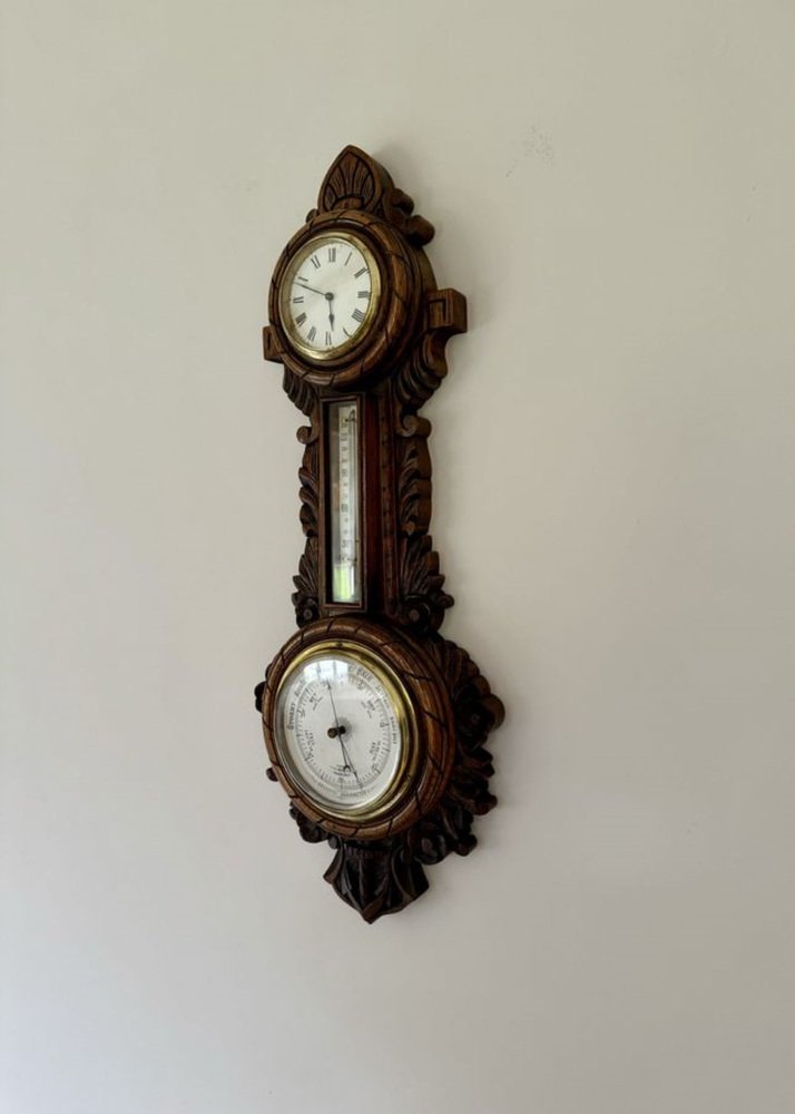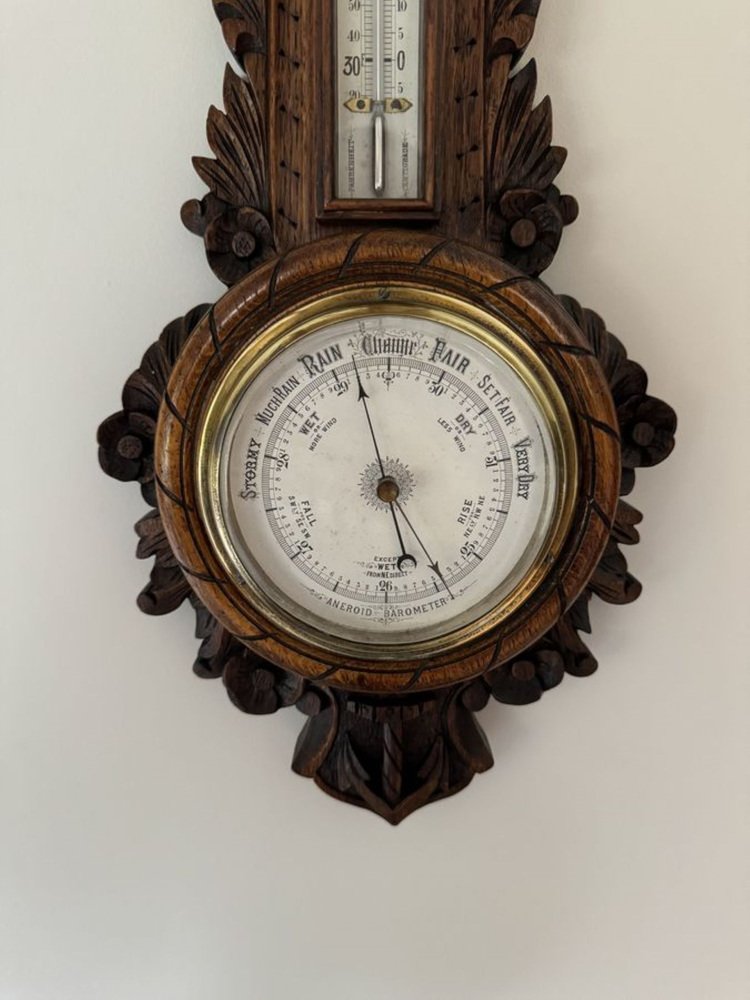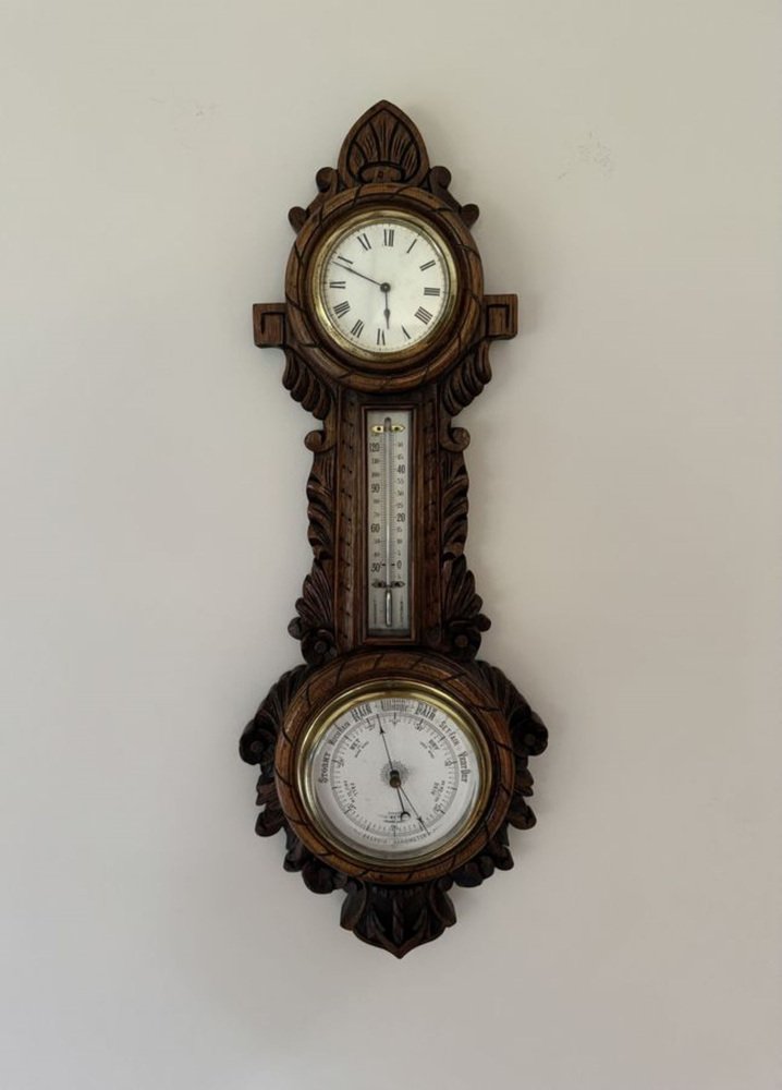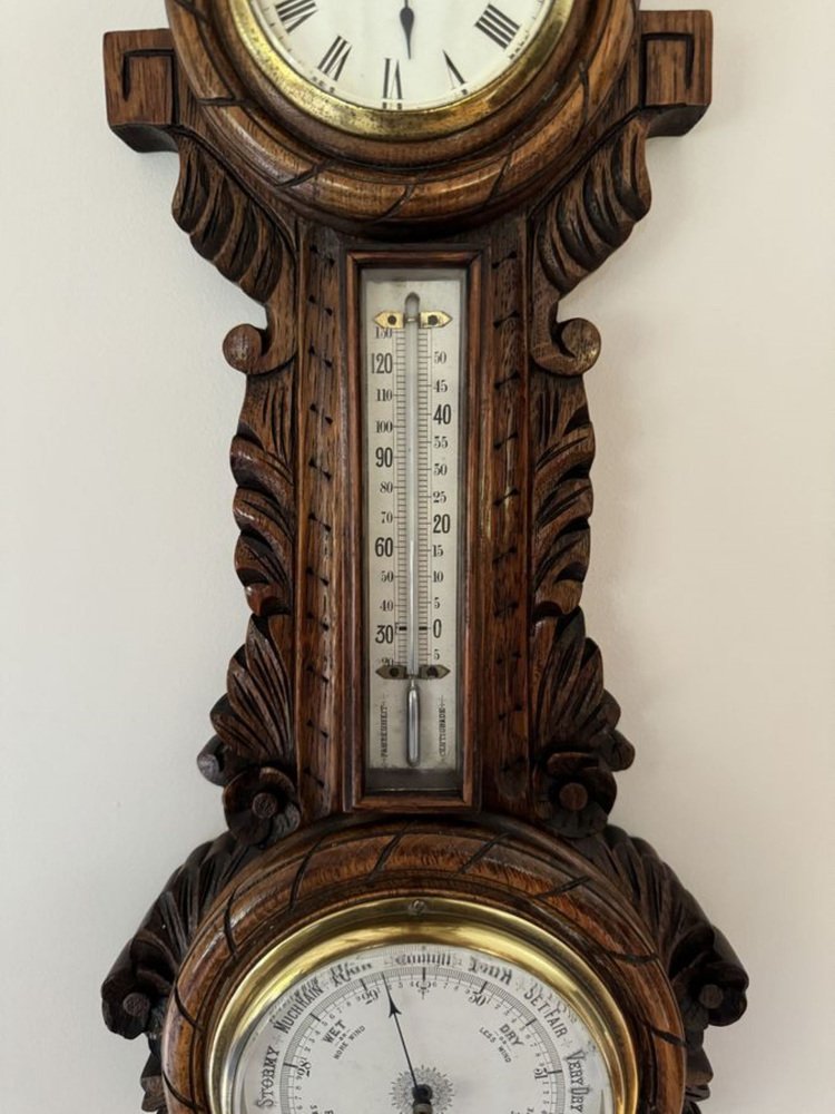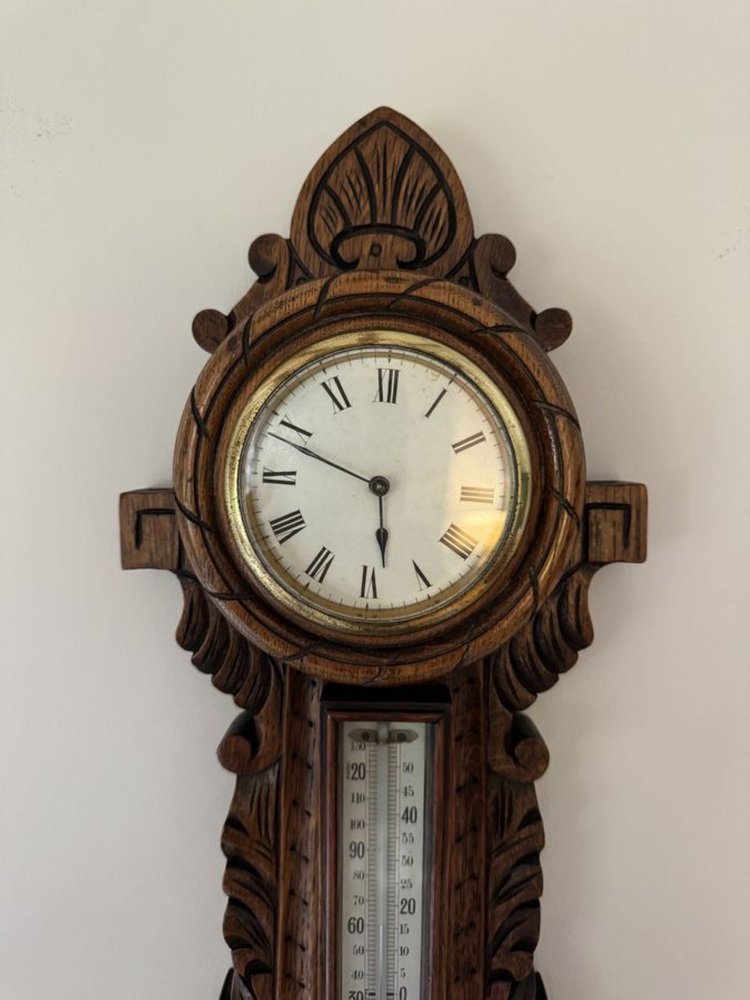 Horloge Banjo Baromètre Antique en Chêne Sculpté, 1900