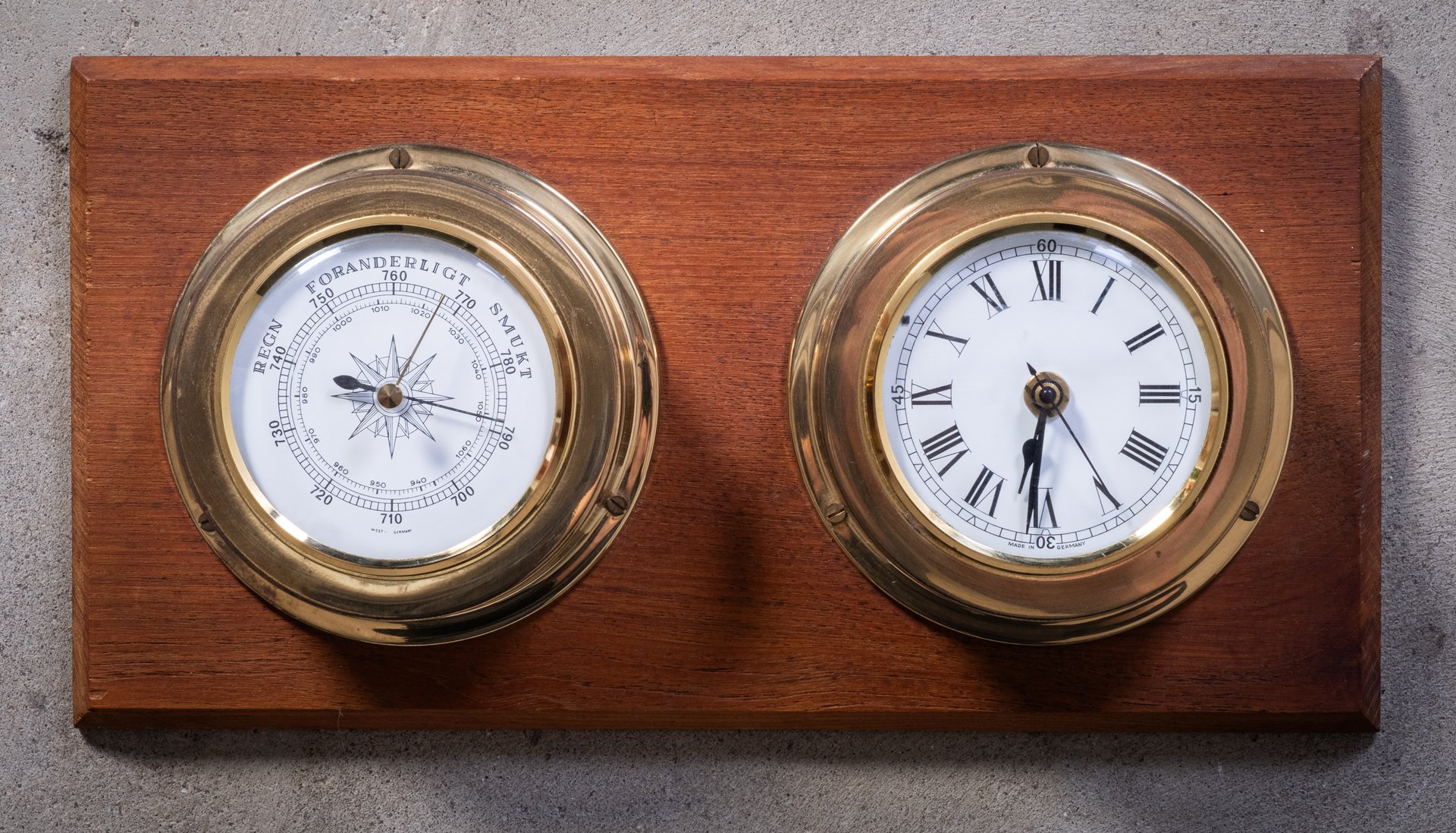 Horloge de Navire et Baromètre en Teck et Laiton, 1960s