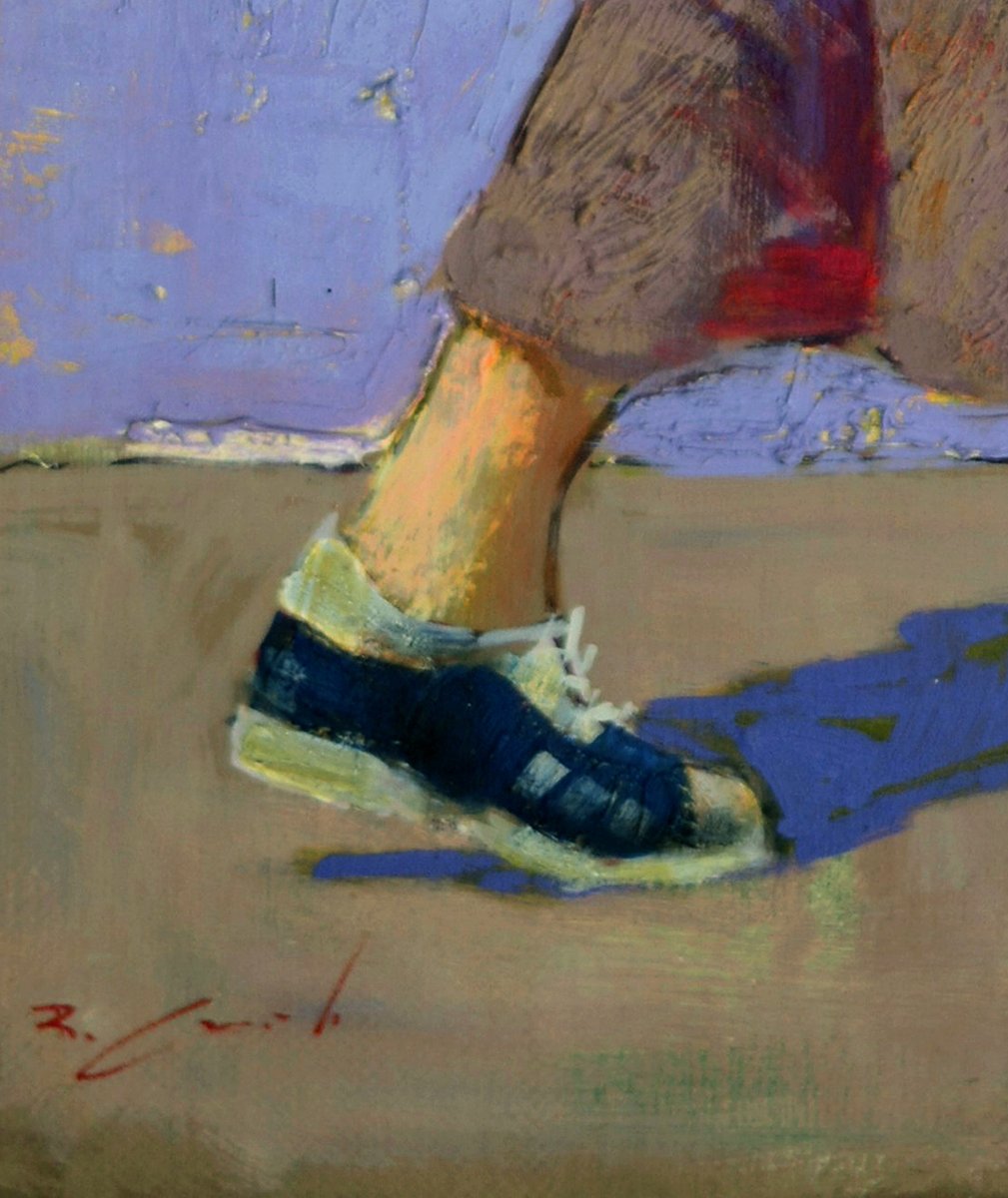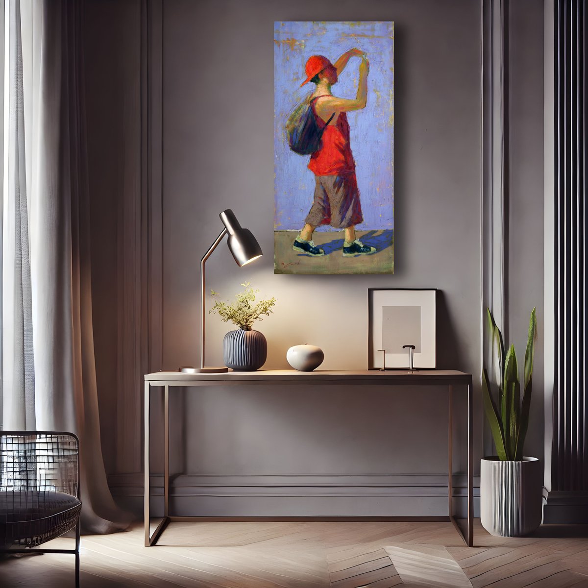 Le sujet, immergé dans un moment spontané, est représenté avec une utilisation magistrale de la lumière et de la couleur, deux caractéristiques distinctives du style de Criscuolo. Marco est une œuvre qui rayonne d'énergie et de vitalité, ce qui en fait un complément parfait aux intérieurs modernes et éclectiques.