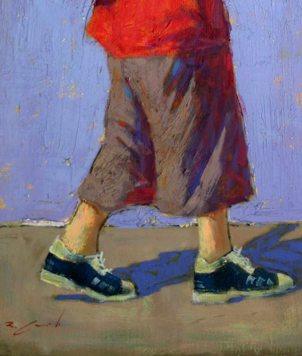 In this stunning oil painting, the artist explores the lightheartedness of adolescence through bold, textured brushstrokes, achieving a perfect balance between tradition and experimentation. The intense colors and the rich texture of the paint create a striking three-dimensional effect, making the scene almost tangible.