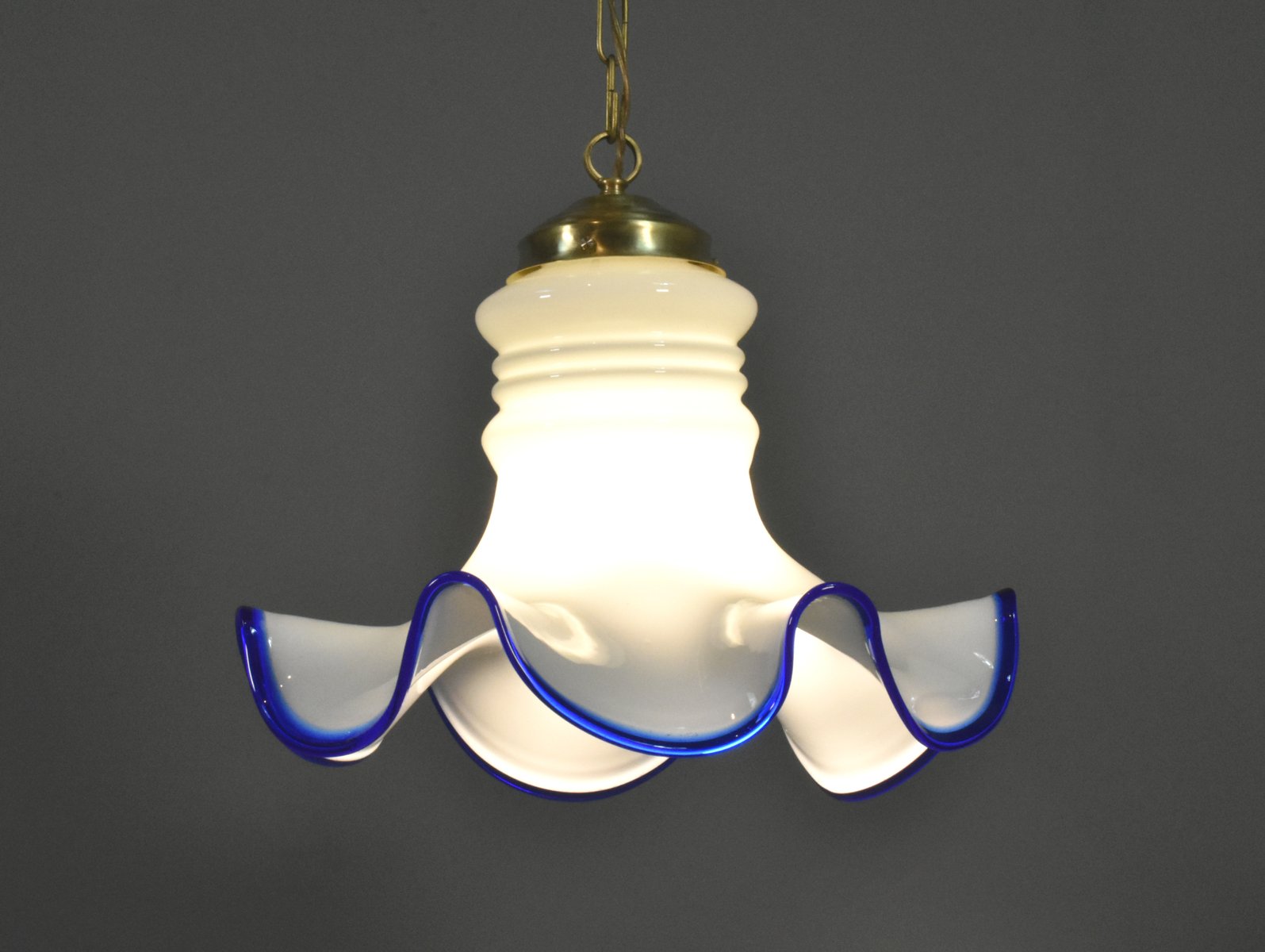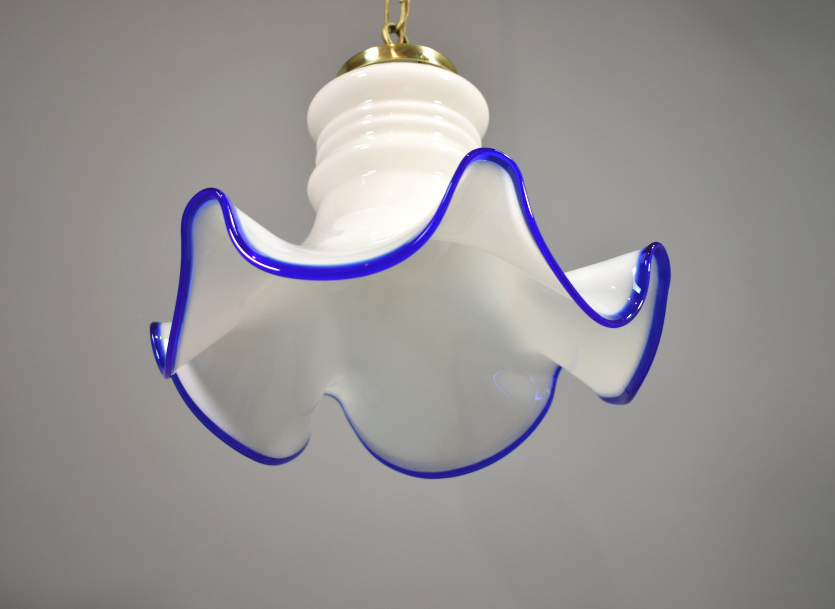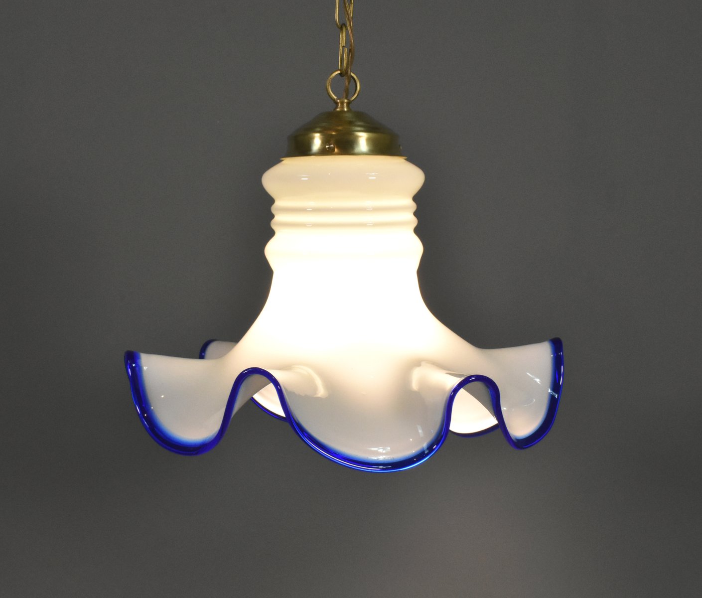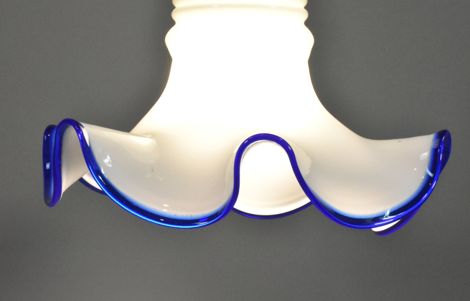 Lampe à Suspension en Opaline de Murano et Verre Bleu, 1970s