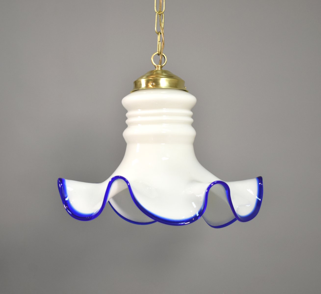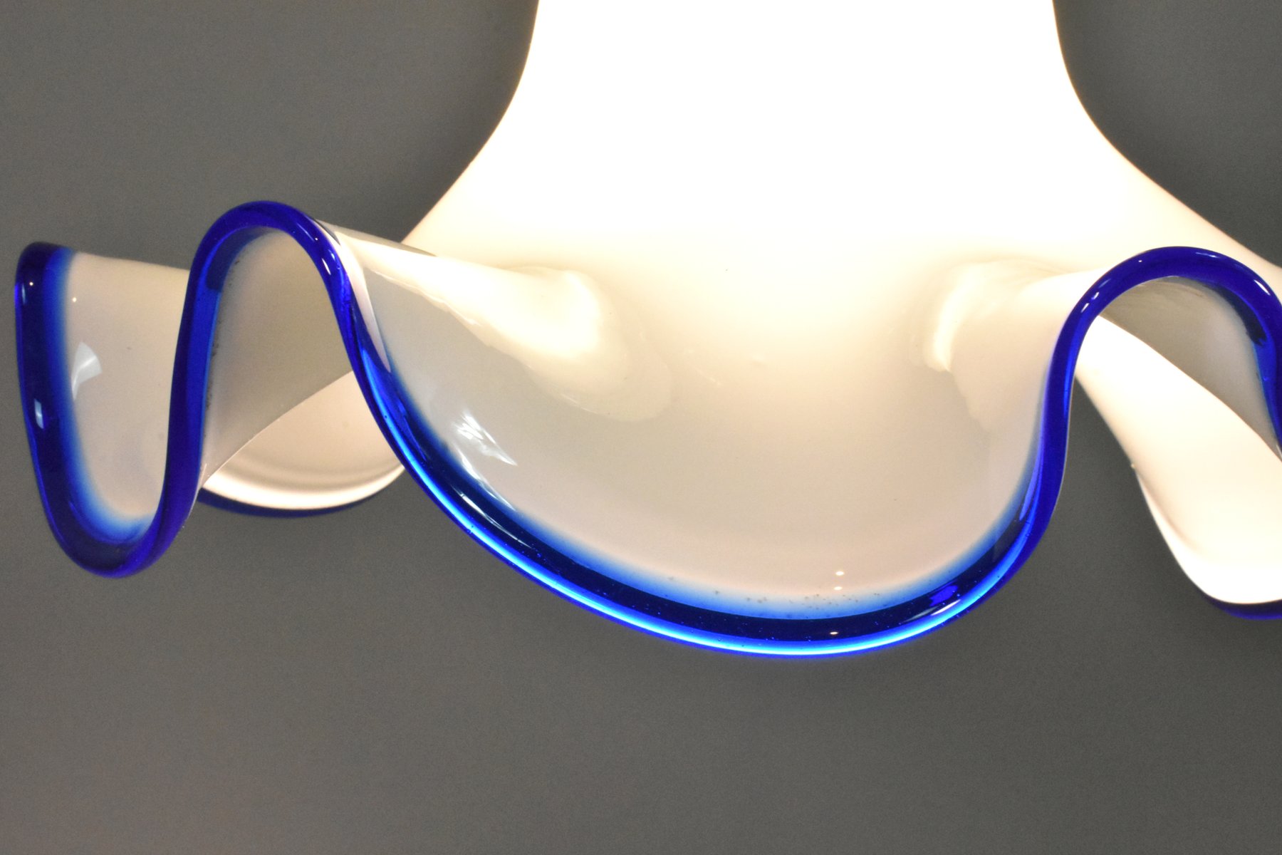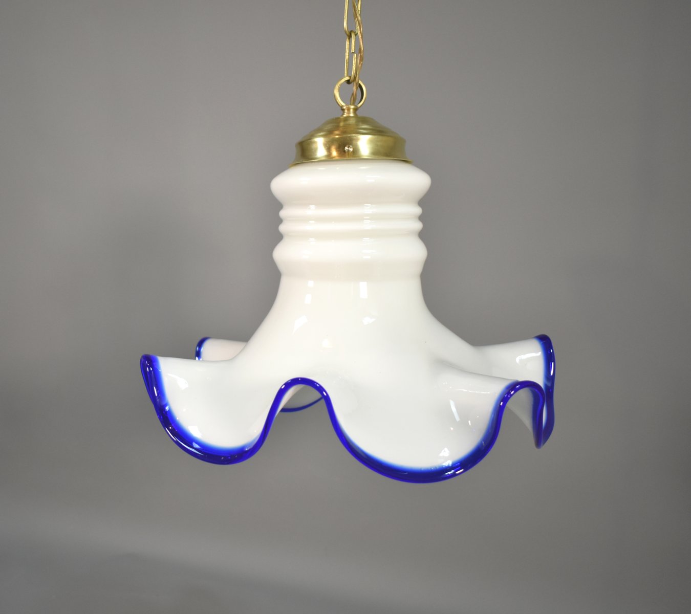 Lampe à Suspension en Opaline de Murano et Verre Bleu, 1970s