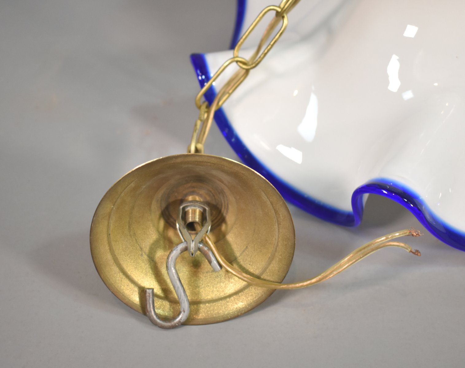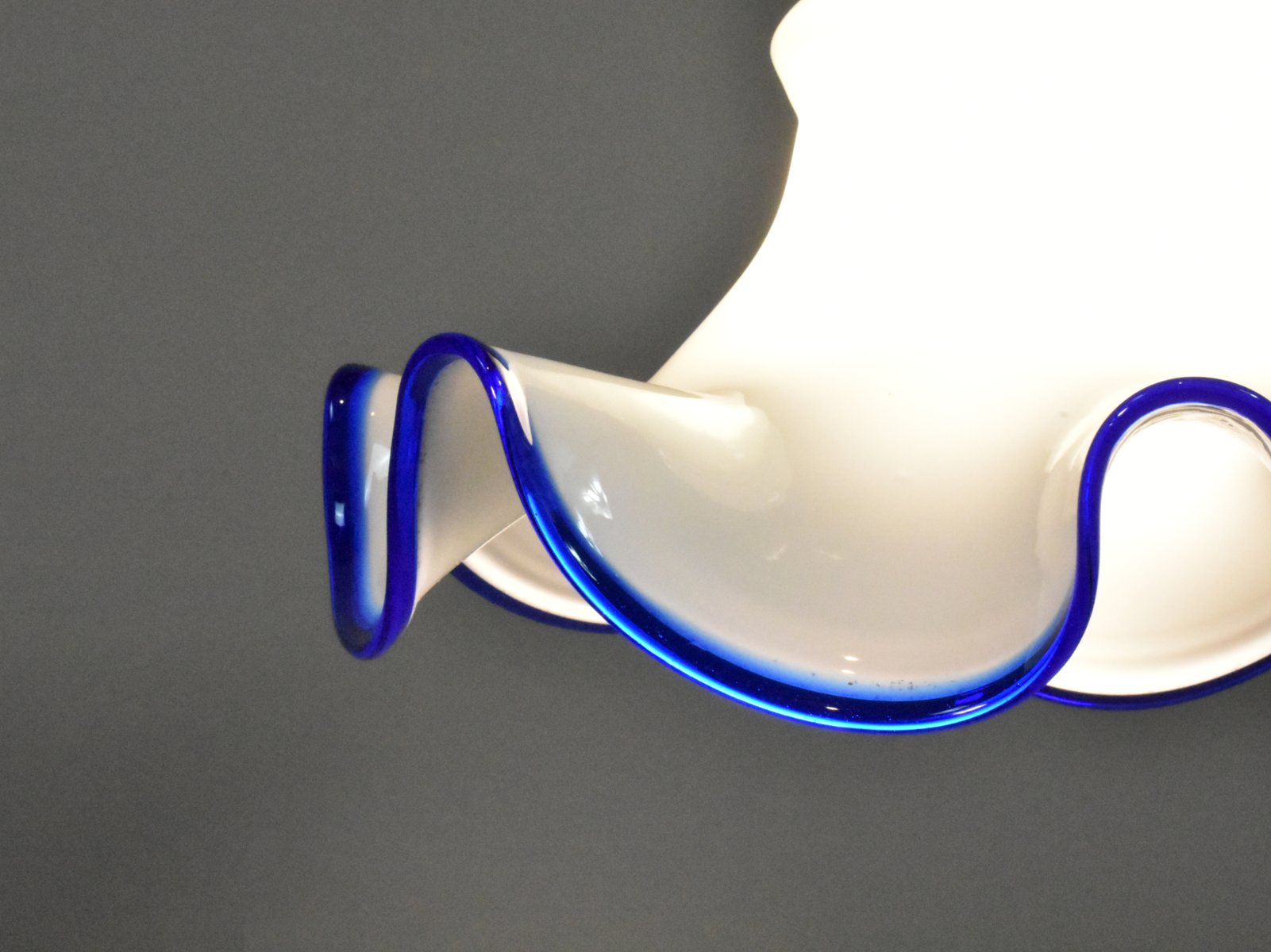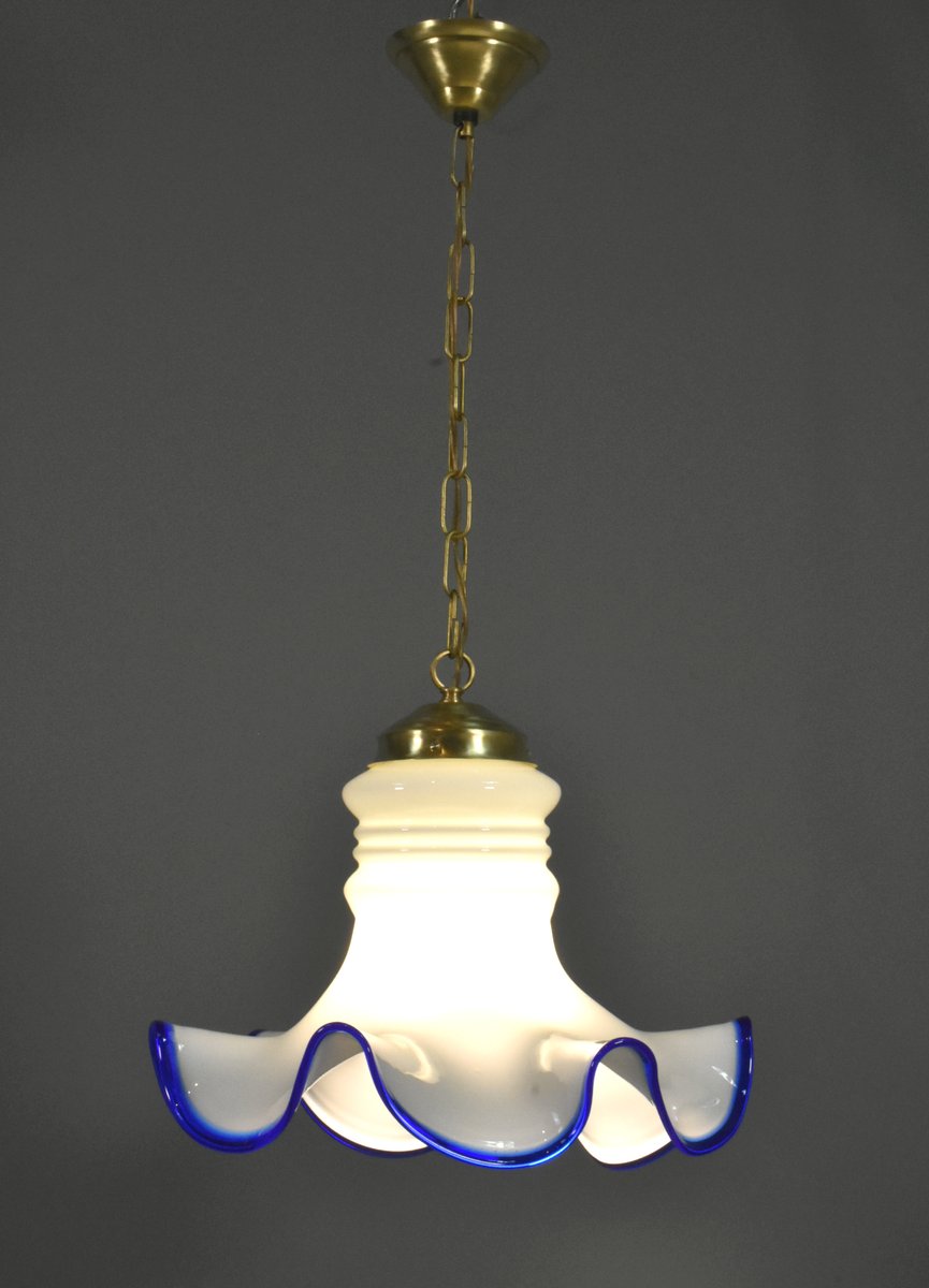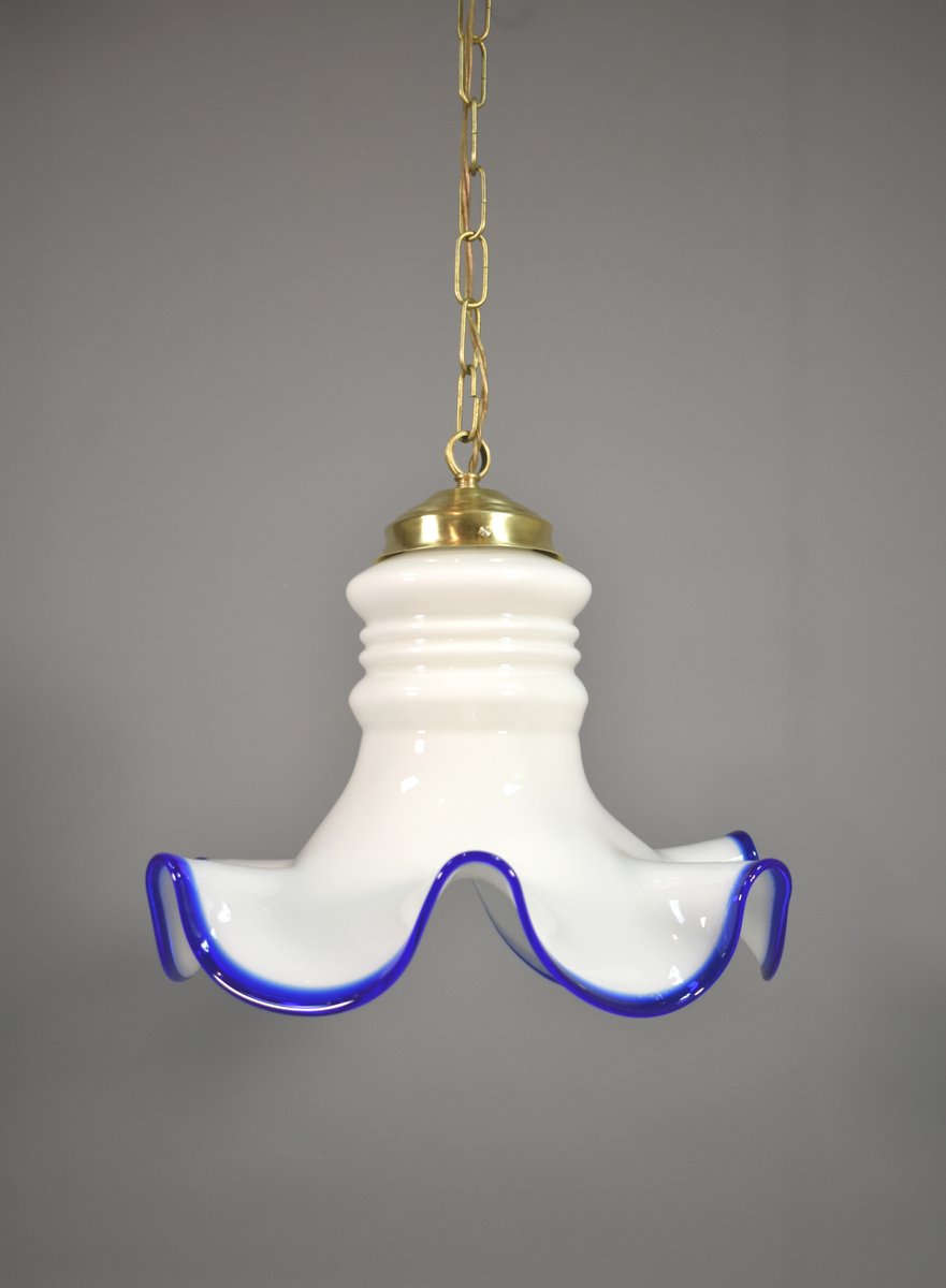 Lampe à Suspension en Opaline de Murano et Verre Bleu, 1970s