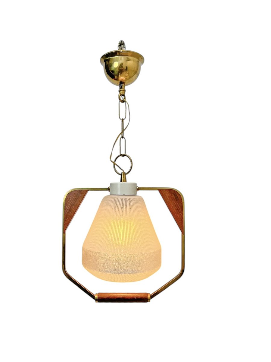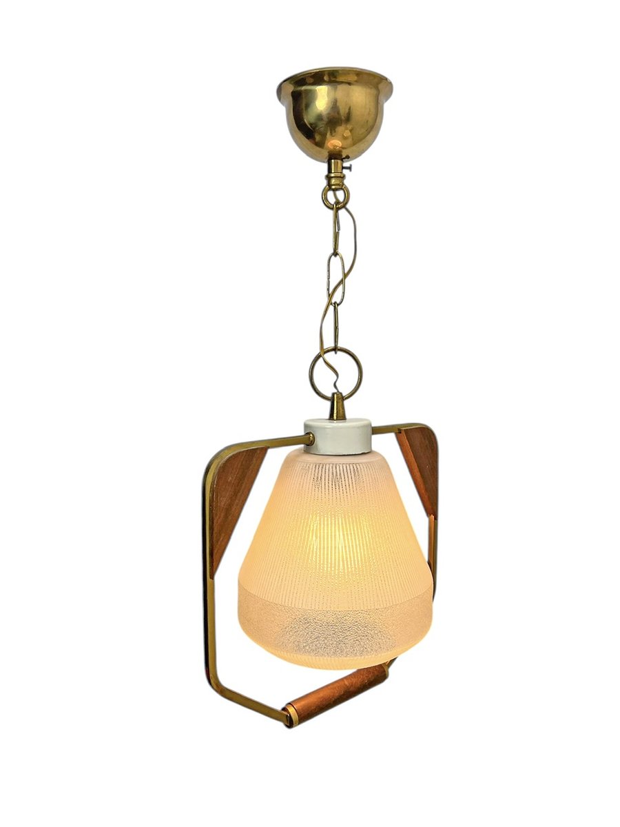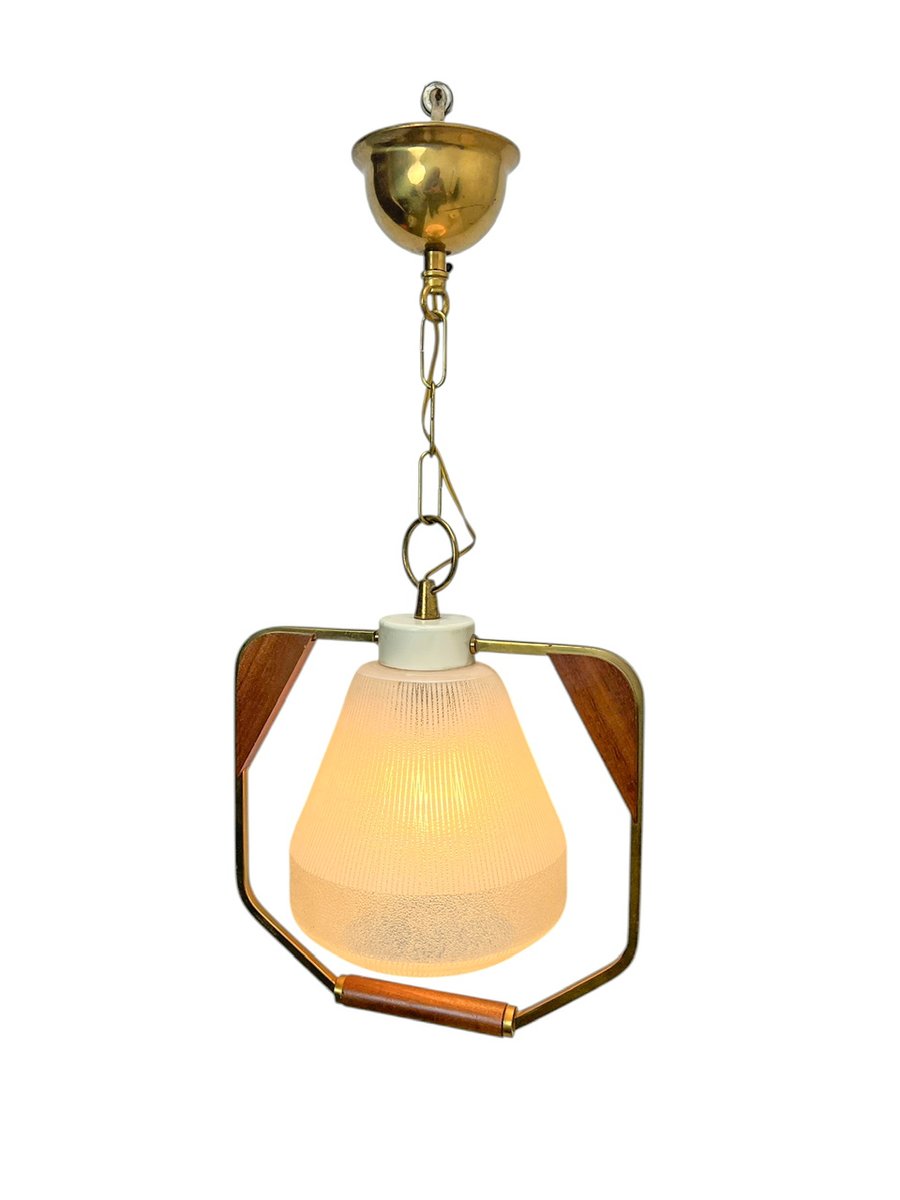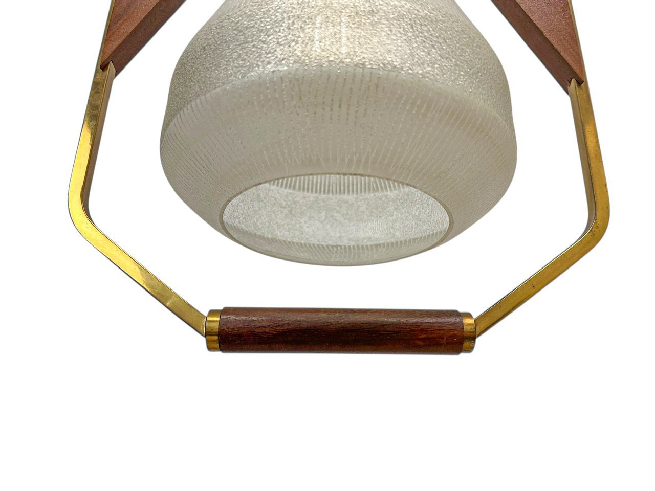 Lampe à Suspension en Teck et Laiton et Verre, Danemark, 1960s