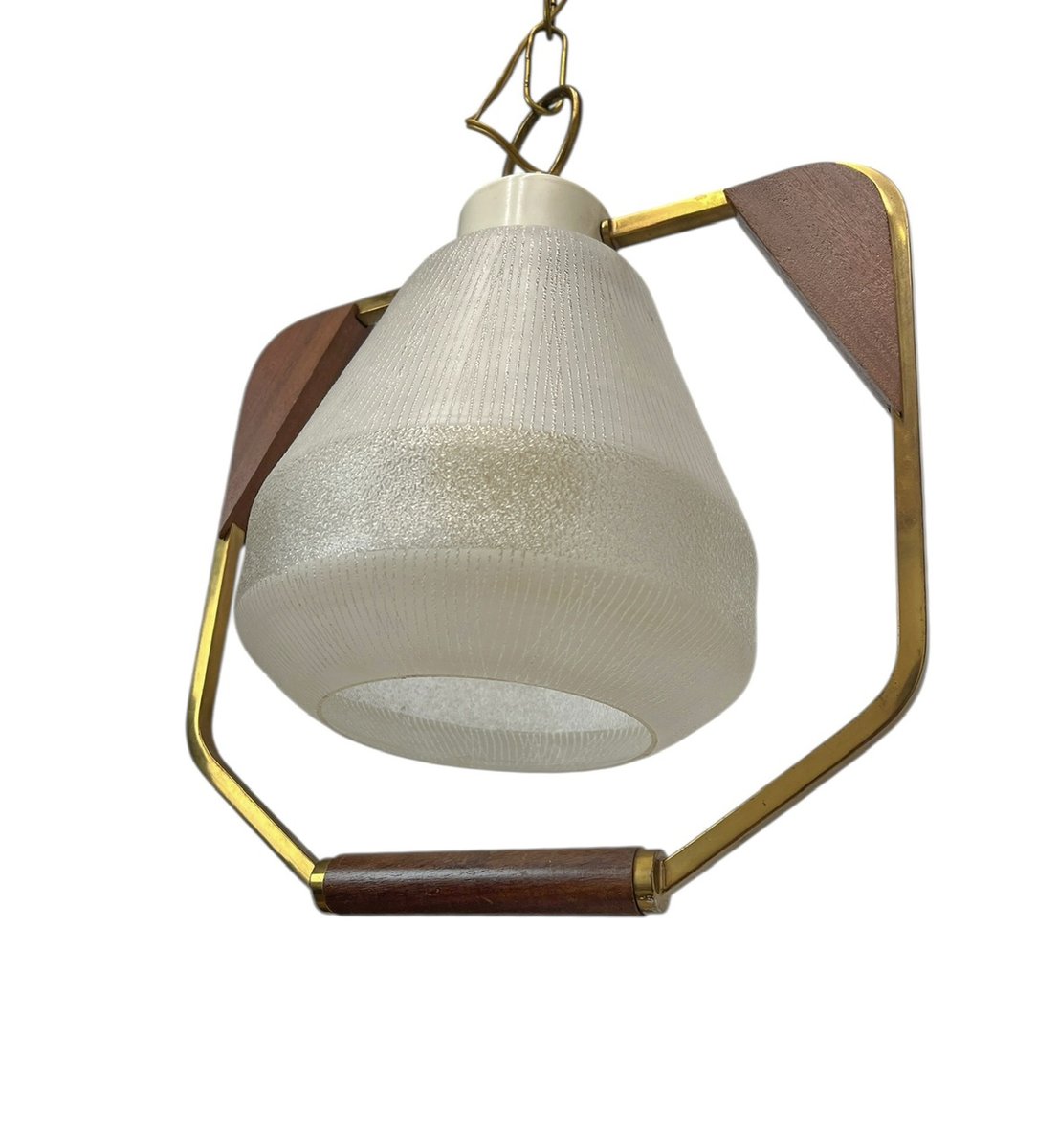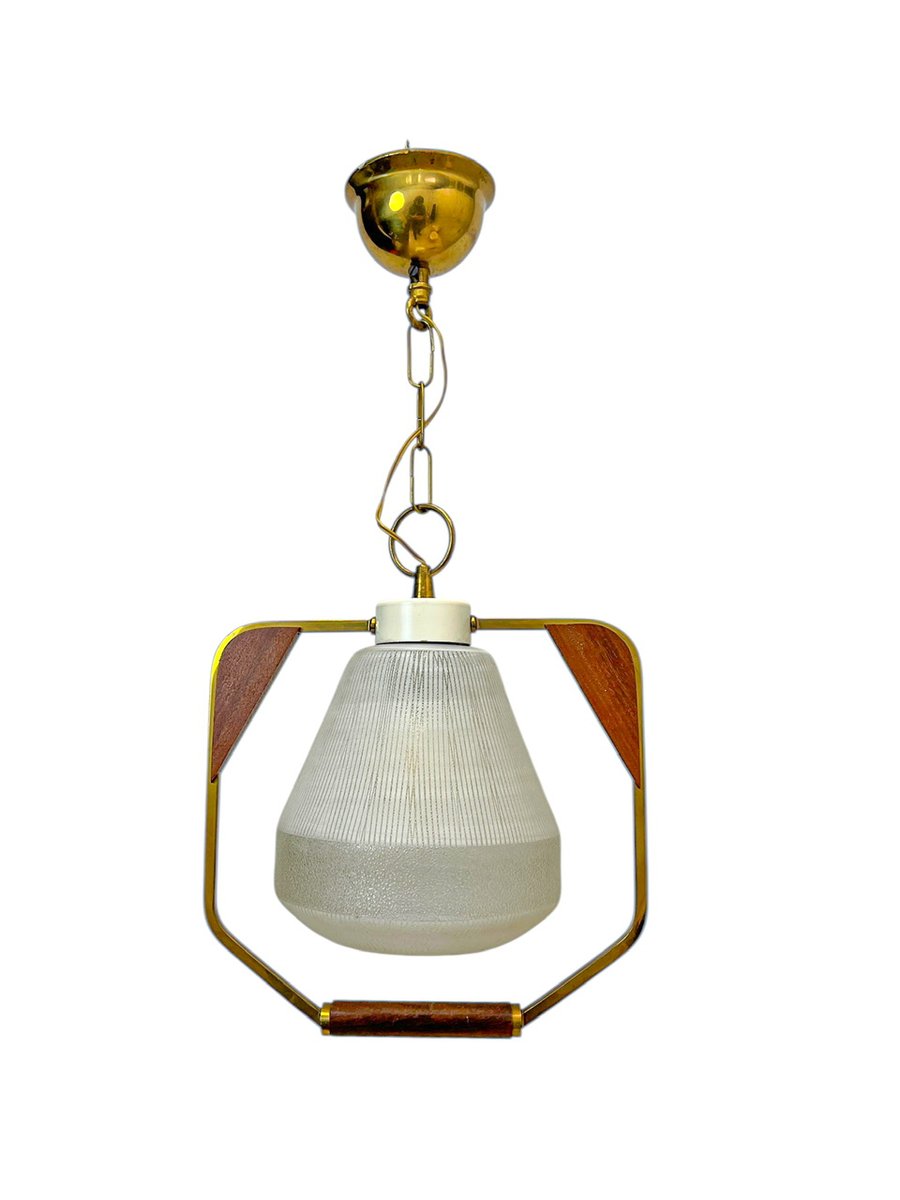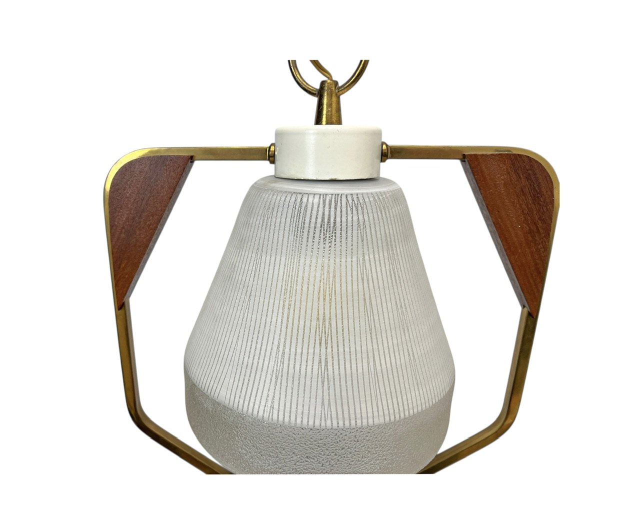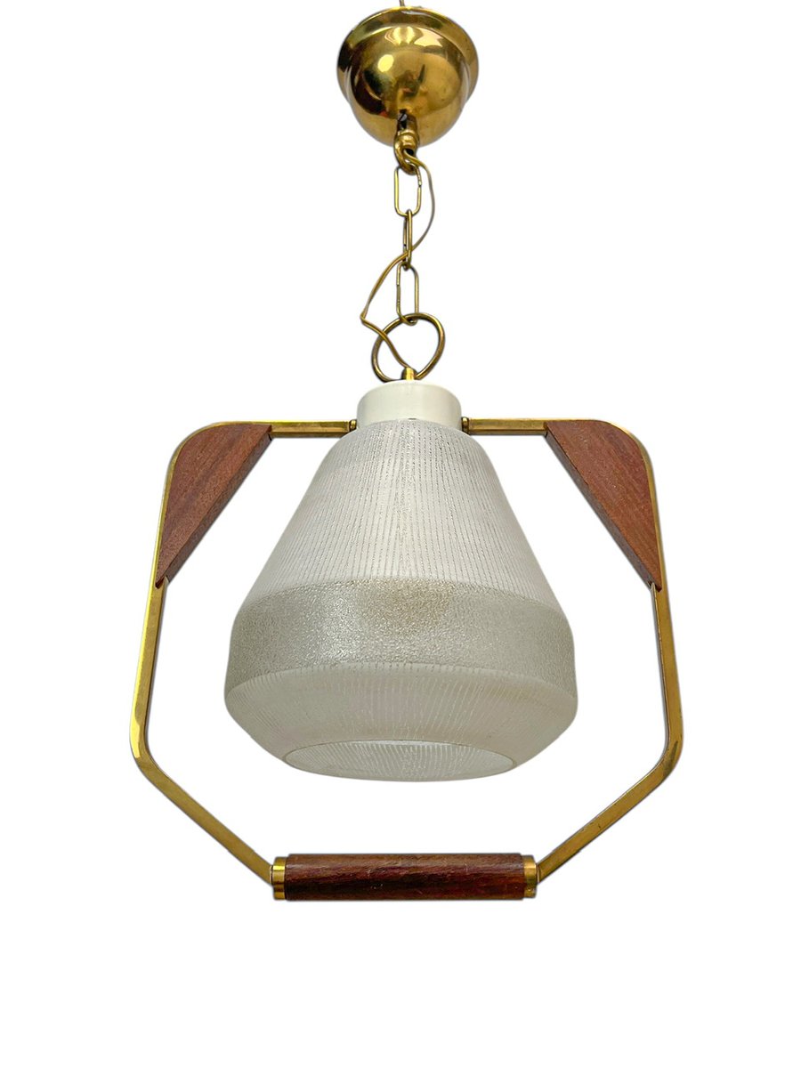 Lampe à Suspension en Teck et Laiton et Verre, Danemark, 1960s