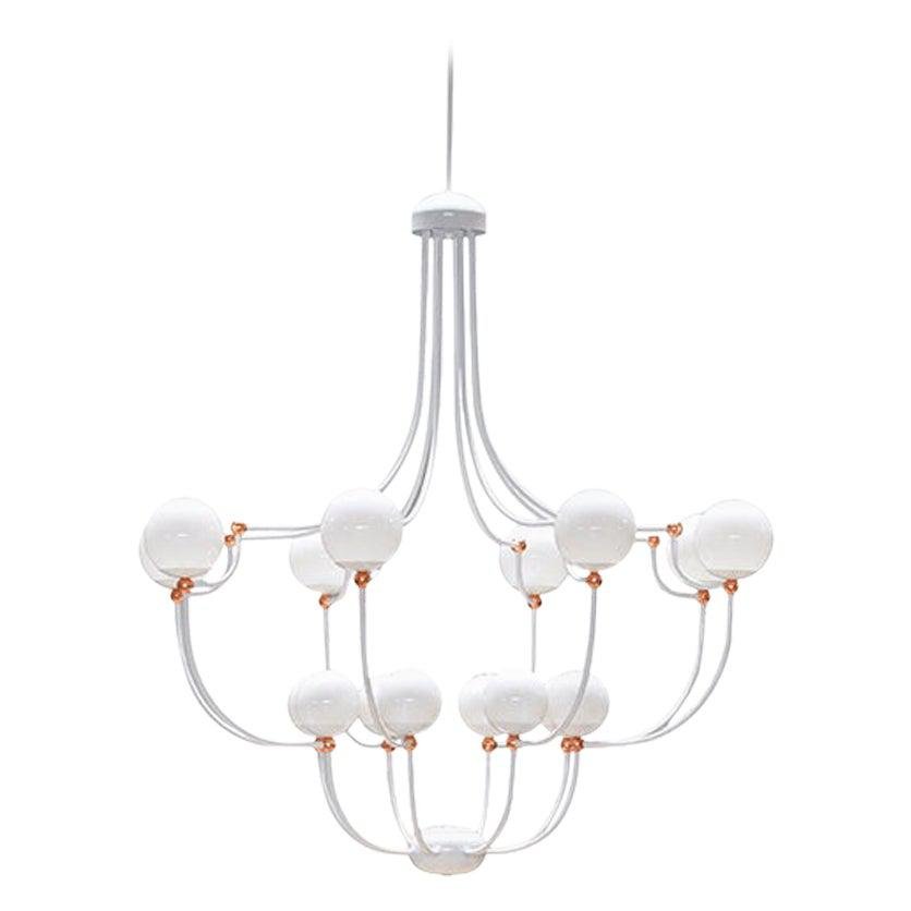 MMM Dots Pendant Lamp by MM Lampadari Dimensions: Ø 90 x H 120/170 cm. Materials: White glass and metal. All our lamps can be wired according to each country. If sold to the USA it will be wired for the USA for instance. Please contact us. An ancient heart marries technology and contemporary trends to give rise to timeless quality. Keeping faith with the artisan tradition of our region and an extremely dynamic entrepreneurial spirit, MM Lampadari fuses past, present, and future, creating lamps with enduring style, highly contemporary experimental designs, one-off items, and exquisite bespoke creations. Passion for our work, technical expertise, empathy with customers and partners alike, and an international vision have always been the principles behind the development of our firm, making it a true expression of Made in Italy excellence.