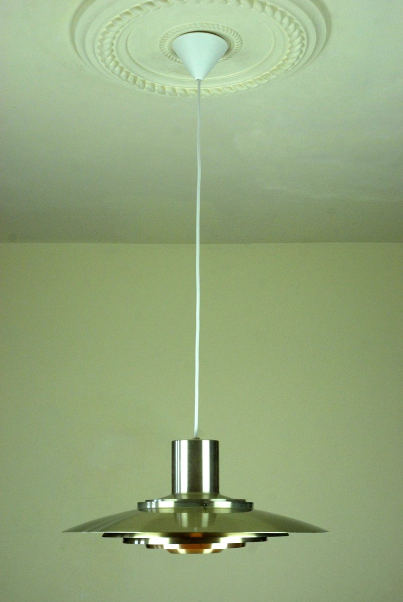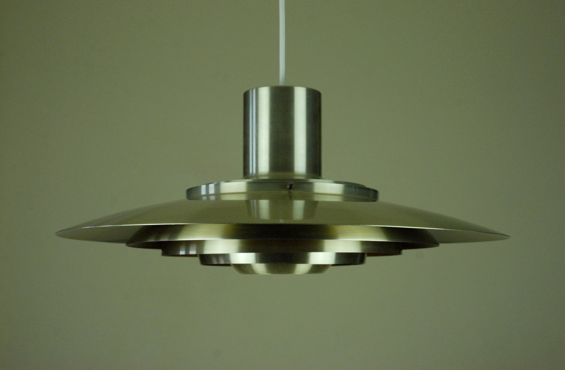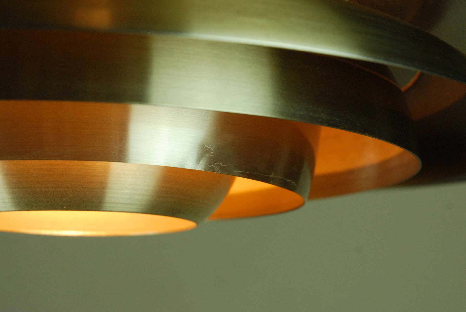 Le fabricant de luminaires danois Nordisk Solar fut fondé en 1919 par Jacob L. Jørgensen et Herluf Sørensen et est connu aujourd’hui sur les marchés vintage pour ses modèles de suspension modernes mid-century à plusieurs étages.