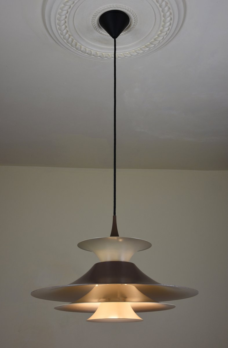 Après la guerre, surtout entre 1960 et 1970, la réputation internationale de Fog & Mørup atteint de nouveaux sommets. En 1959, Johannes (Jo) Hammerborg (1920-1982) devient responsable du design et introduit les principes du modernisme aux collections de Fog & Mørup. Peu à peu, les formes dynamiques et lissées deviennent la signature esthétique de l’entreprise, à travers de lampes, lampes à suspension et autres appliques murales, toutes dessinées par Hammerborg et d’autres designers extérieurs comme Jørgen Bo, Sophus Frandsen, et Torsten Thorup. Les pièces les plus remarquables sont la Semi Pendant par Thorup et Claus Bonderup (1967), la Falcon Pendant par Andreas Hansen (1967), la Nova Pendant (1963), la Trombone Lamp (ca. 1966), et enfin la collection Copper Kastor (ca. 1969-71) par Hammerborg.