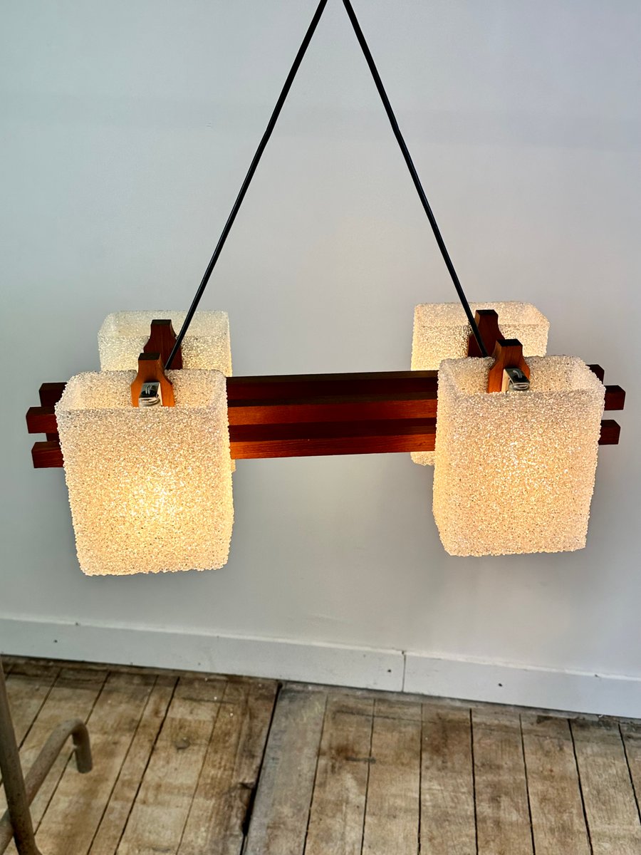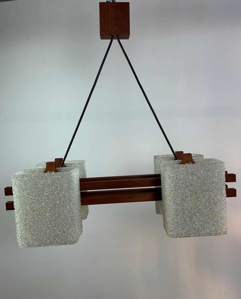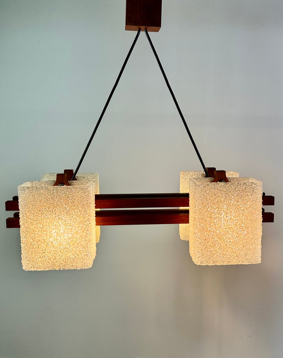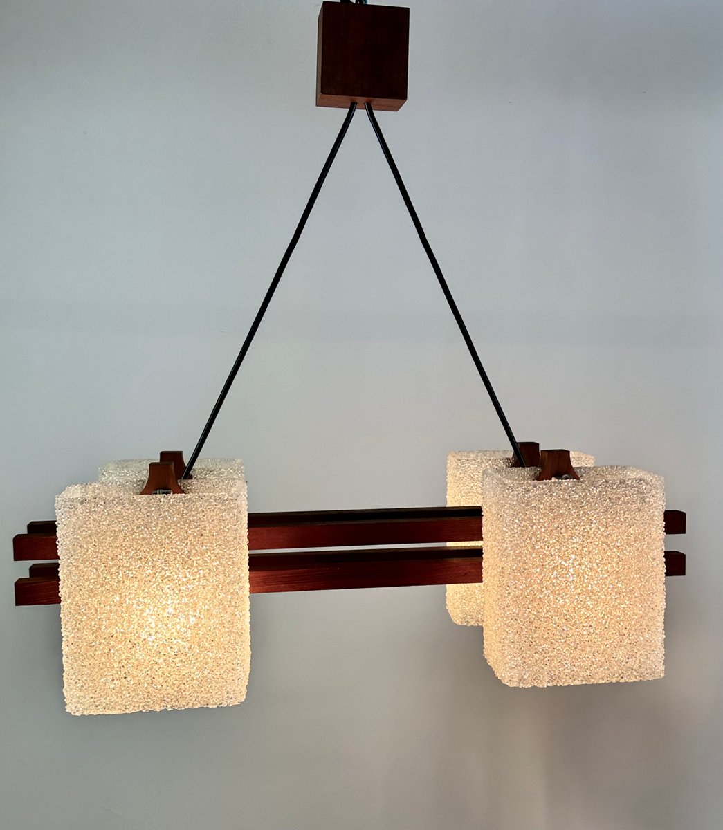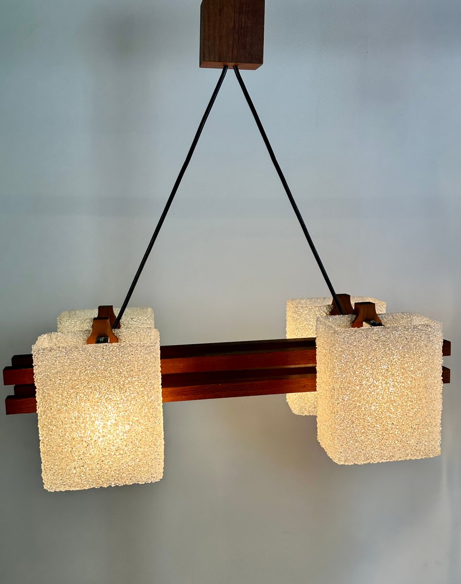 Lampe à Suspension Scandinave en Teck et Verre Acrylique, 1960s
