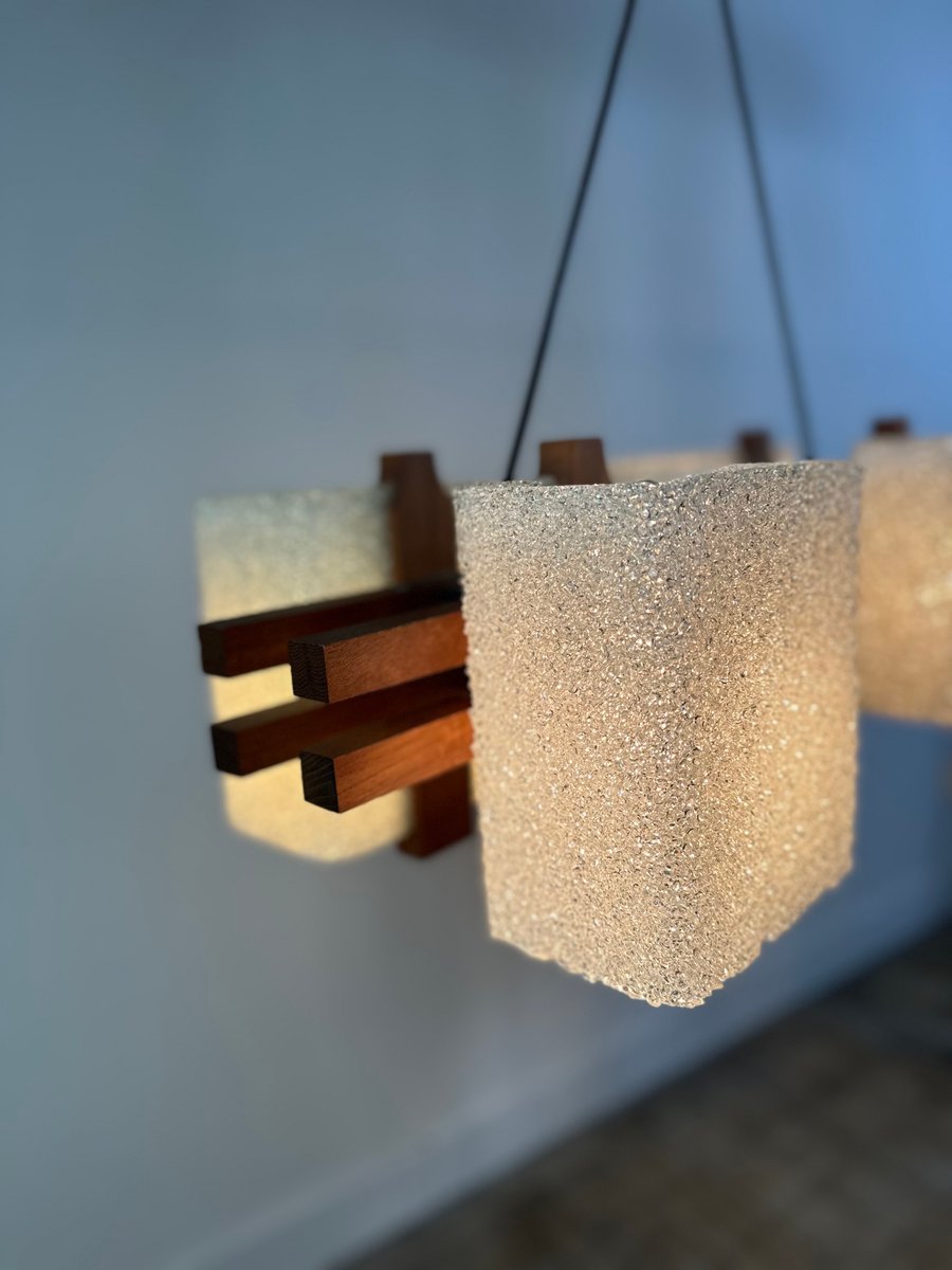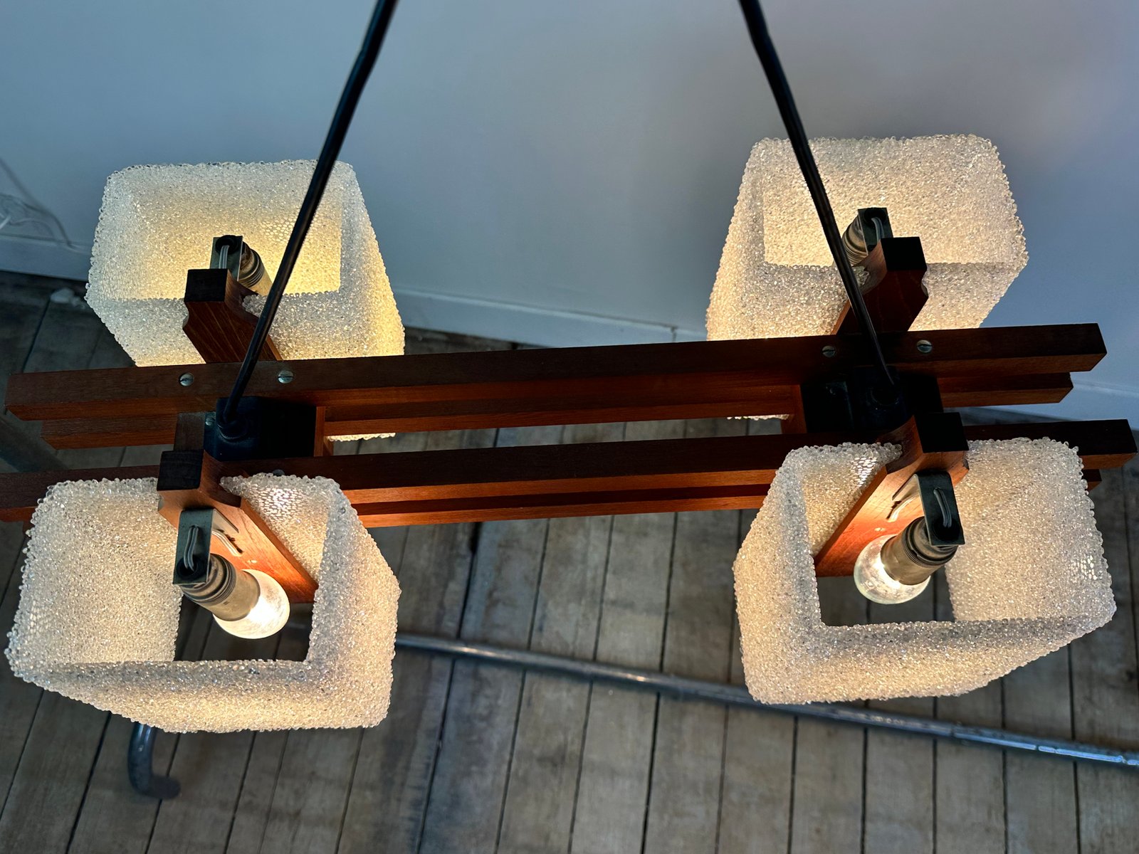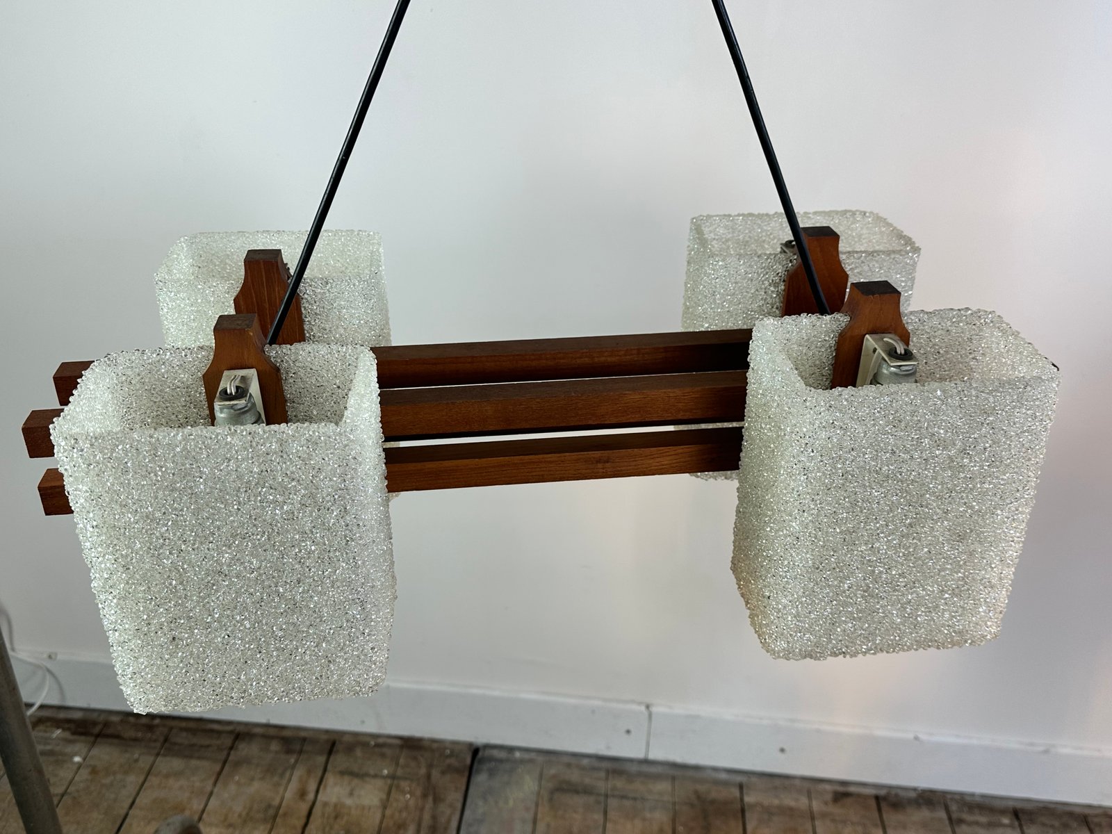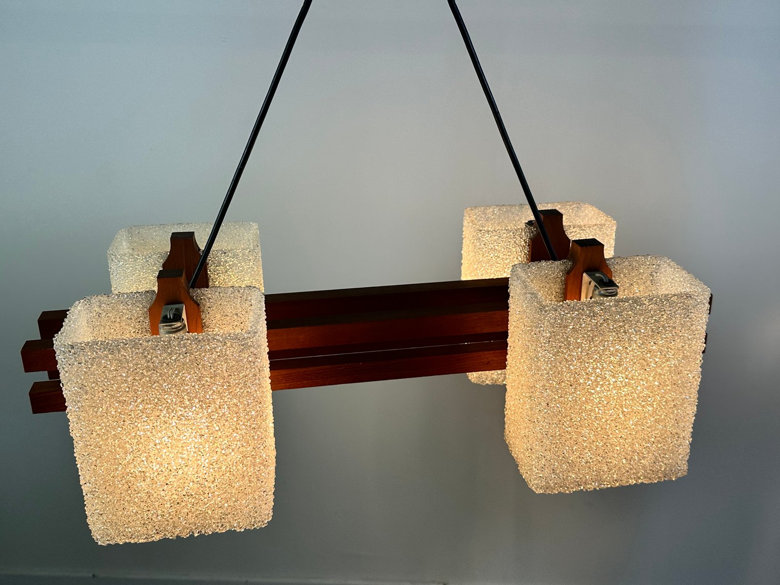 Lampe à Suspension Scandinave en Teck et Verre Acrylique, 1960s