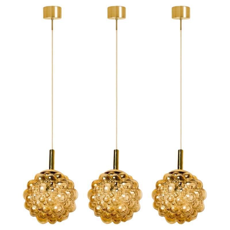 Lampe à Suspension Vintage en Verre Bullé par Helena Tynell, Allemagne, 1970