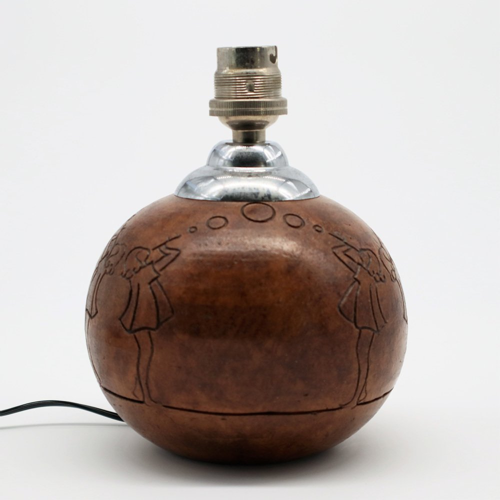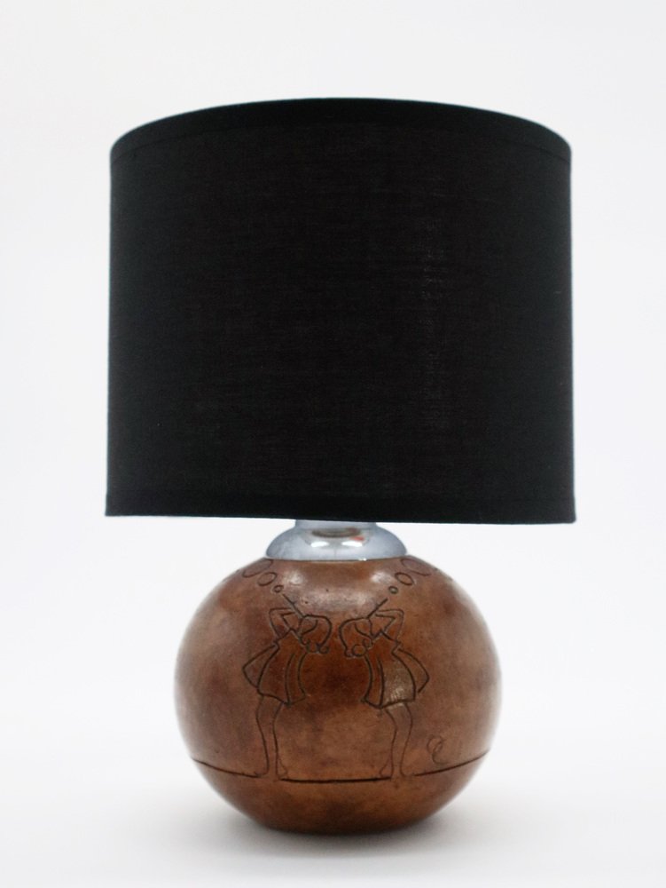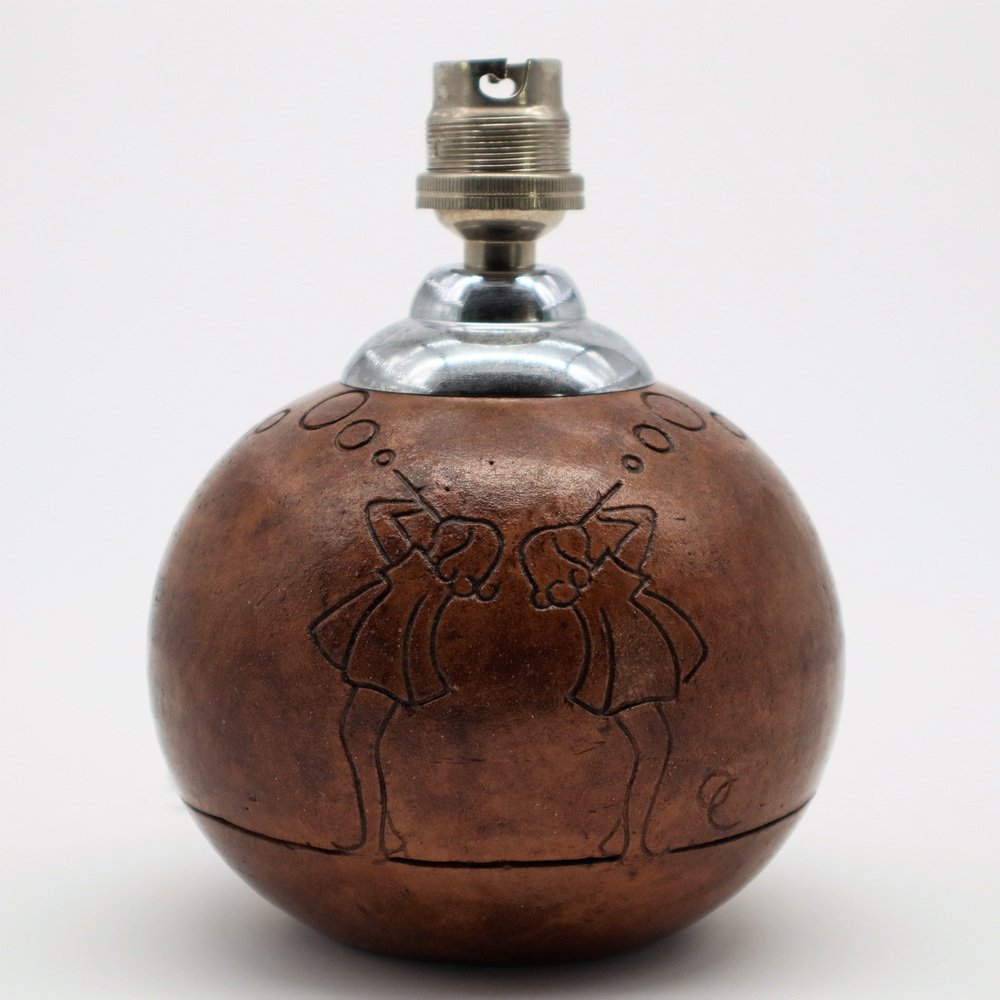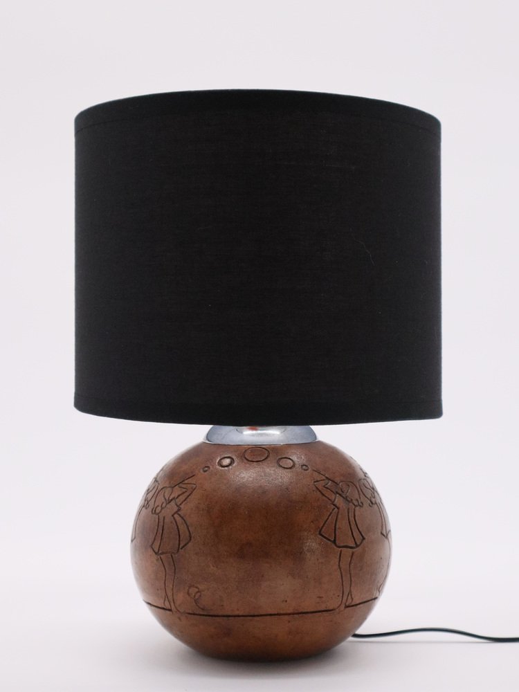 Lampe Art Déco en Céramique avec Décor de Fille, 1930s