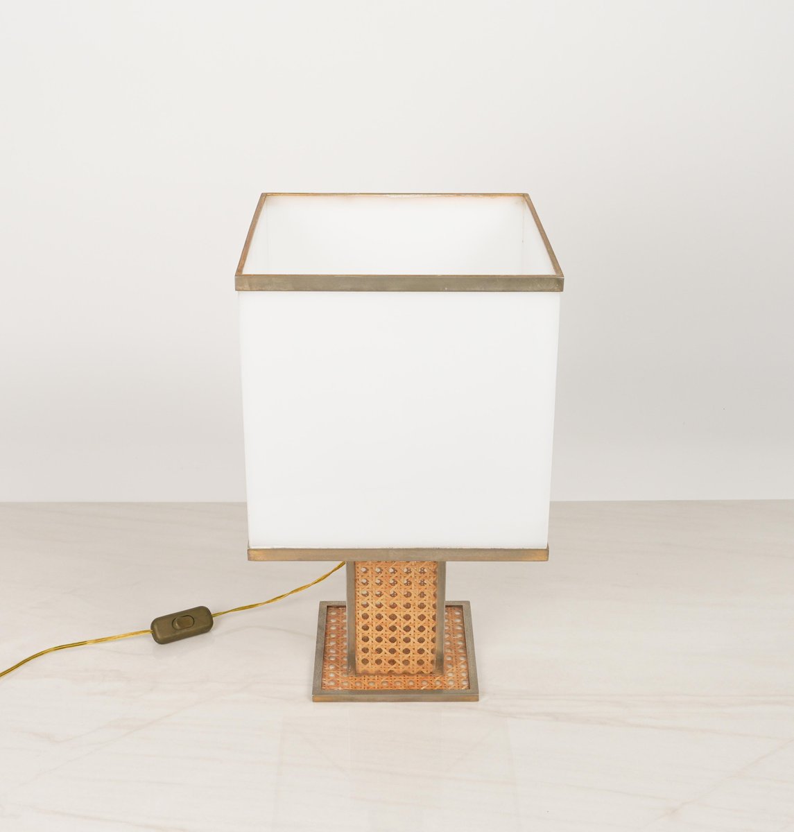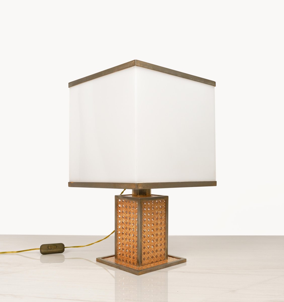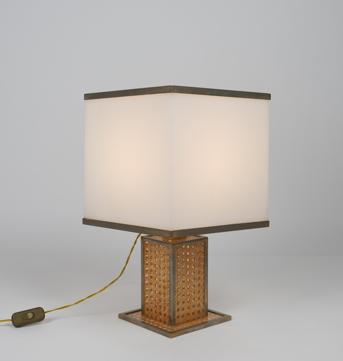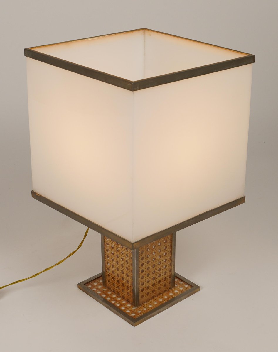 Lampe de Bureau en Verre Acrylique, Rotin et Laiton par Christian Dior, Italie, 1970s